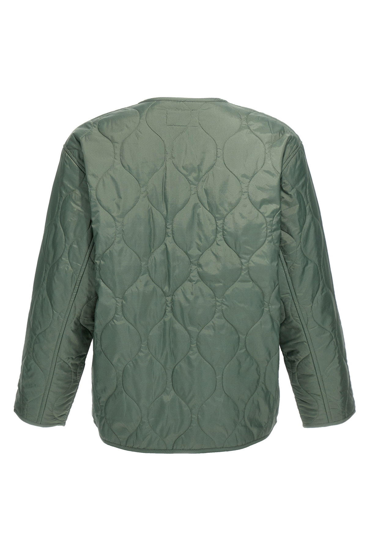 'Skyton Liner' recycled ripstop polyester jacket, crew neck, snap button closure, front logo patch, pockets, long sleeves. SUSTAINABLE: Product made from recycled polyester.