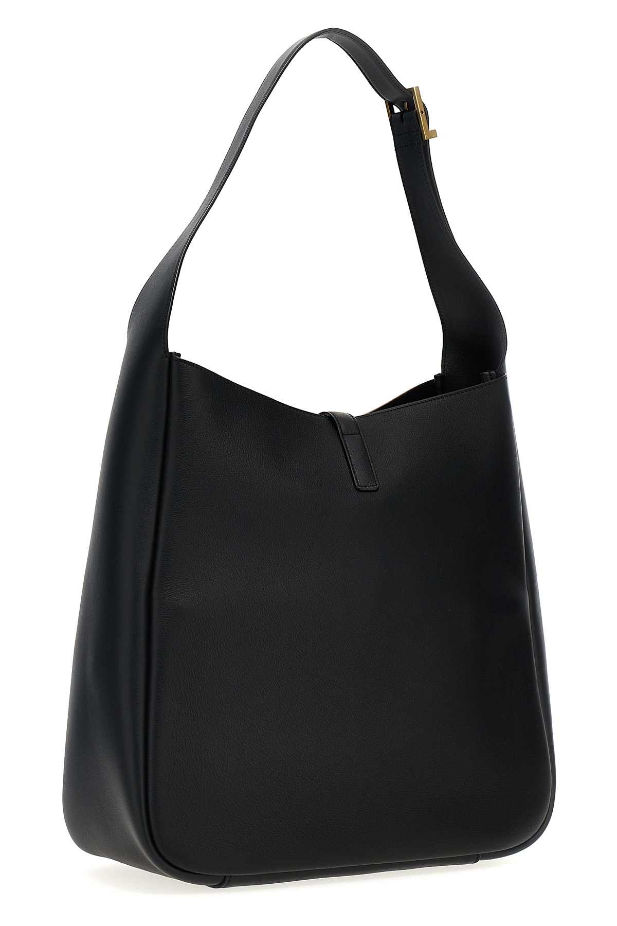 'Le 5 A 7' large leather shopping bag with metal logo detail closure, adjustable handle.
