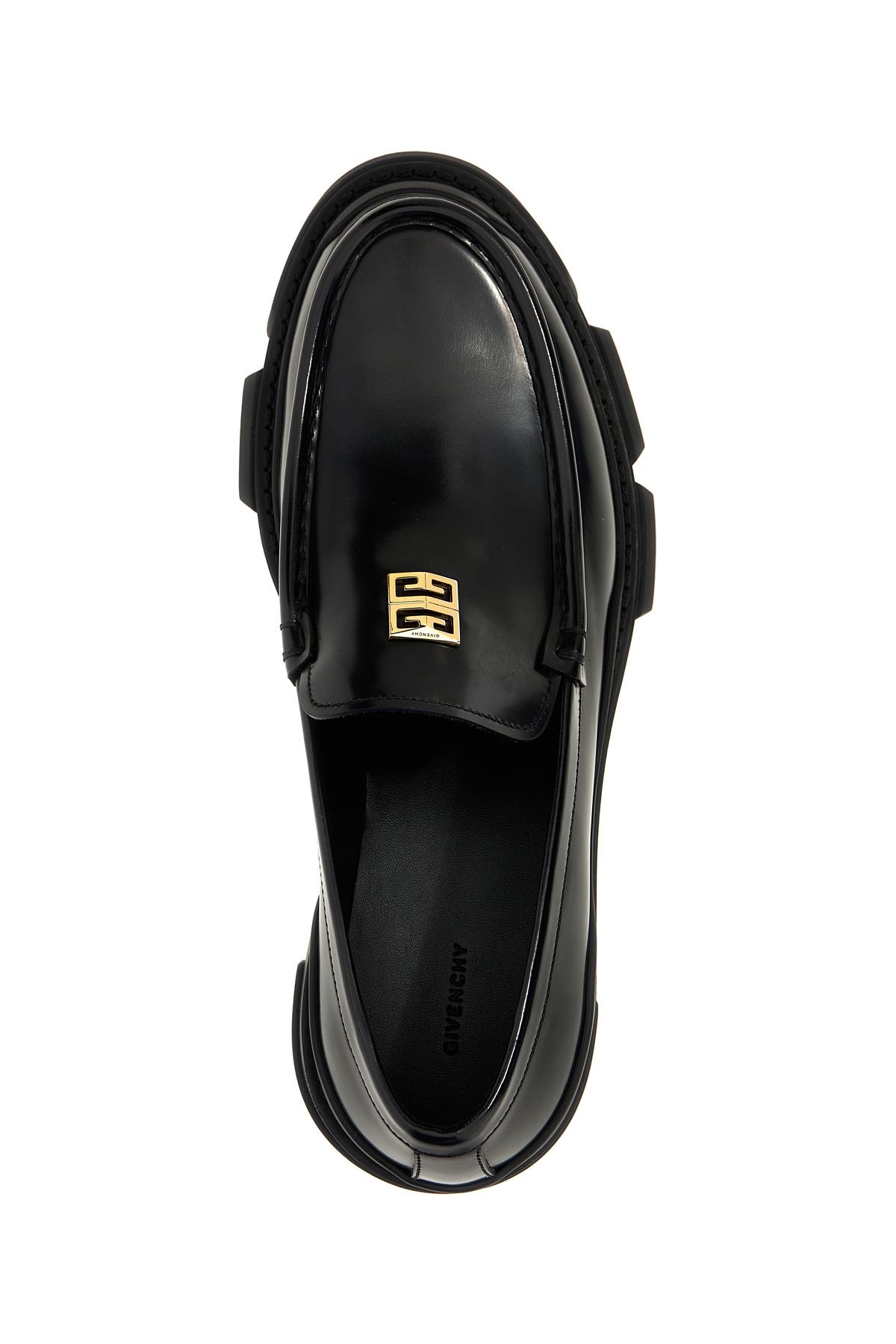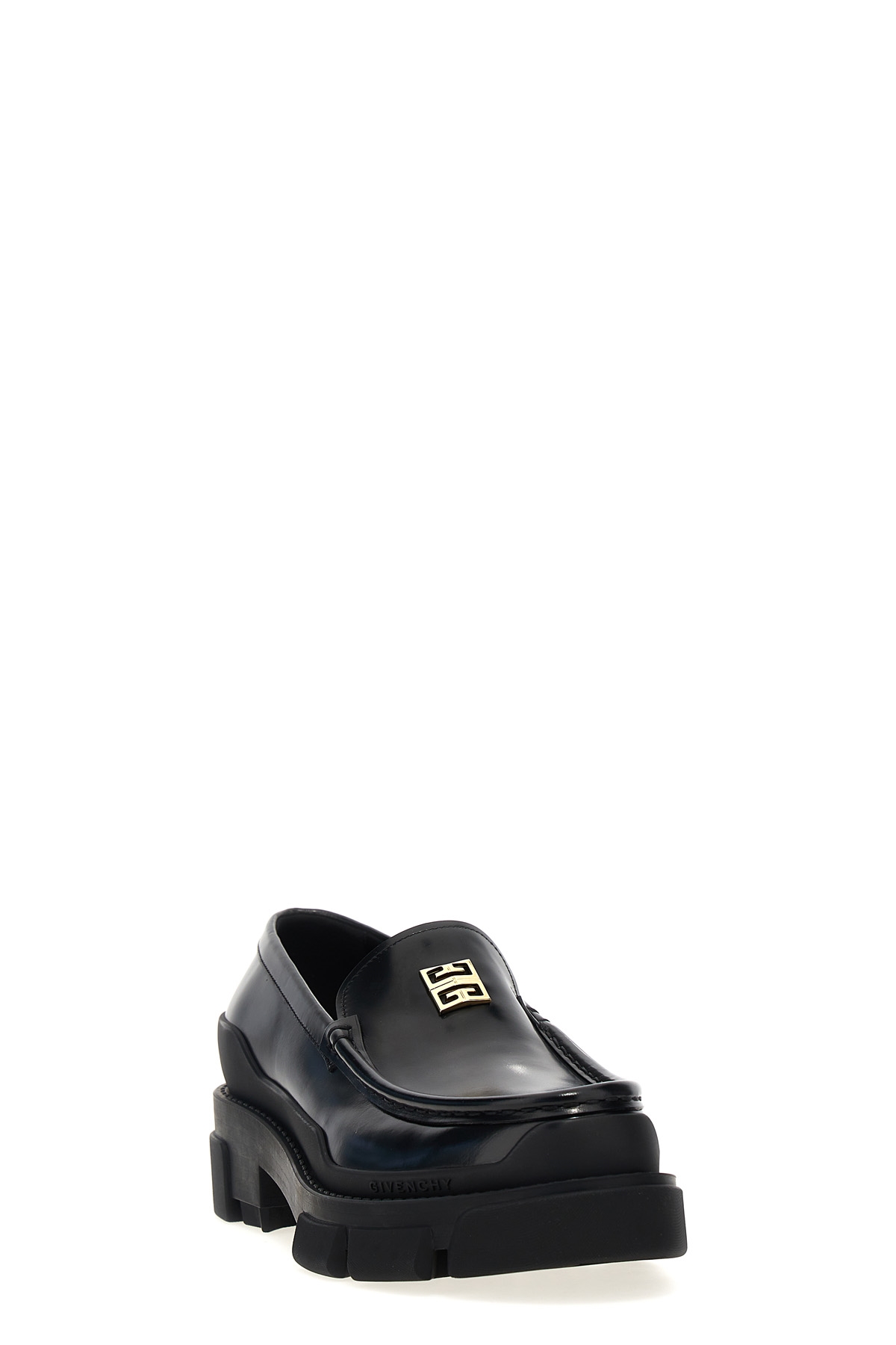 Terra loafers in leather with front metal logo, rubber sole.