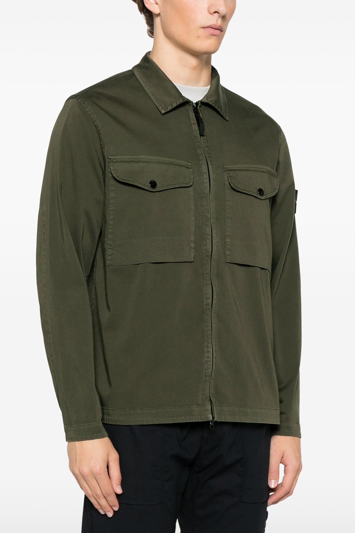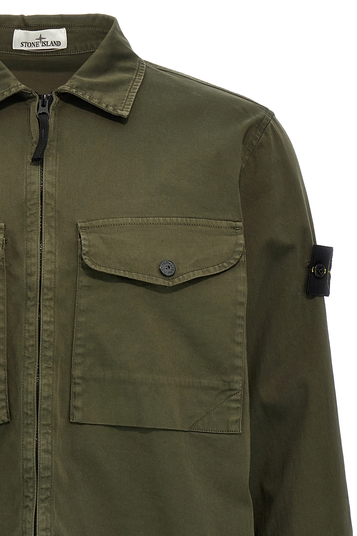 Cotton canvas overshirt, zip closure, pockets, long sleeves with adjustable cuffs and logo badge, side splits. SUSTAINABLE: This product is made of organic cotton.