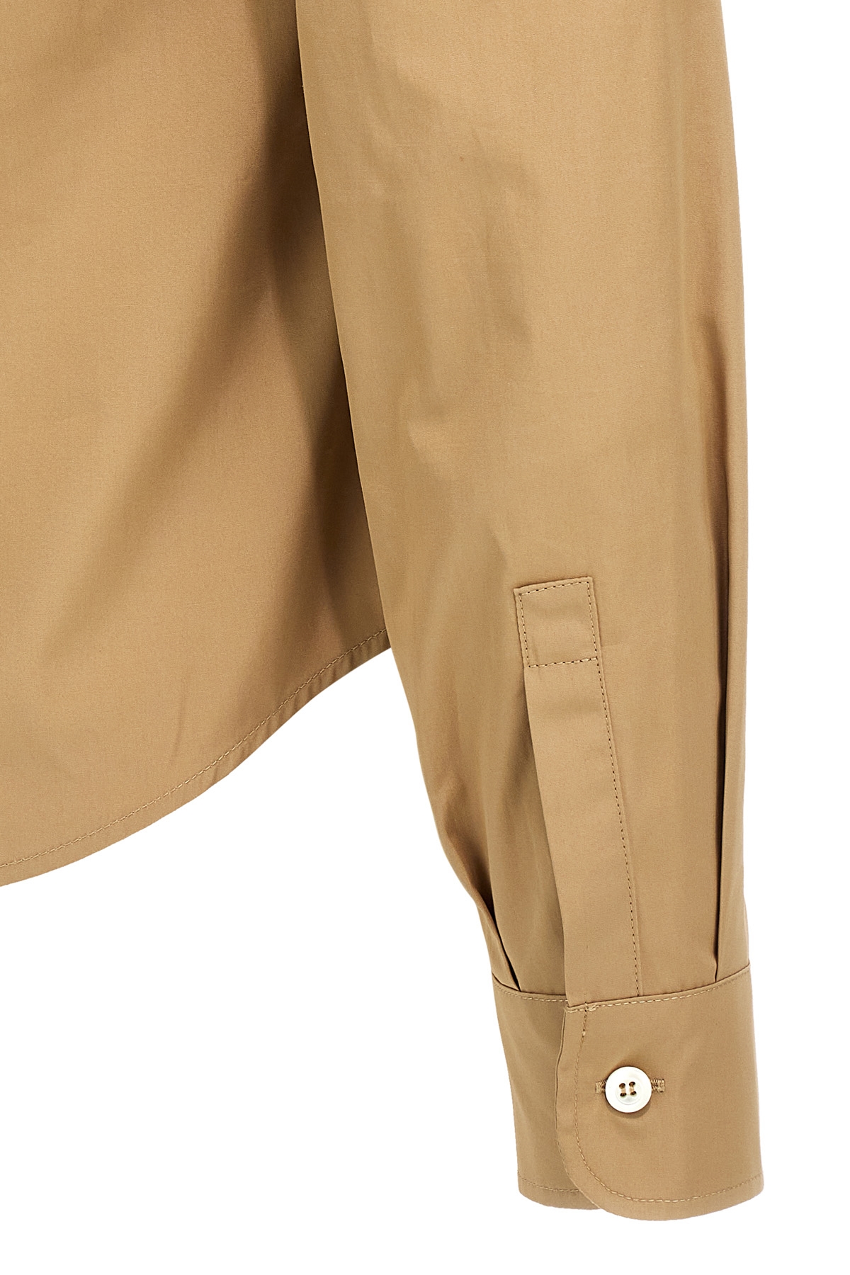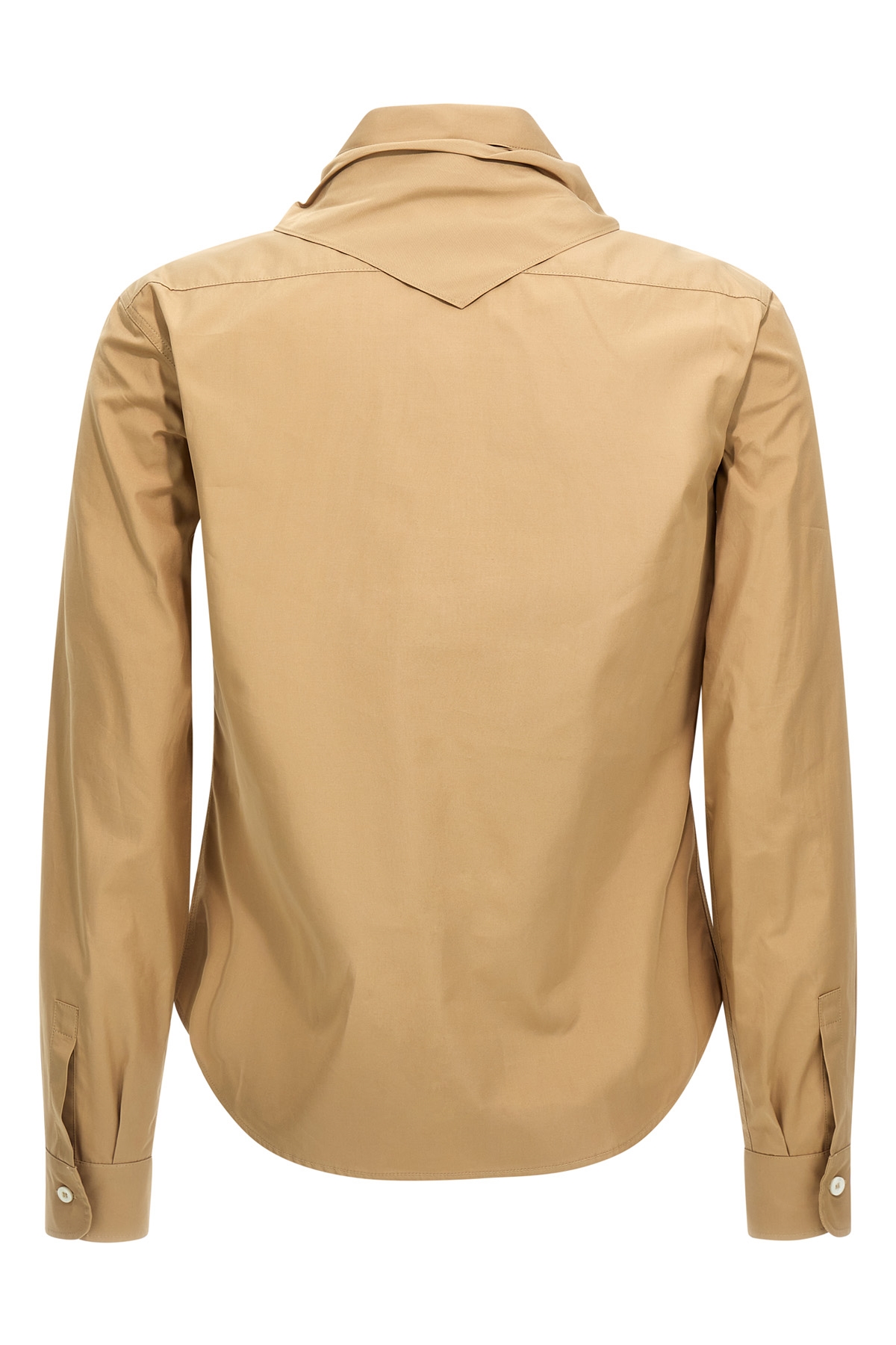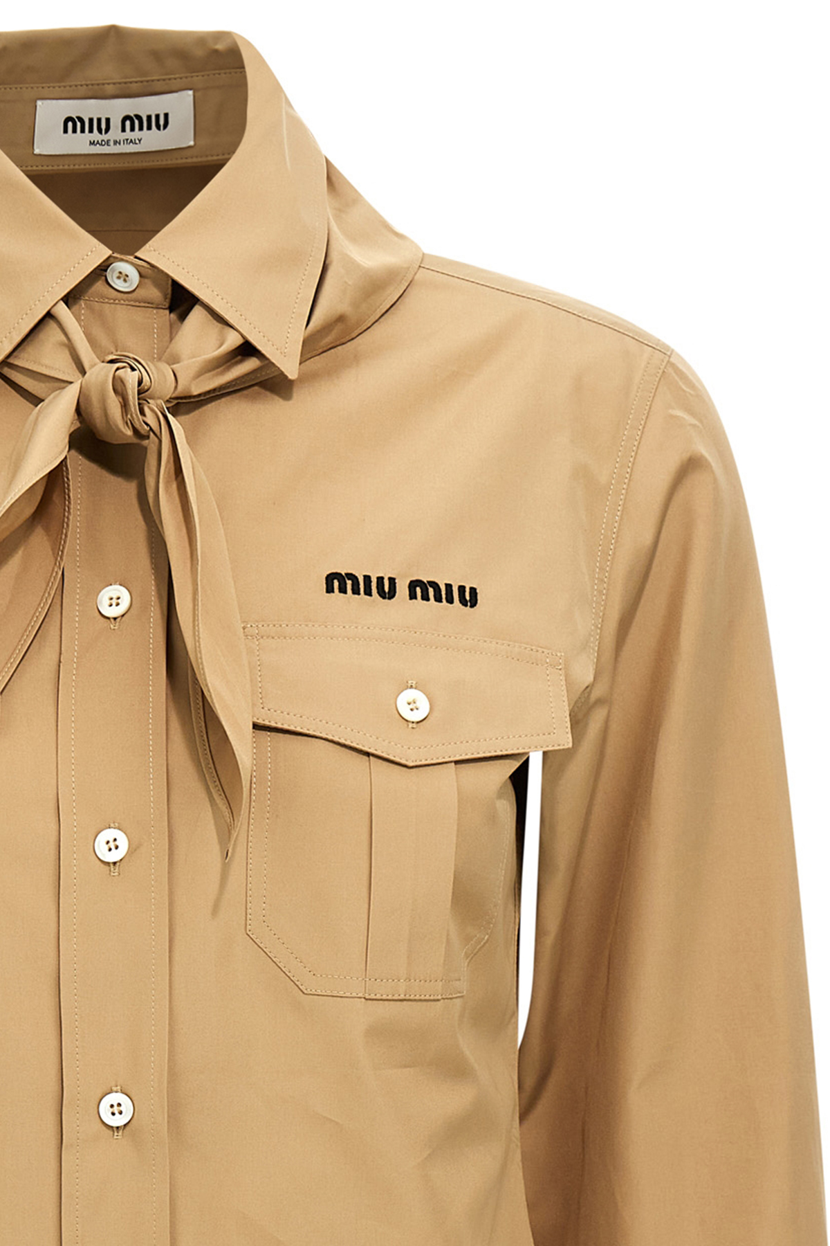 Men's cotton poplin shirt with matching removable scarf, contrast front logo embroidery, pockets, button closure, long cuffed sleeves.