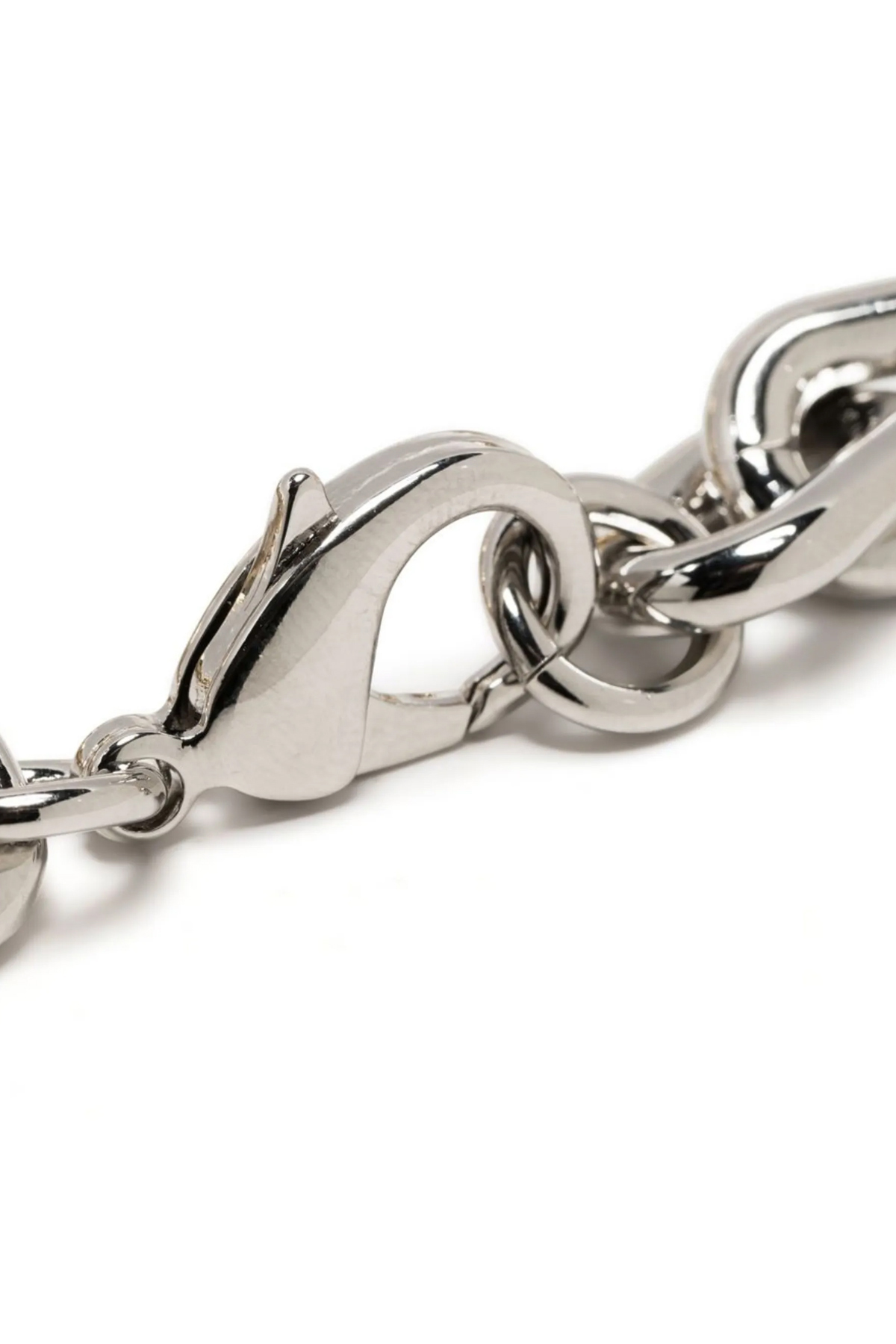 'Eight' necklace in woven metal mesh, carabiner closure, adjustable.
