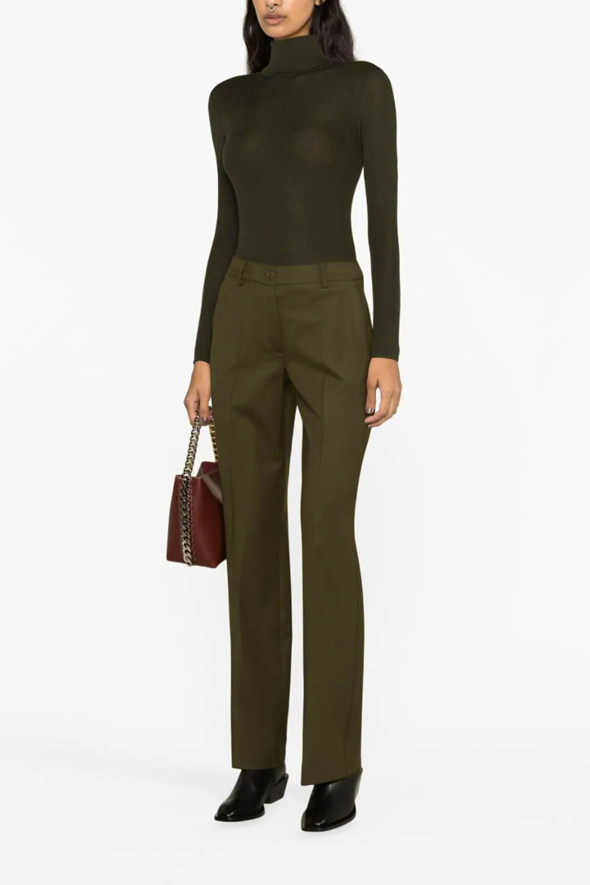 Sallia' stretch wool pants with loose leg with central crease, zip and button closure, pockets.