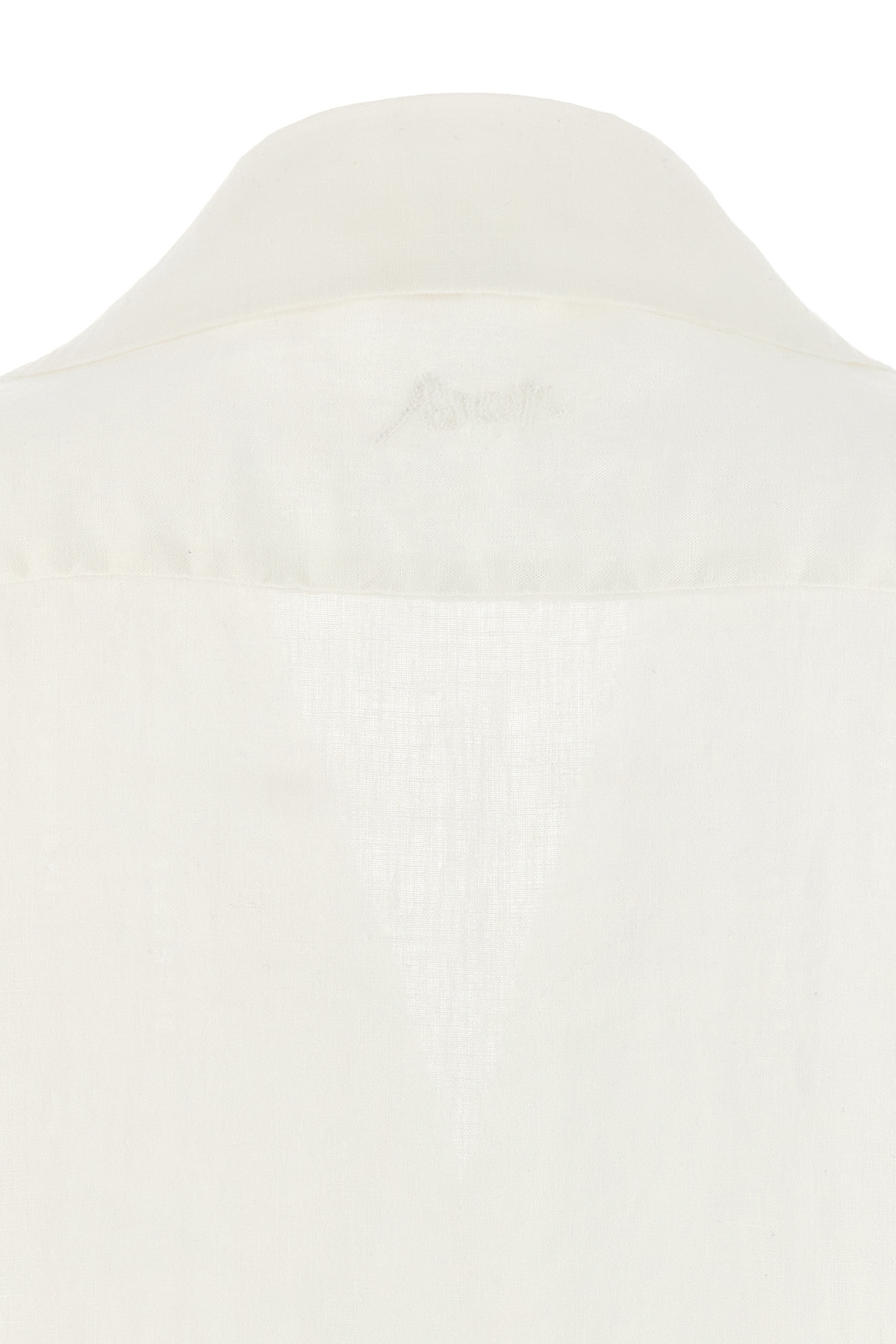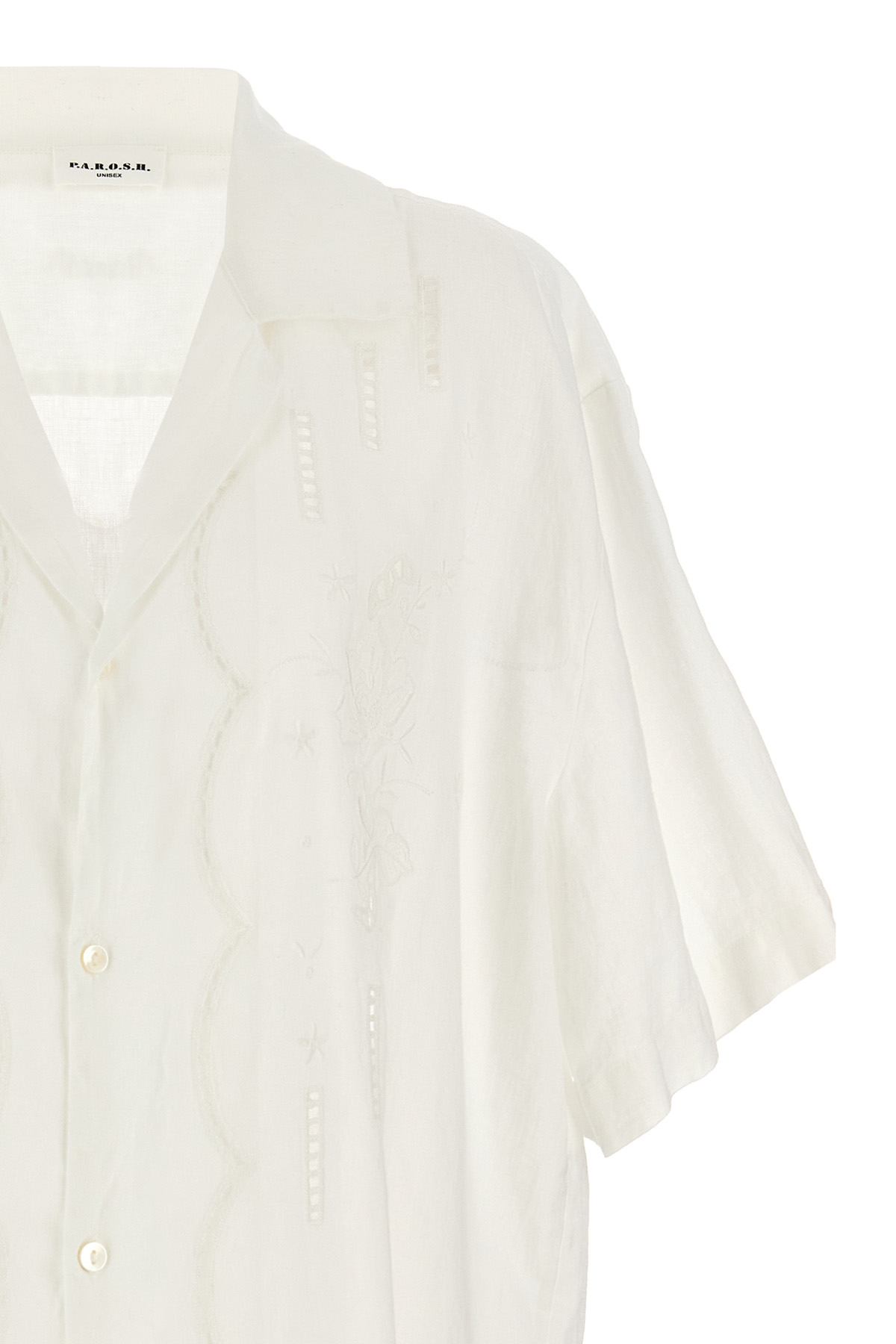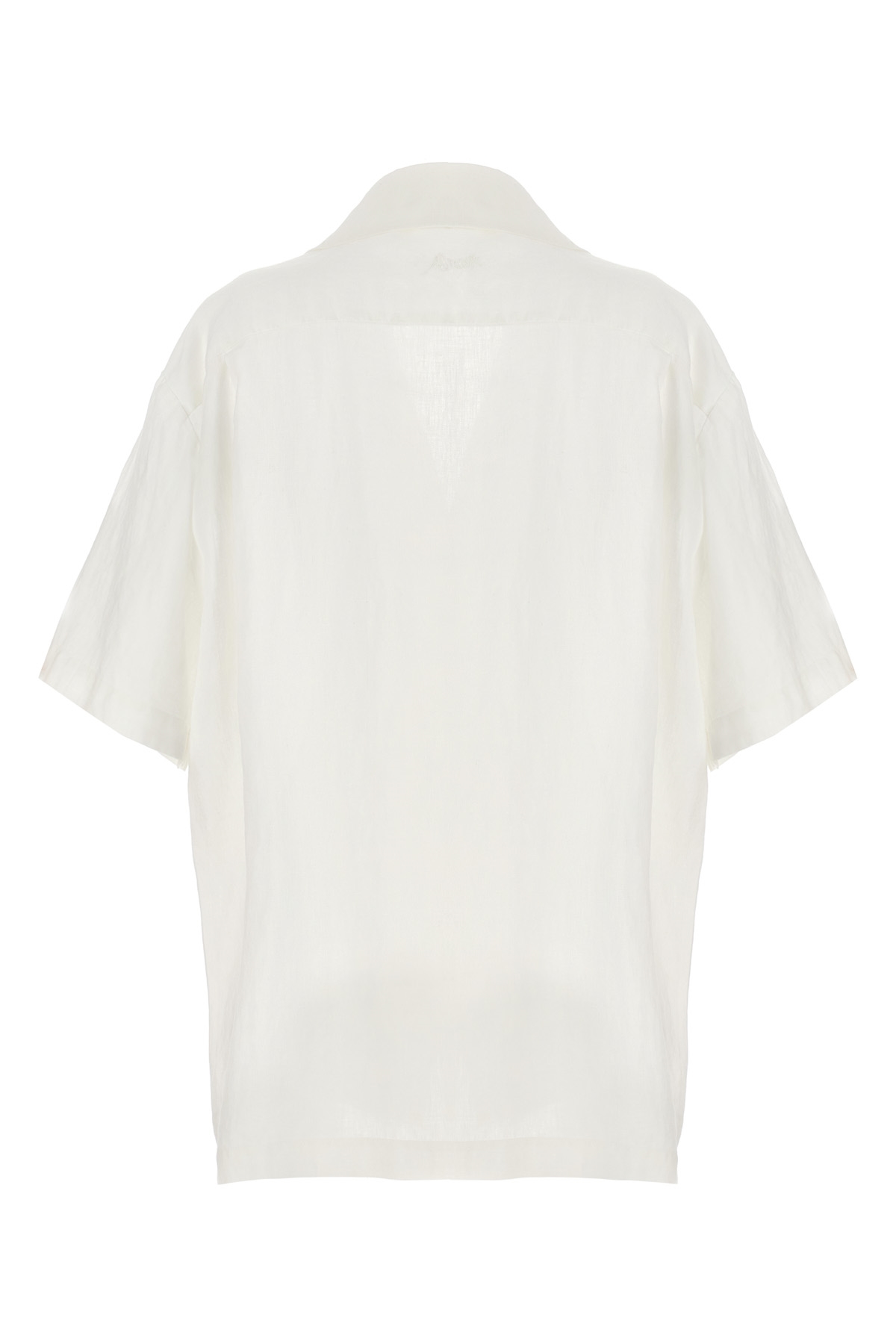 'Beach' embroidered linen shirt with button closure, short sleeves.