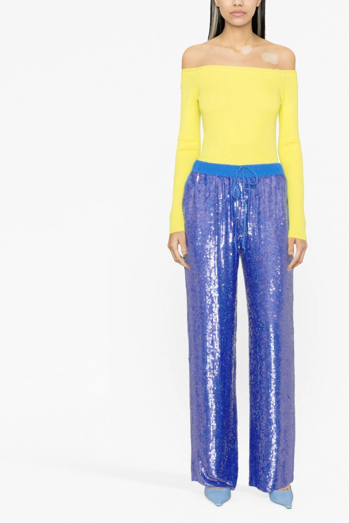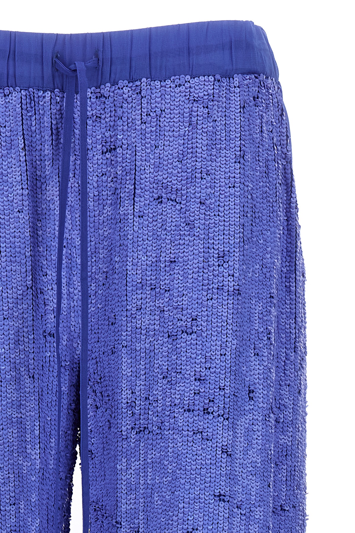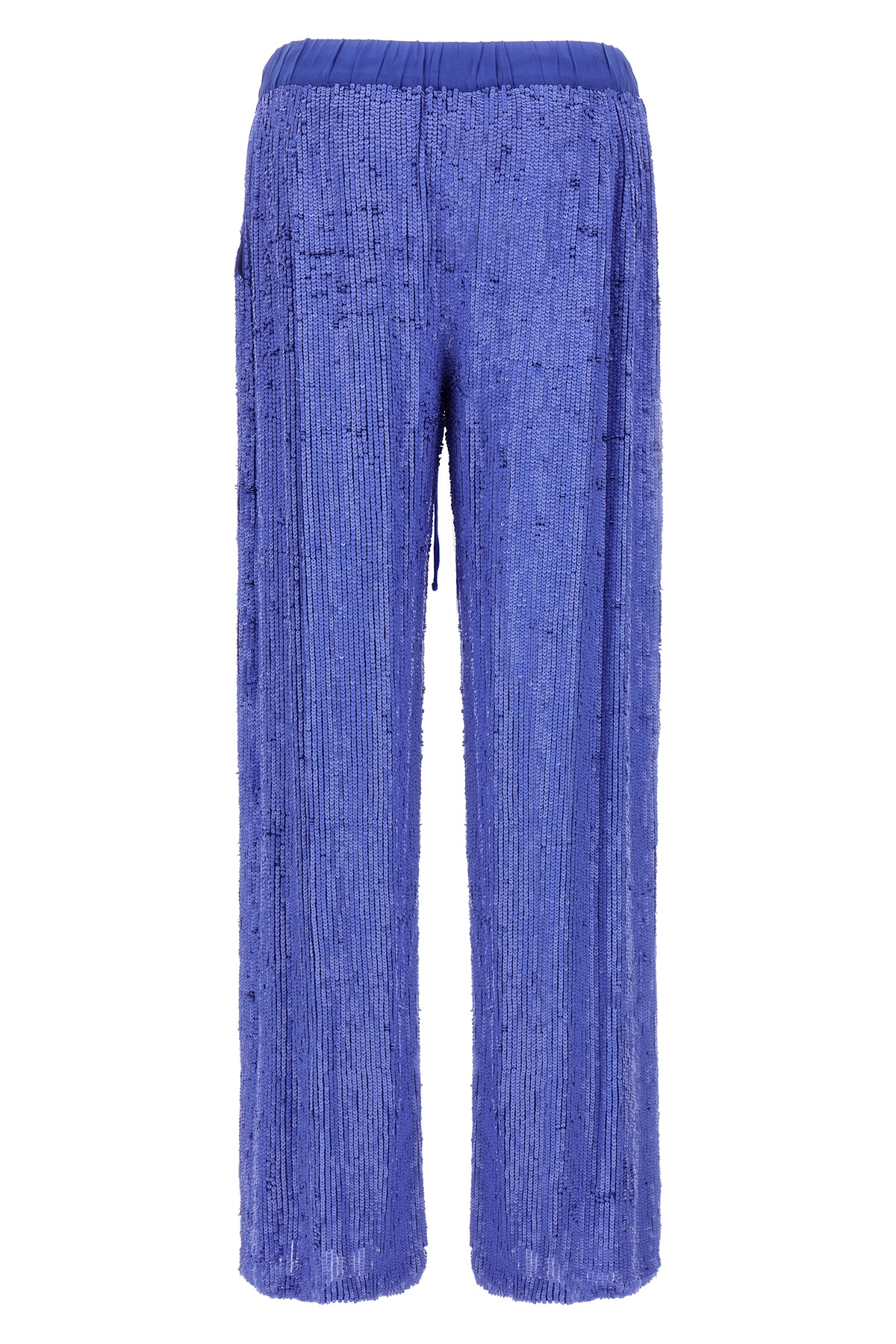 Viscose pants entirely covered with sequins, model with wide leg, elastic and drawstring at the waist.