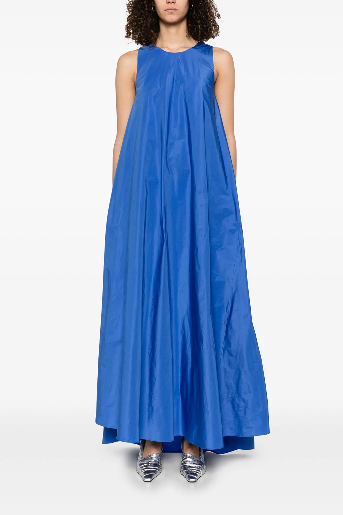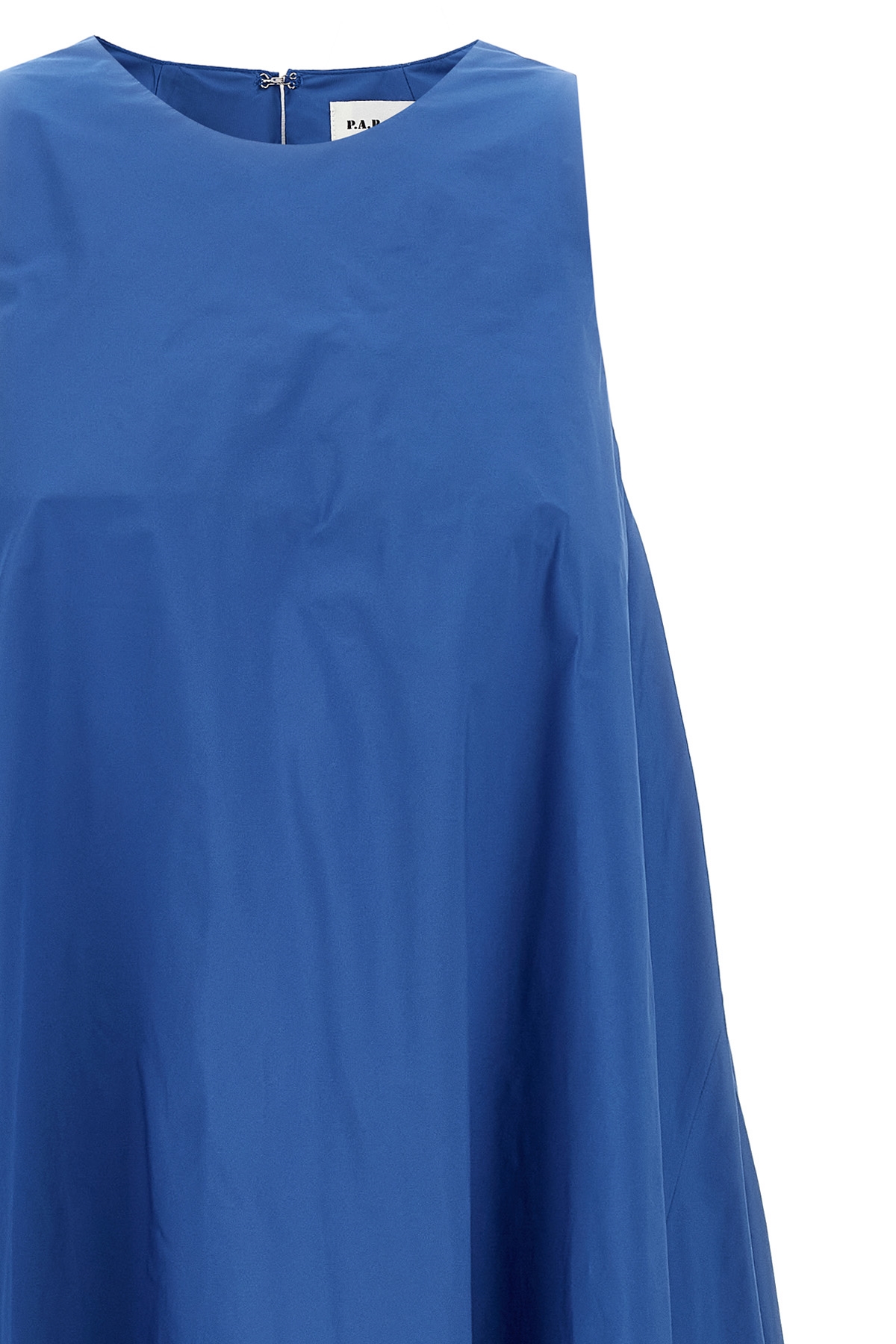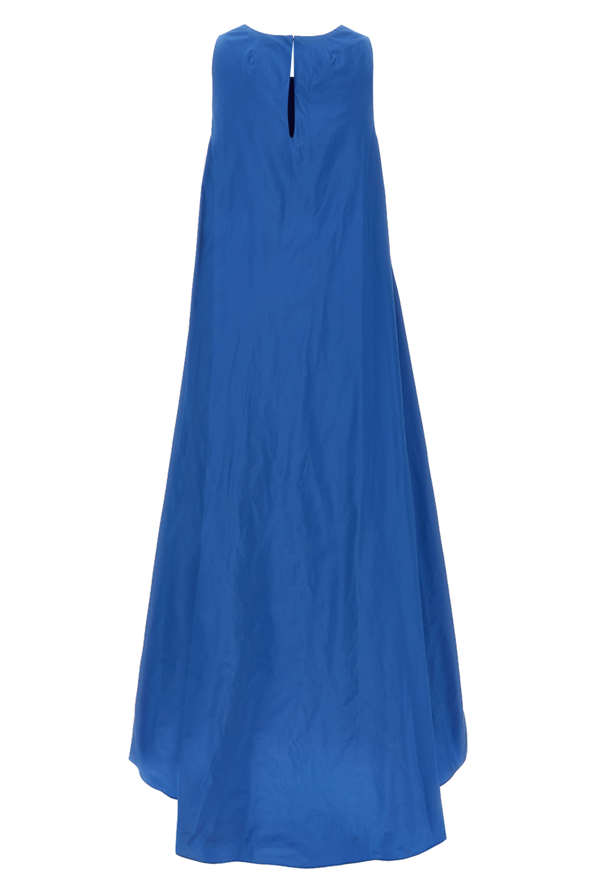 Long 'Pimpy' dress in cady fabric, crew neck, straight model, back button closure with teardrop cut out details, sleeveless, back split.