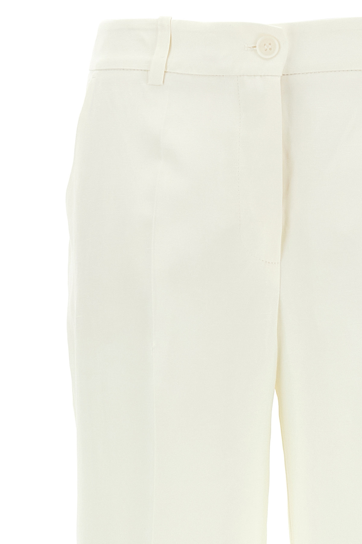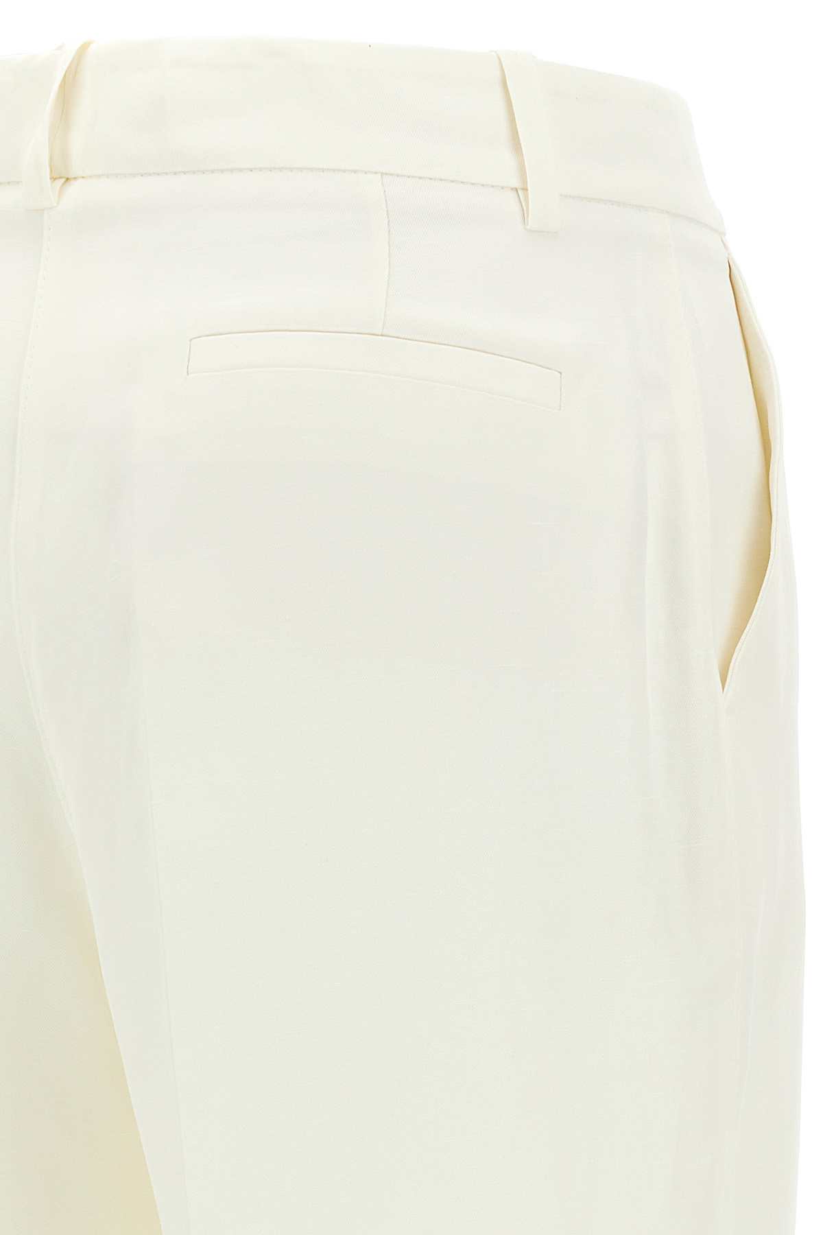 'Raisa' pants in viscose and linen blend, palazzo style with pressed pleat, hook and button zip closure, pockets.