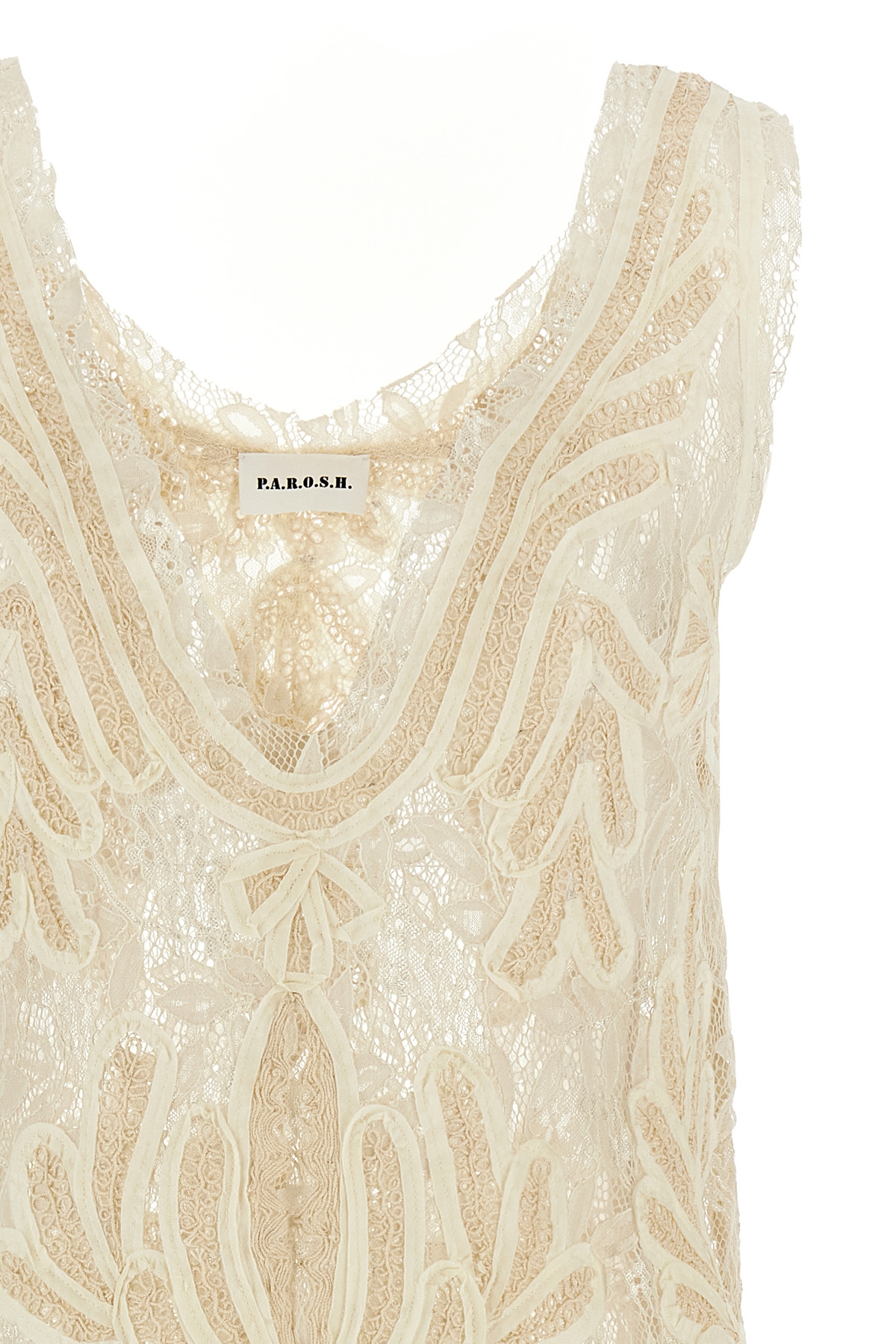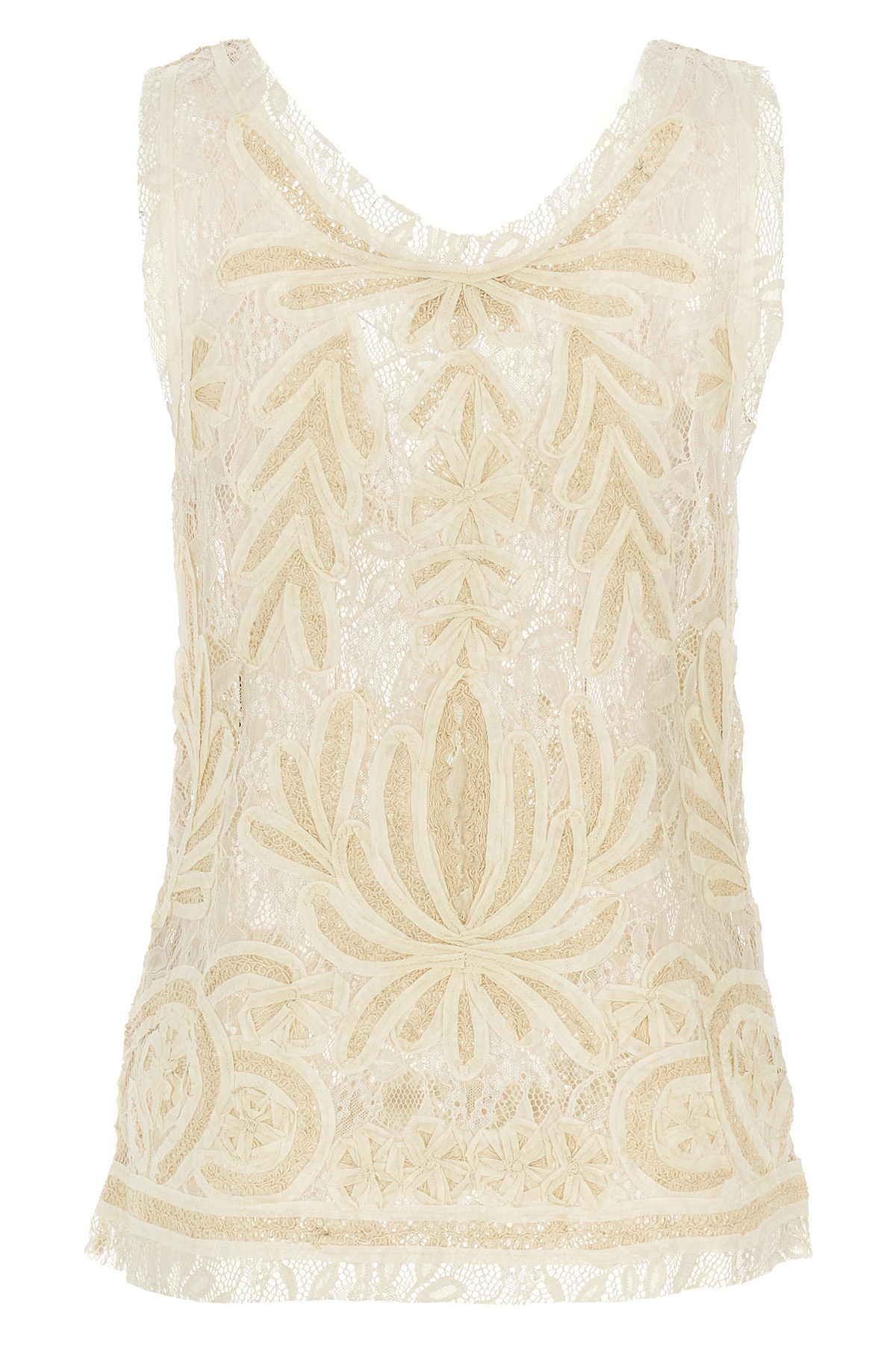 'Nixie' lace and organza top with teardrop neckline, wide straps.