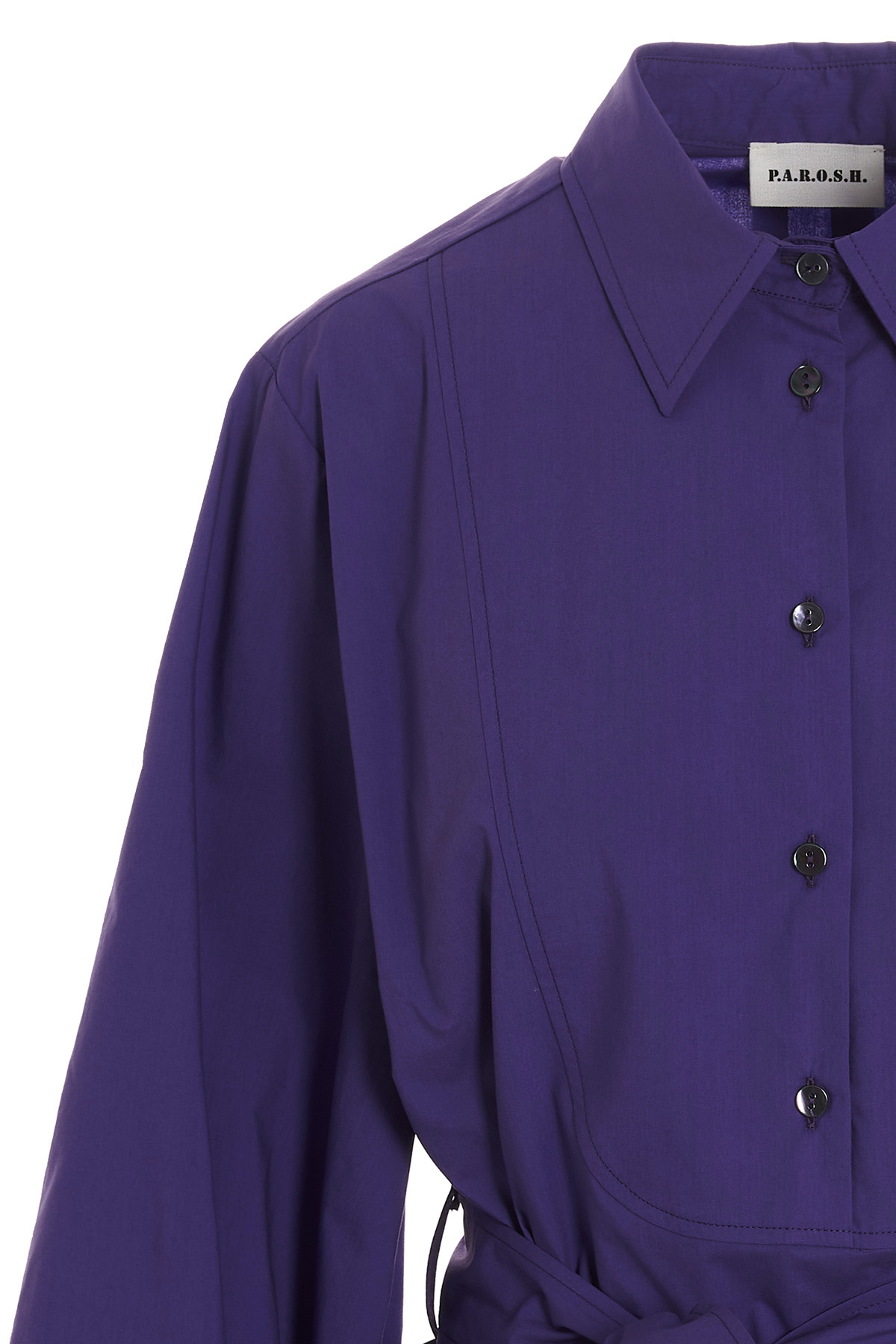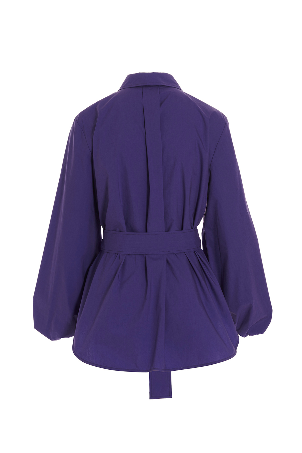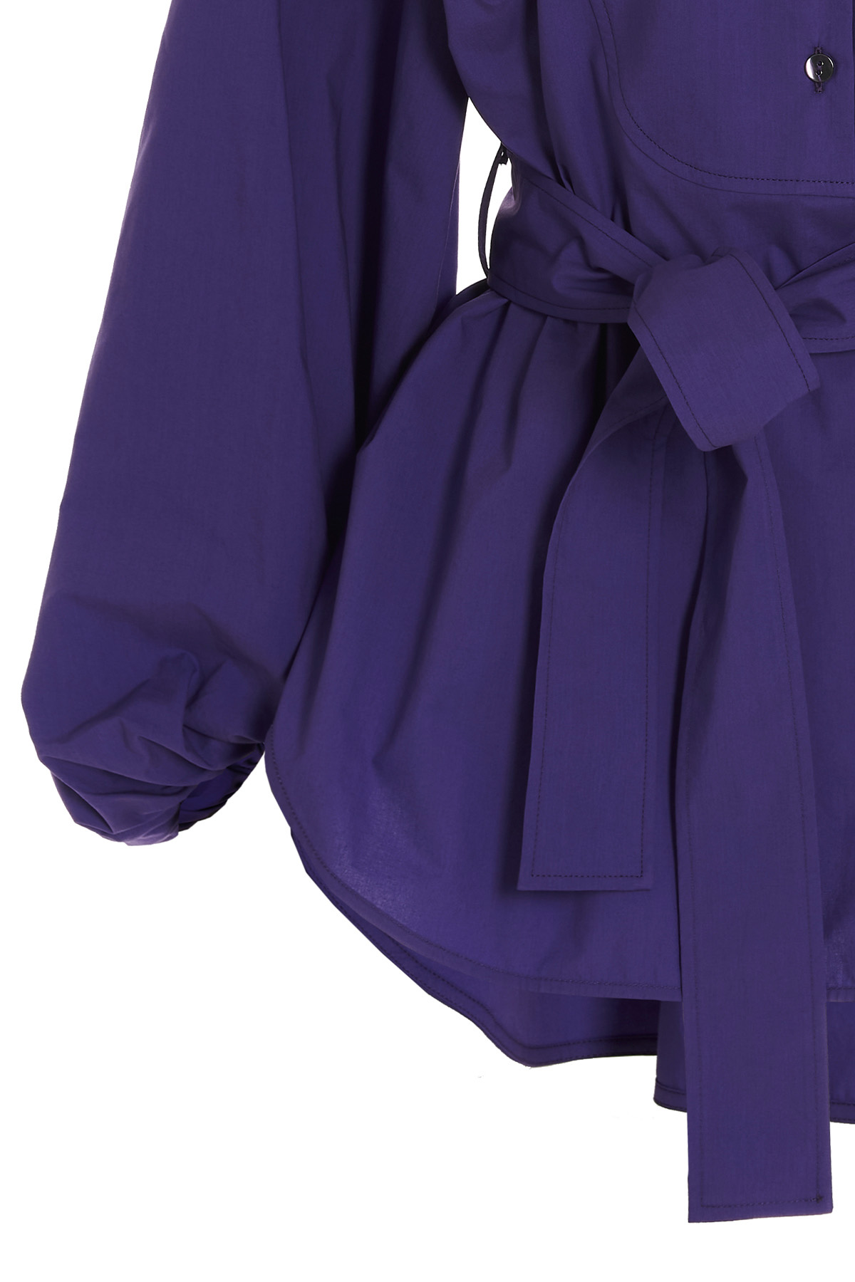 Cotton belted shirt with front buttons, long puff sleeves and cuffed long sleeves.