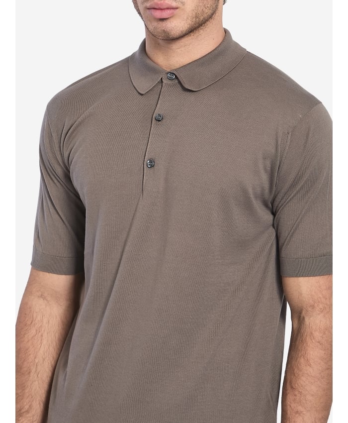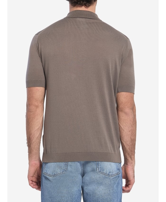 Short-sleeved Adrian polo shirt in soft taupe Sea Island cotton. It features classic collar, front buttoned placket and ribbed trims. Regular fit.
