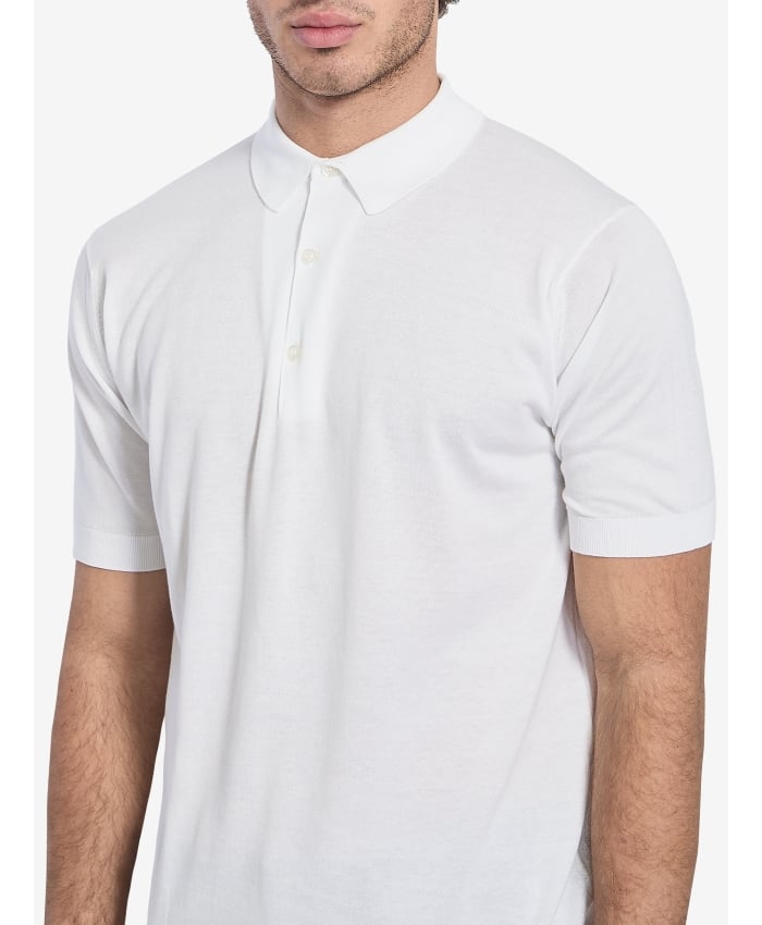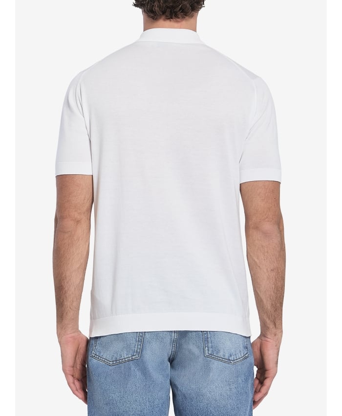 Short-sleeved Adrian polo shirt in soft white Sea Island cotton. It features classic collar, front buttoned placket and ribbed trims. Regular fit.