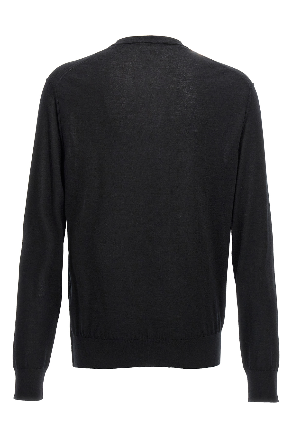 Cashmere sweater with front embroidered logo, crew neck, long cuffed sleeves.