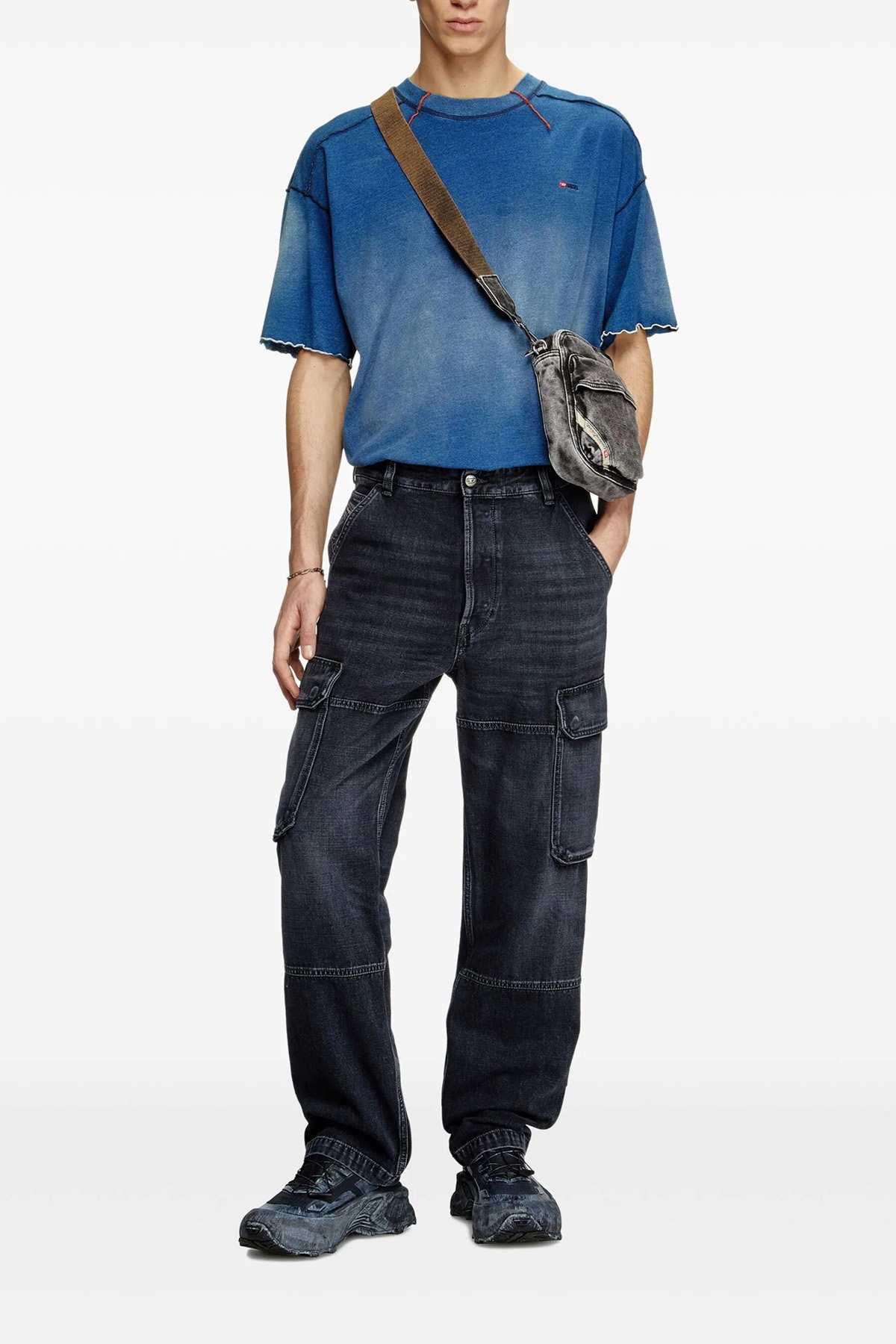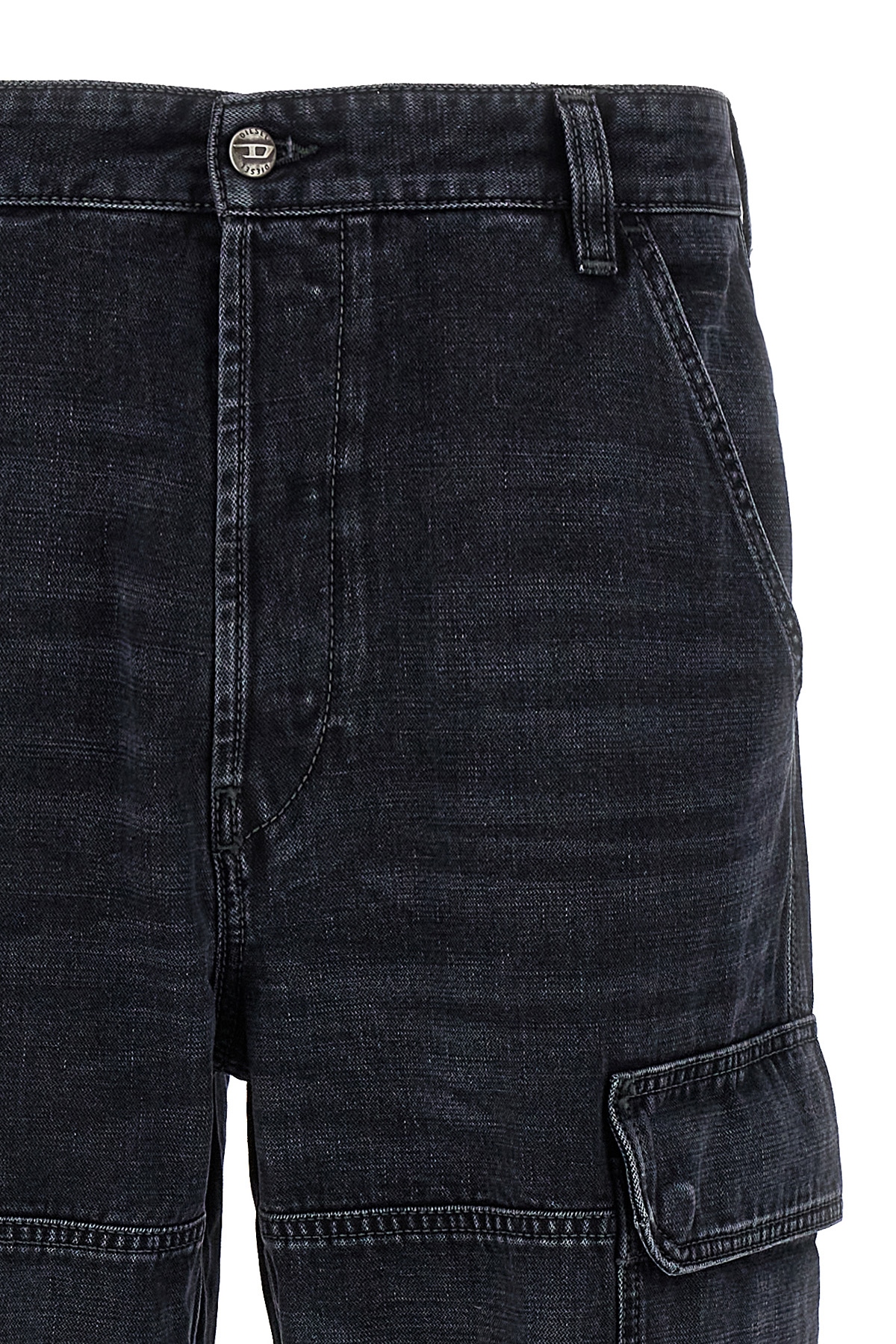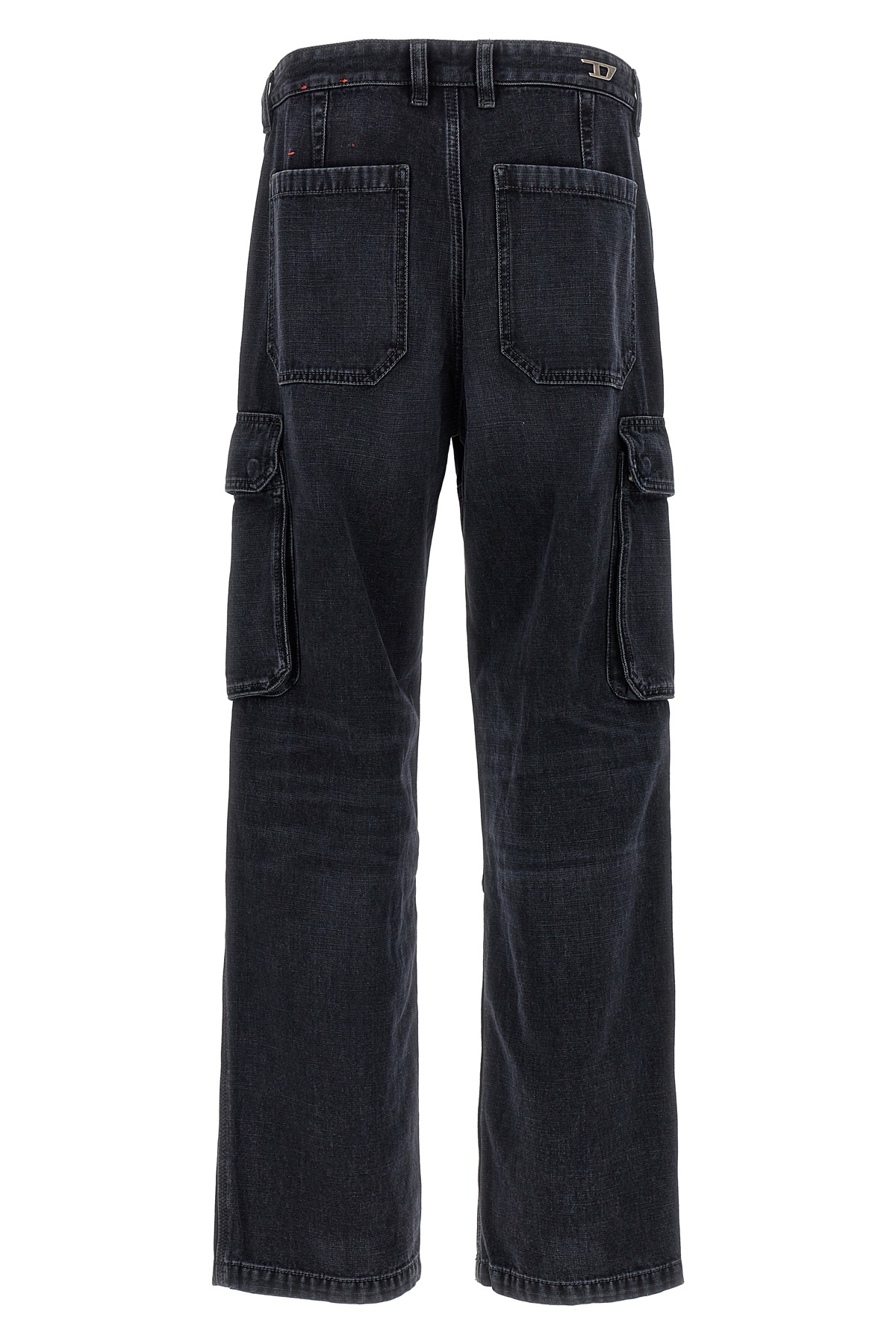 'D-Uty-Cargo' stonewashed batavia denim jeans, medium waist and straight leg with cargo pockets, button closure, pockets.