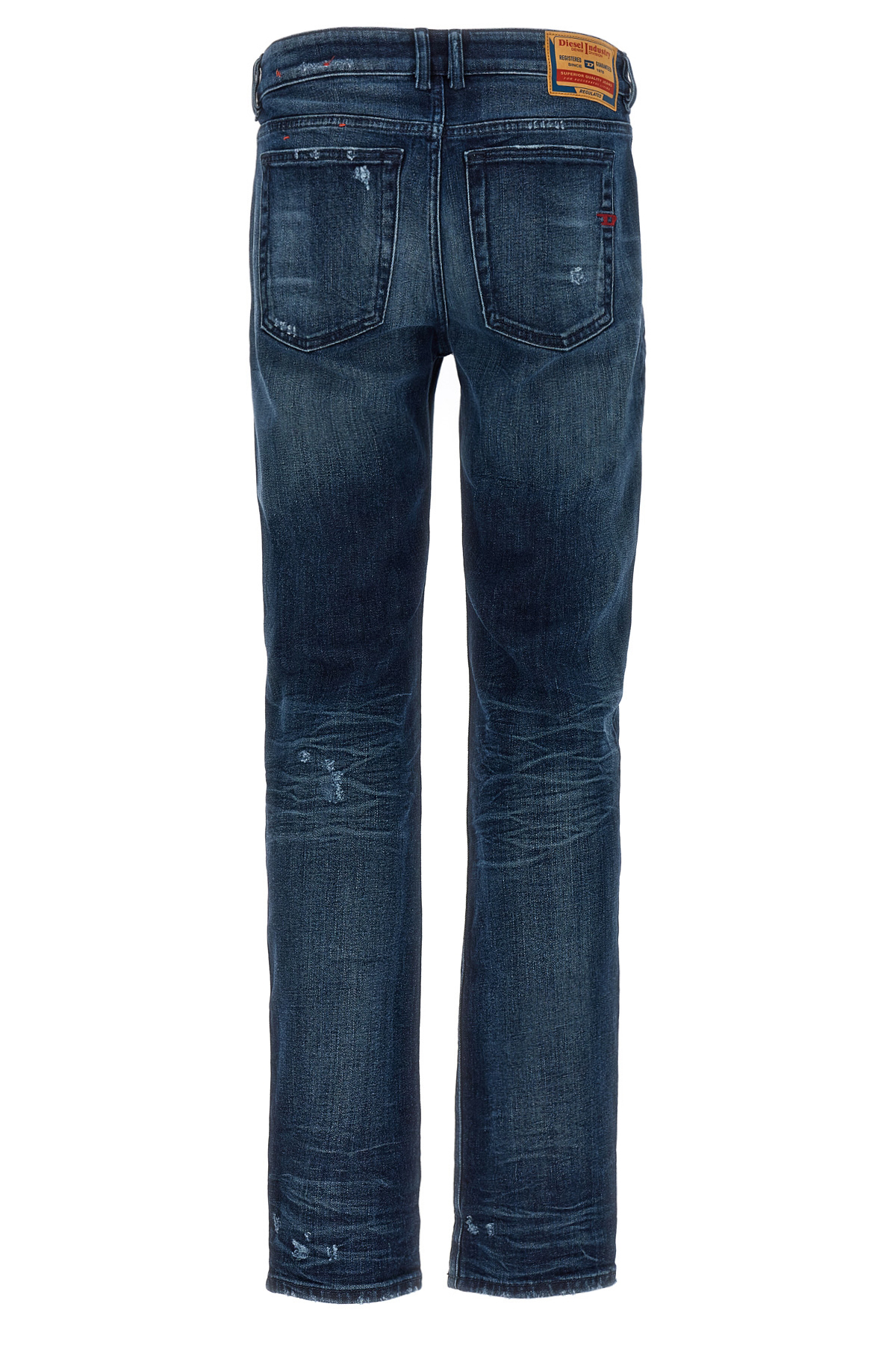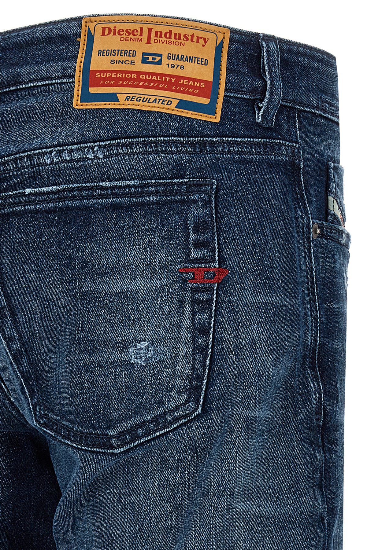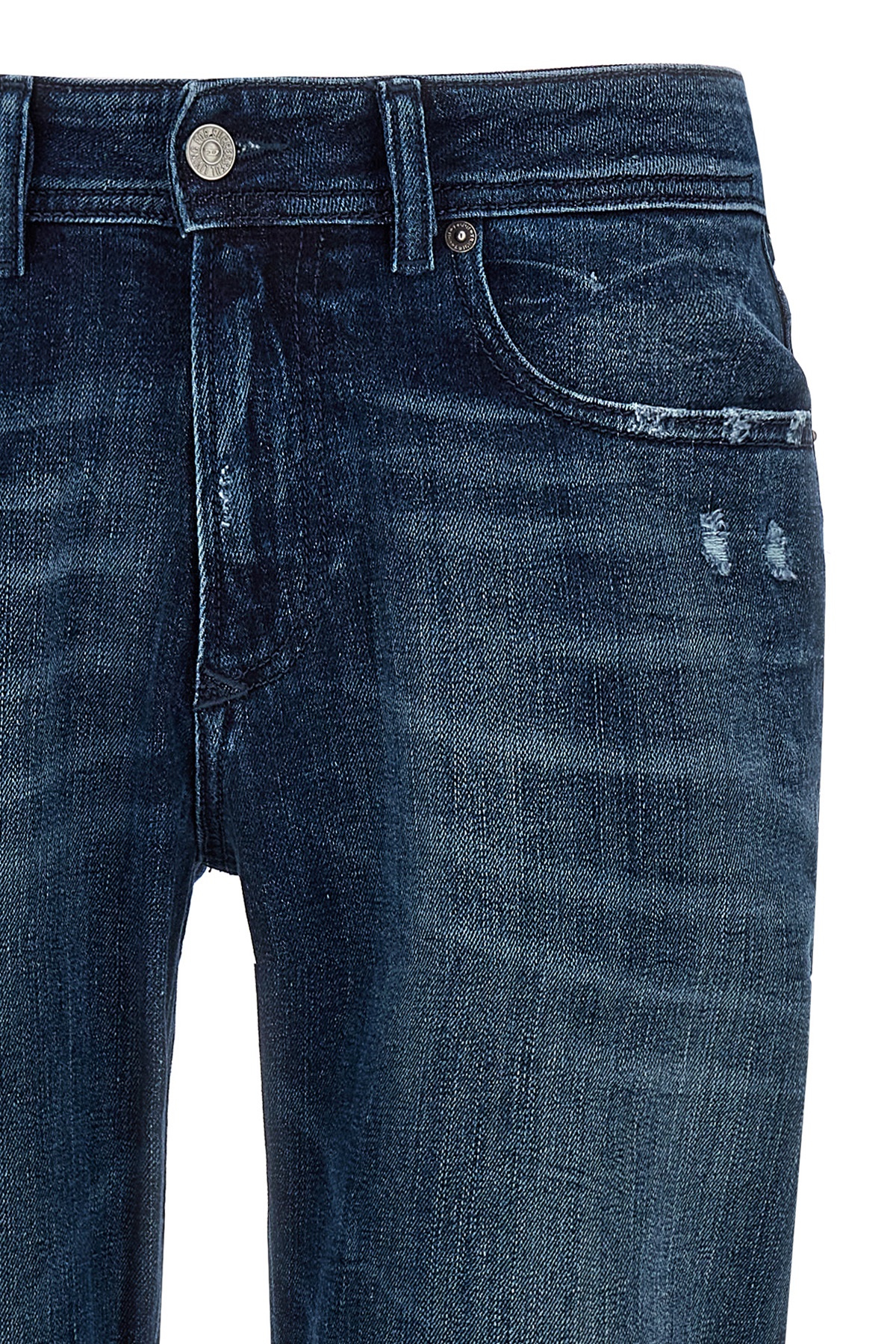 1979 Sleenker' used-effect stonewashed stretch cotton denim jeans with low waist, extra long leg, five pockets, zip and button closure, back logo tag.