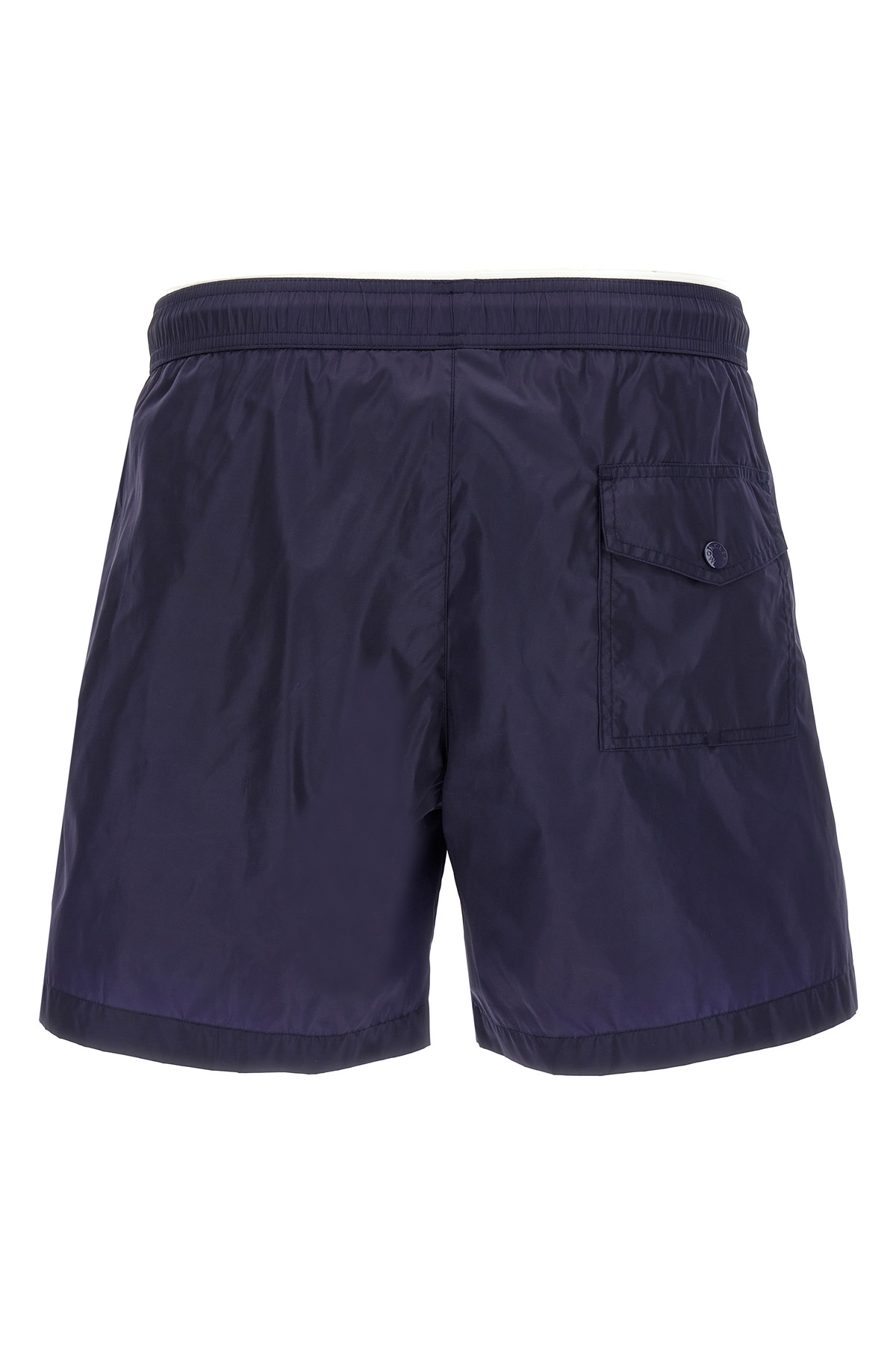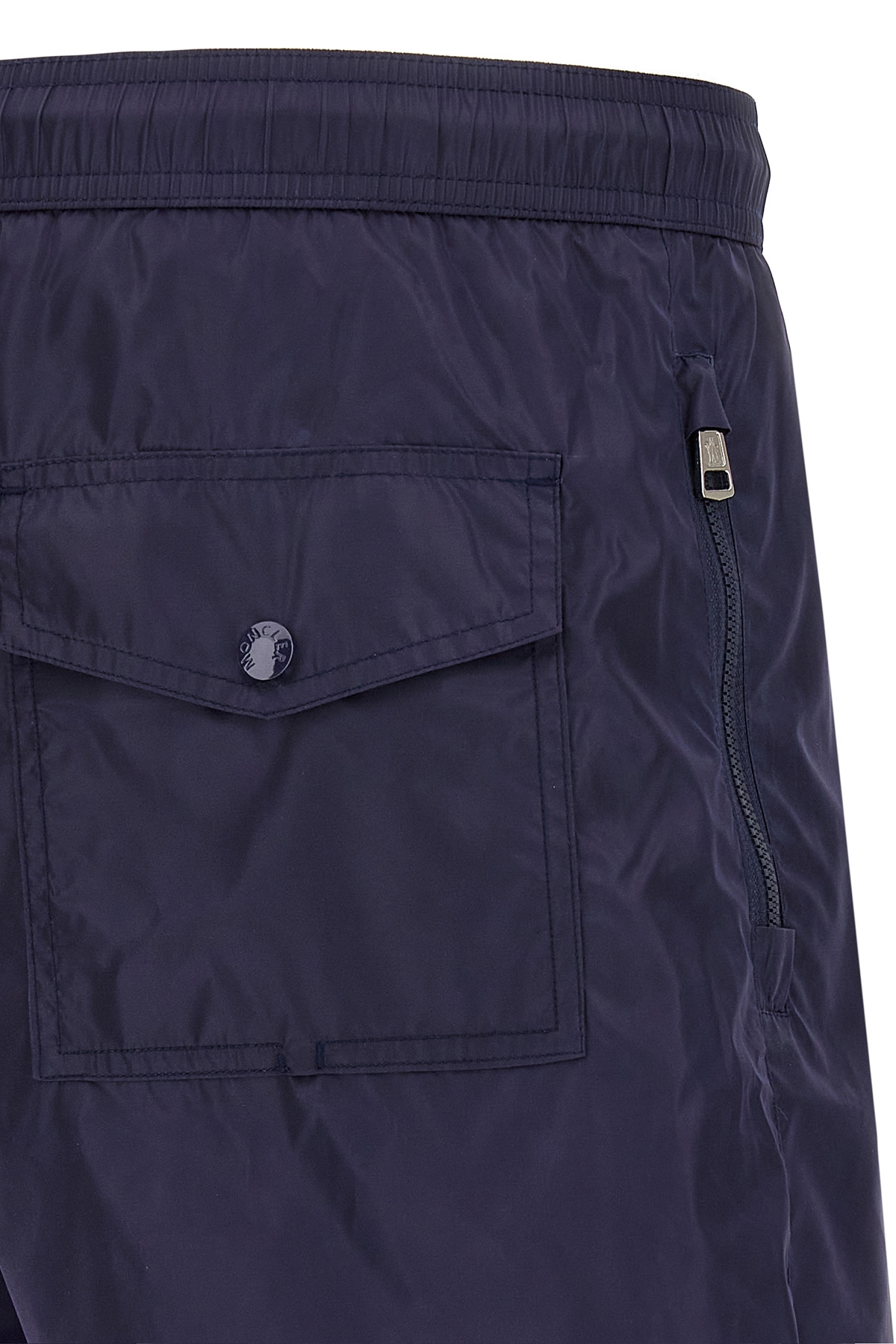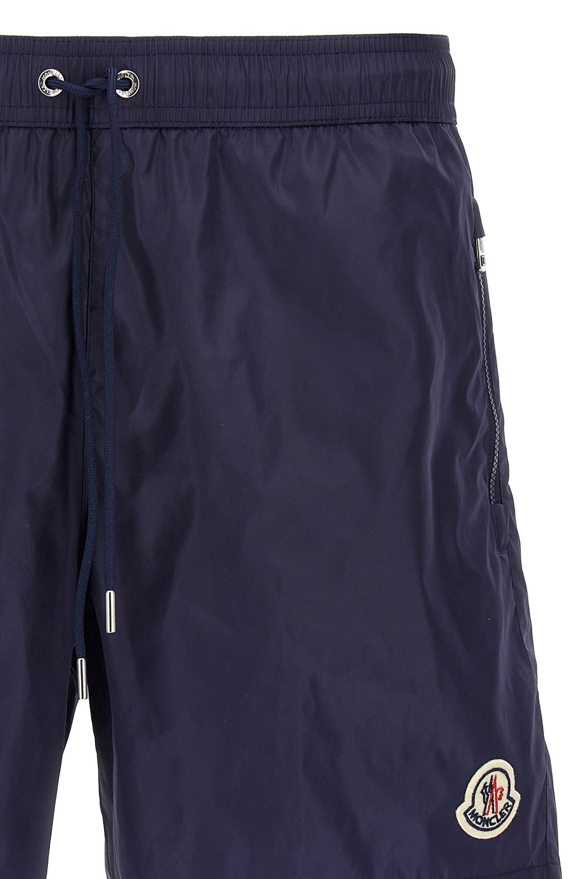 Technical nylon swimsuit, front felt logo patch, adjustable drawstring elastic at the waist, pockets, inner mesh briefs.