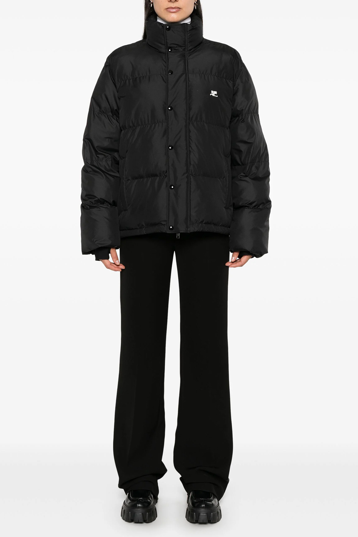'AC' padded nylon down jacket, zip and button closure, pockets, long sleeves with knitted cuffs, adjustable drawstring at the hem.