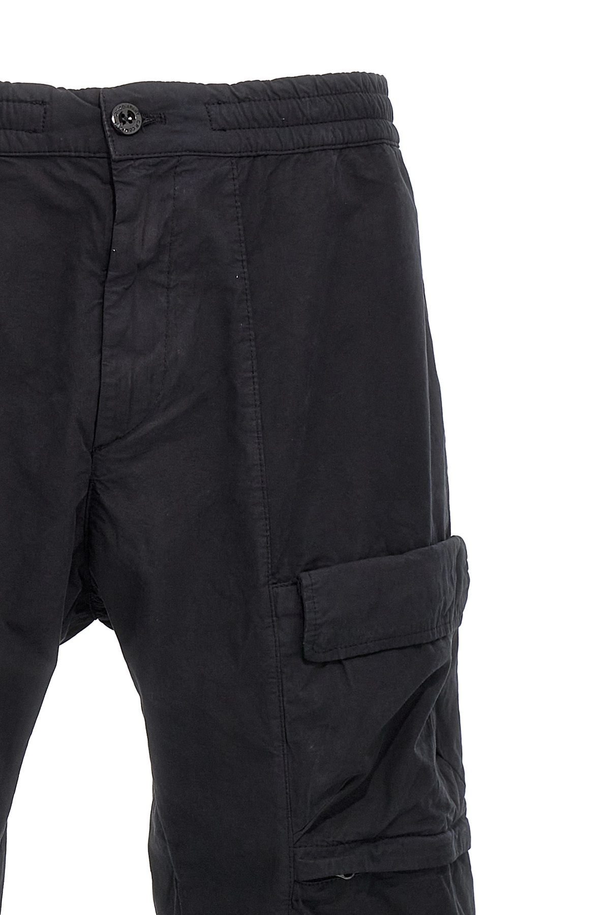 'Microreps Utility' cotton pants, zip and button closure, drawstring elastic waistband, pockets, logo badge, adjustable drawstring at the hem.