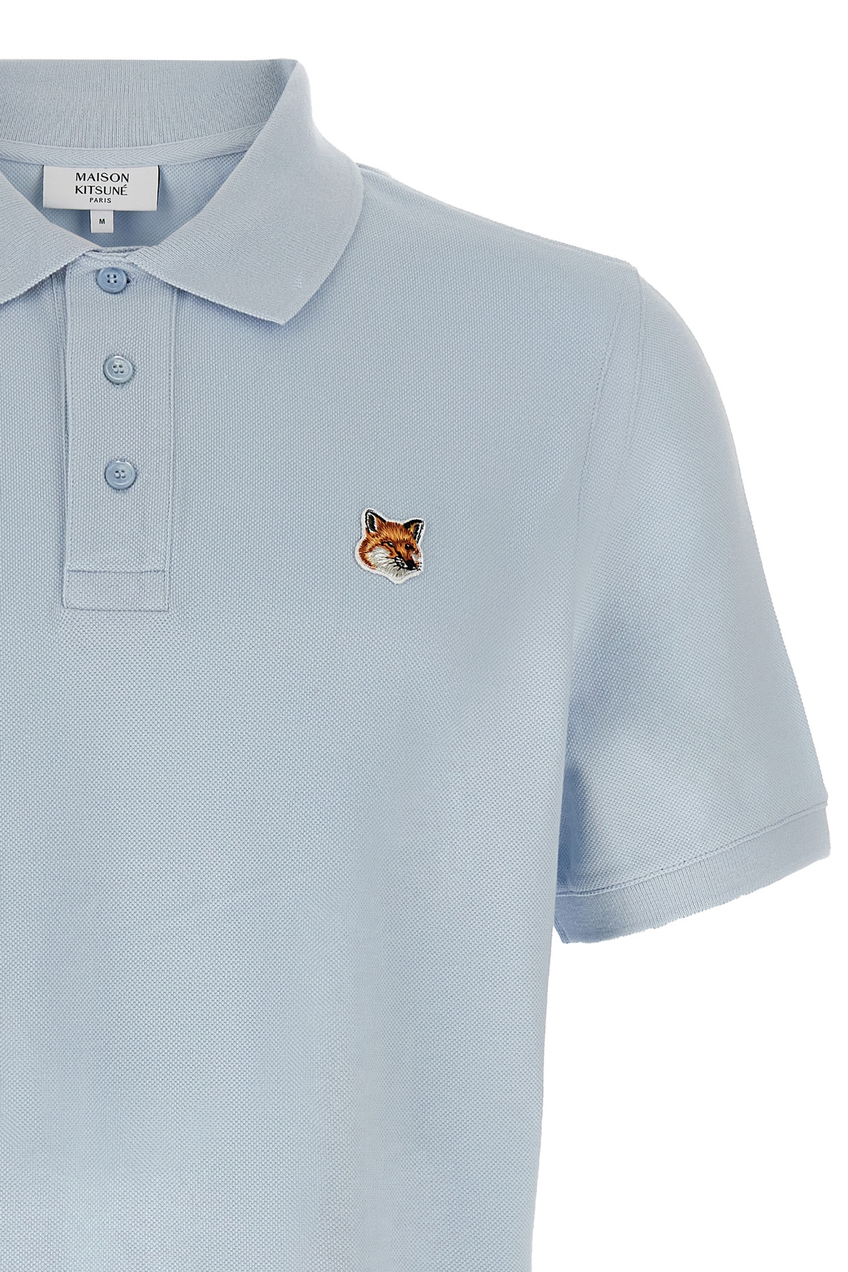 Cotton pique polo shirt, front 'Fox Head' patch, collar and buttons, short sleeves, side vents.