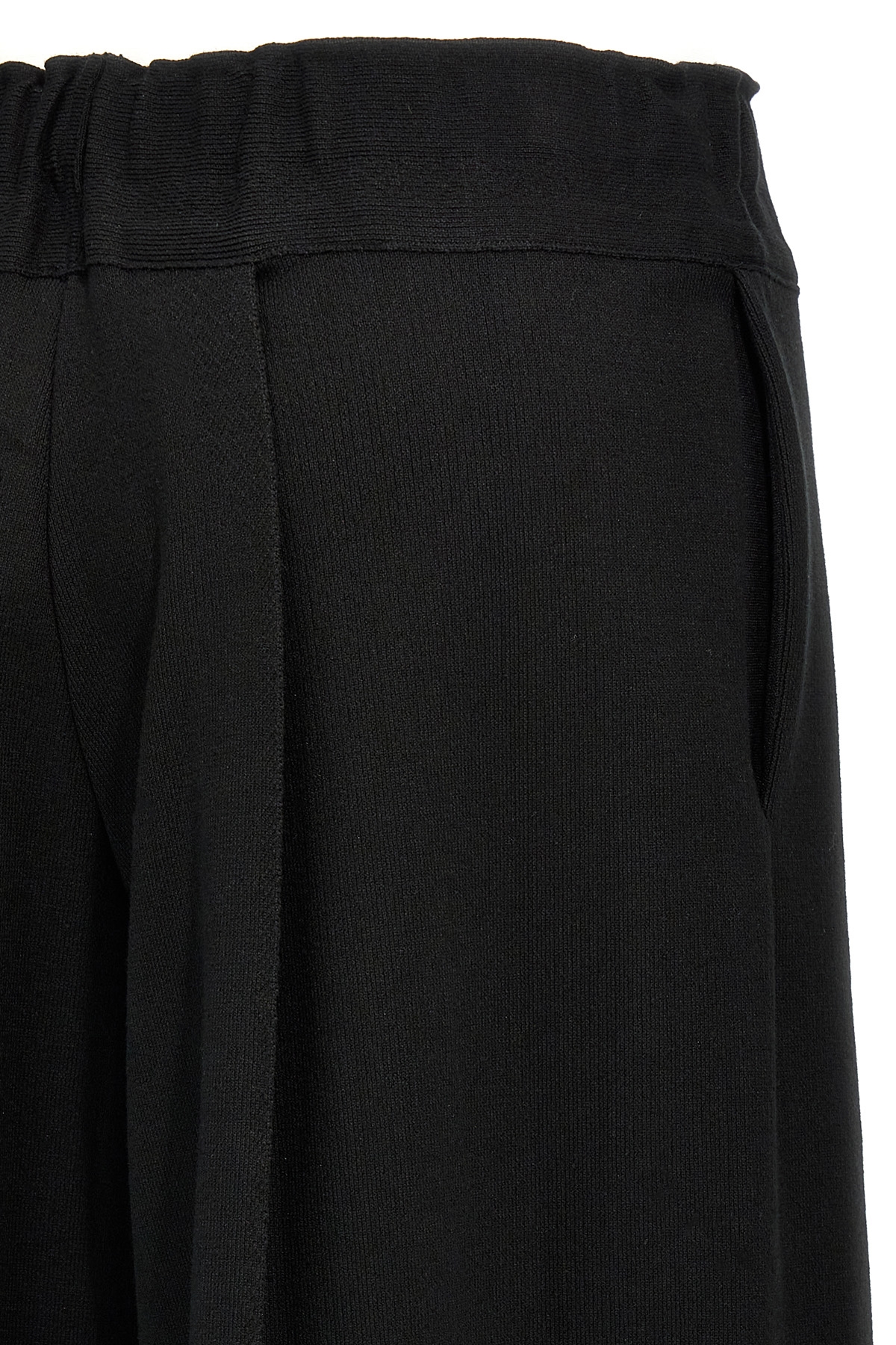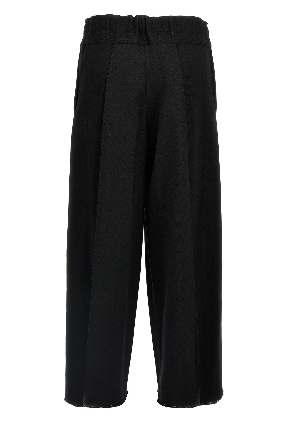 'Champagne' stretch cotton blend pants, front and back pleats, wide leg, elastic waistband, pockets, raw cut hem.