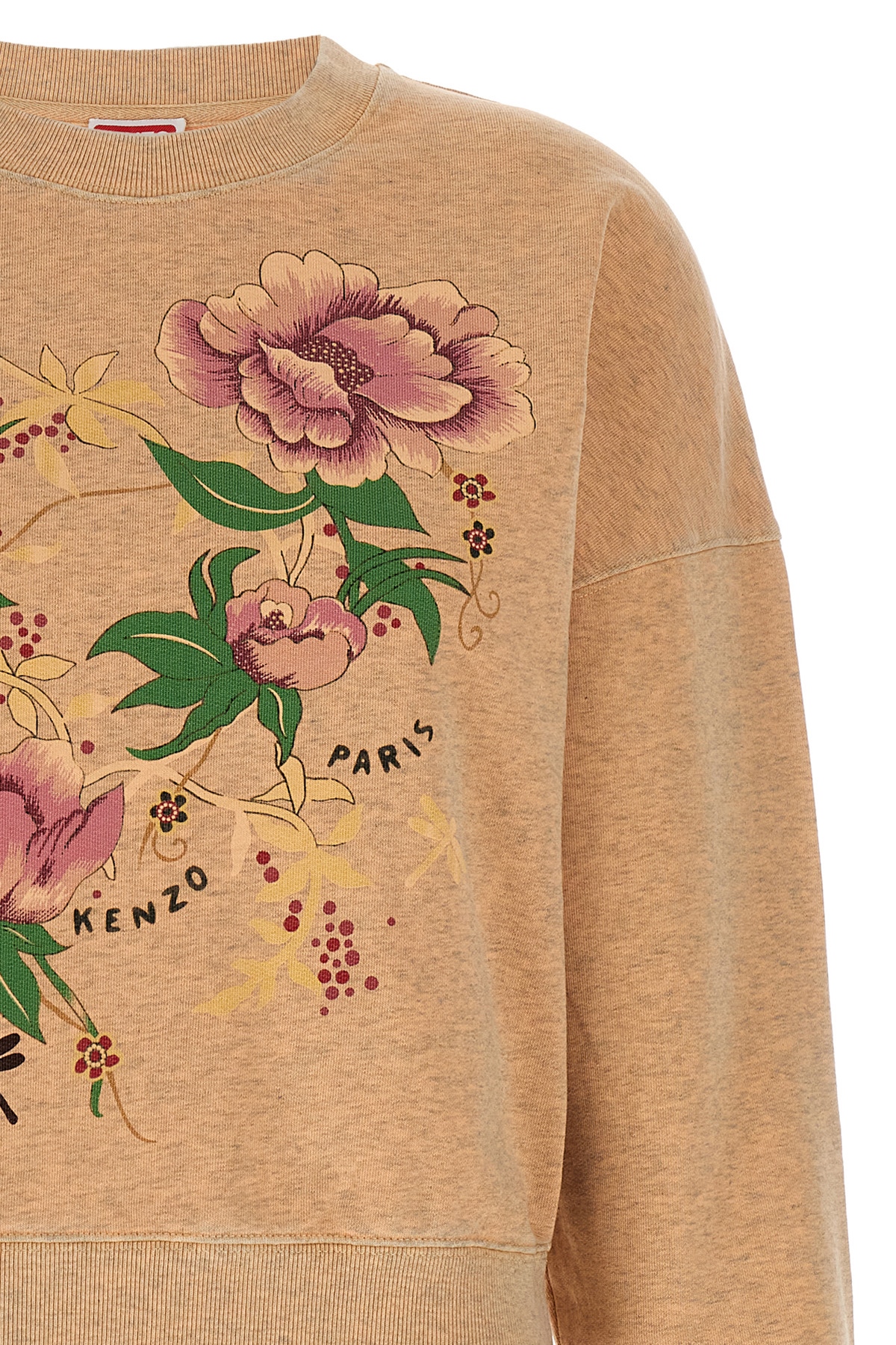 Melange brushed cotton sweatshirt with front 'Kenzo Peonies' print, crew neck, long sleeves with cuffs and dropped shoulders.