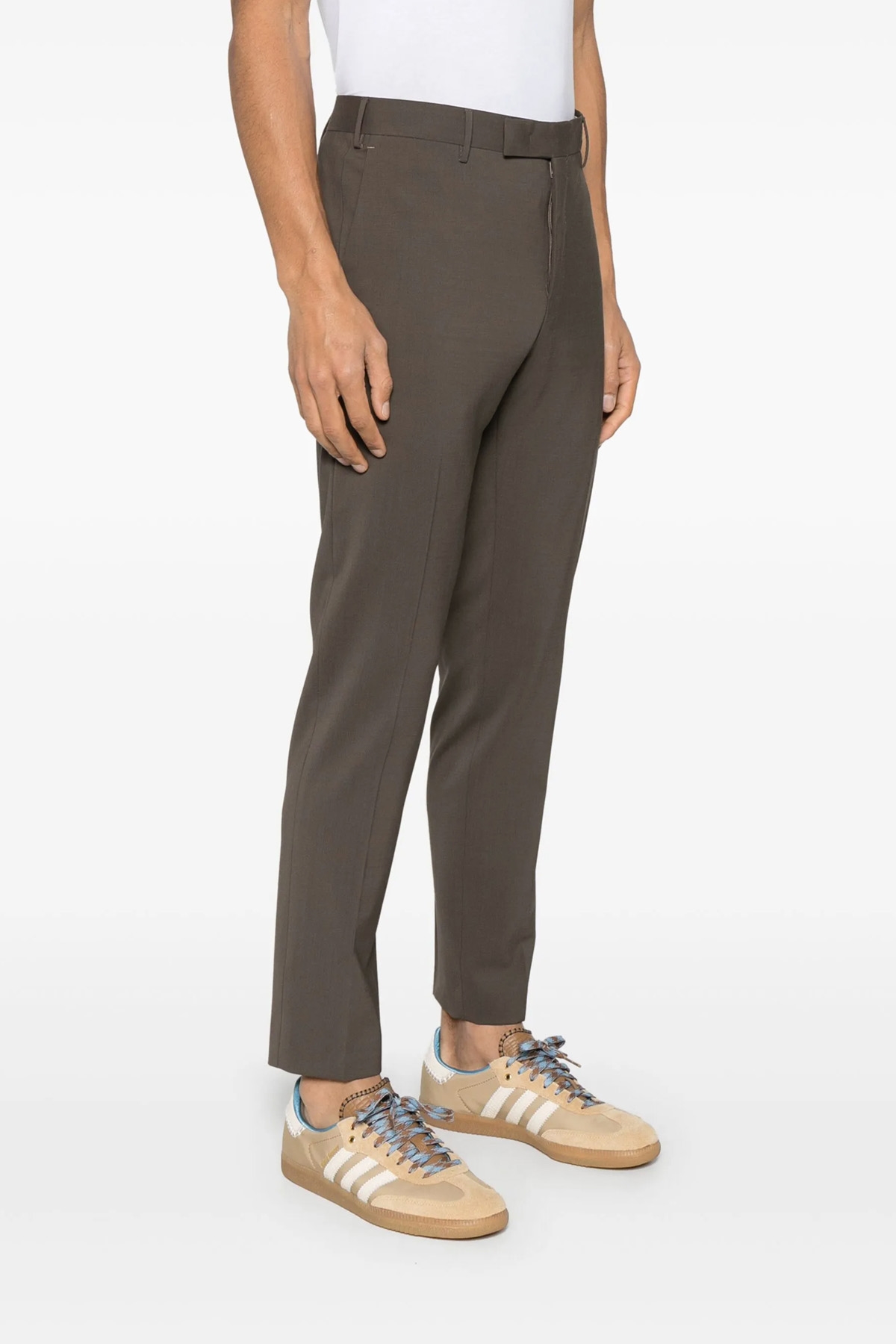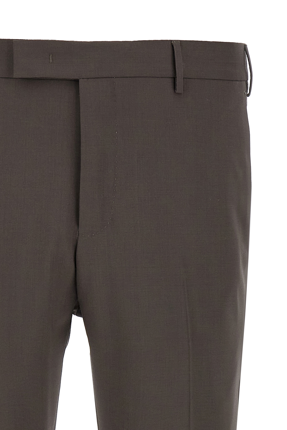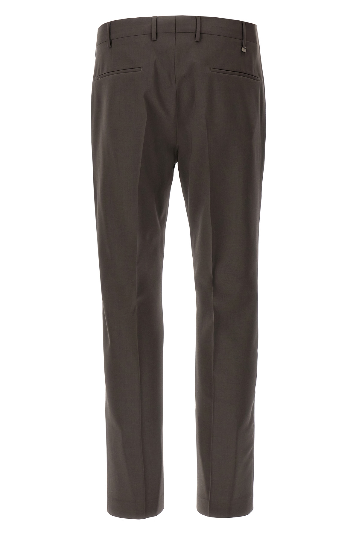 'Dieci' stretch wool pants with ankle length, hook and button zip closure, pockets, straight leg, stretched crease.