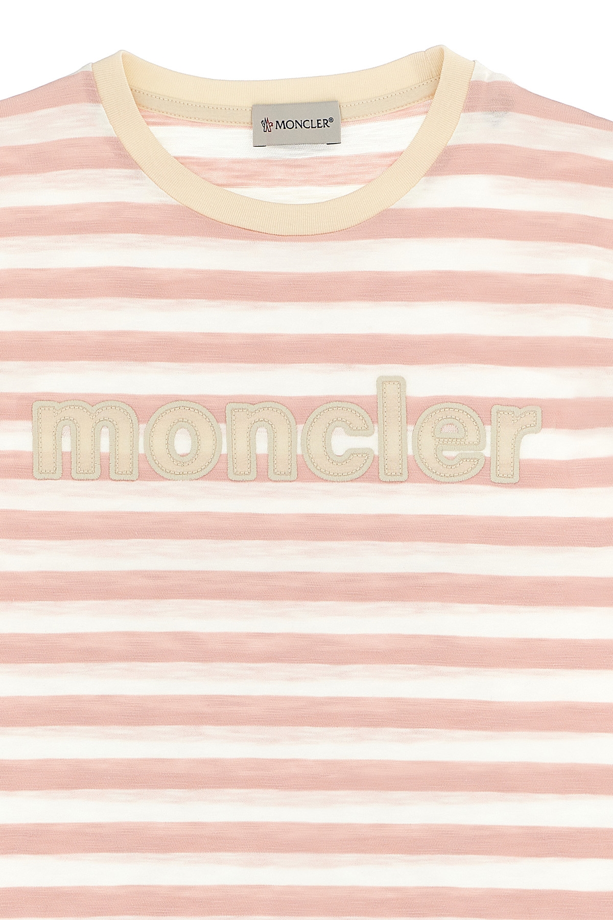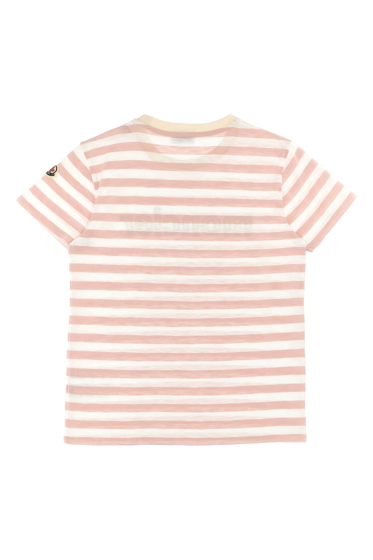 KIDS Striped light cotton jersey t-shirt, maxi front logo patch, crew neck, short sleeves with felt logo patch applique.