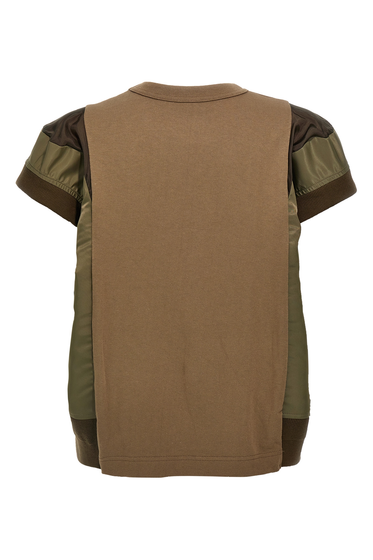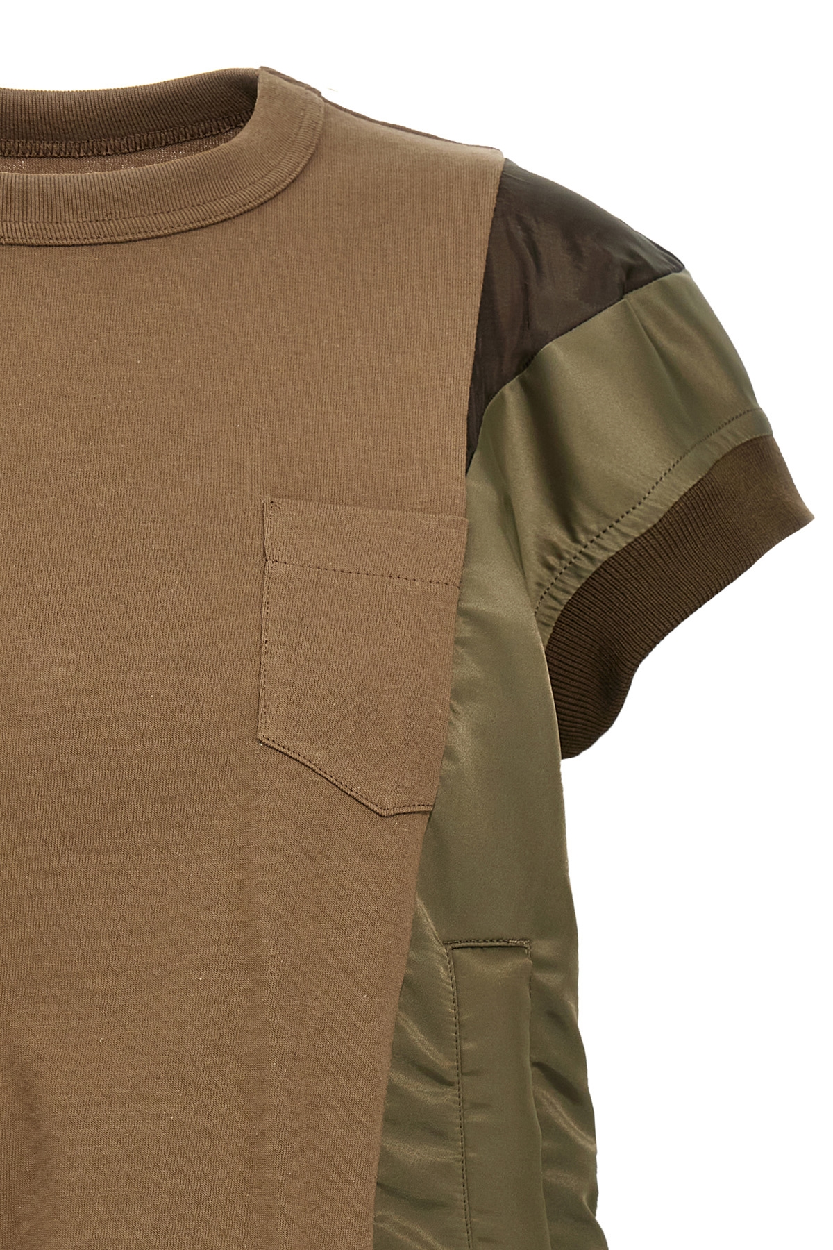 Cotton T-shirt with side nylon inserts, crew neck, pockets, short sleeves with knitted cuffs.