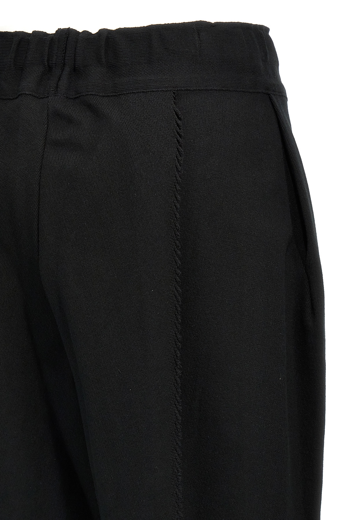 'Champagne' stretch cotton blend pants, fringed front and back pleats, balloon leg, elastic waistband, pockets, raw cut hem.