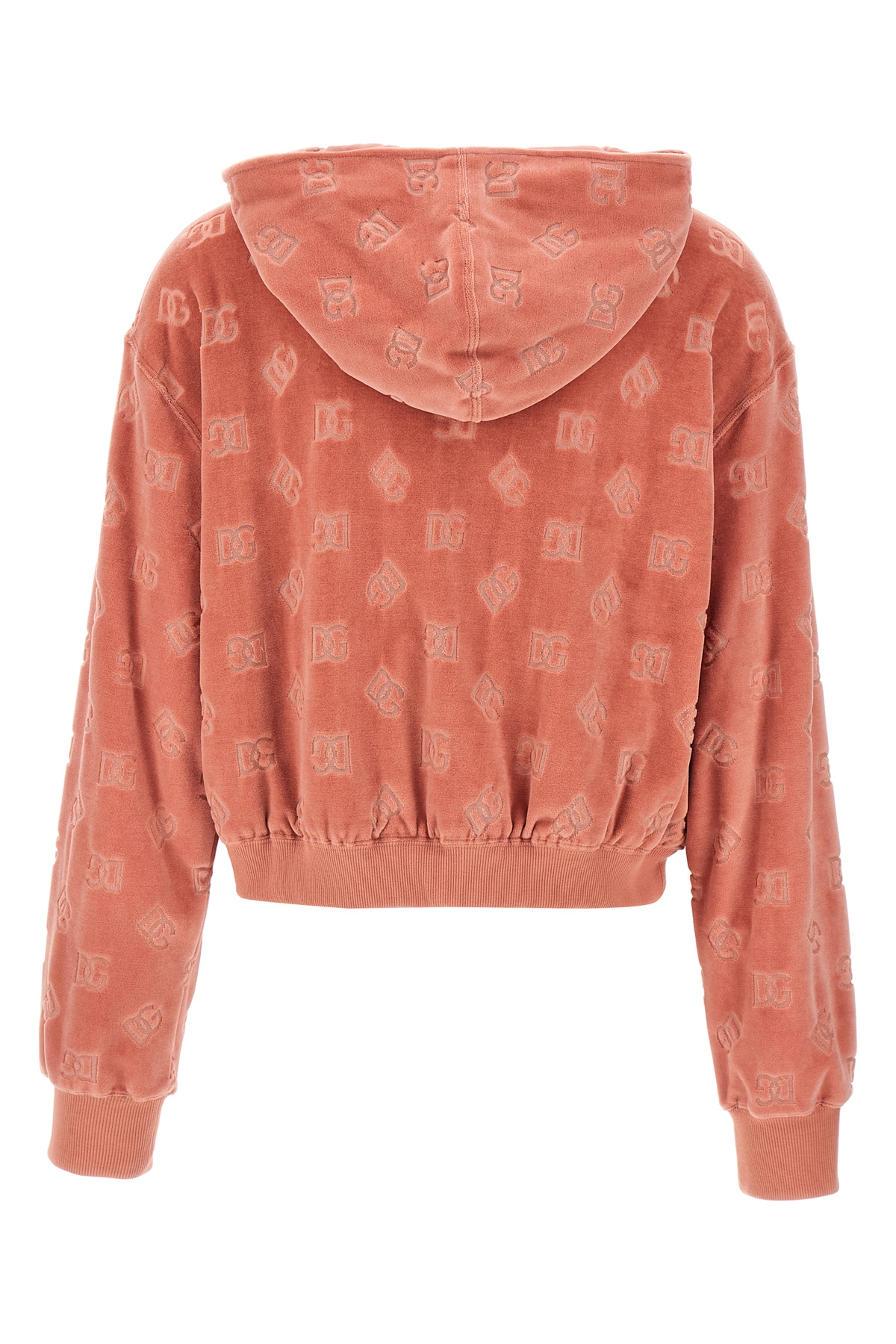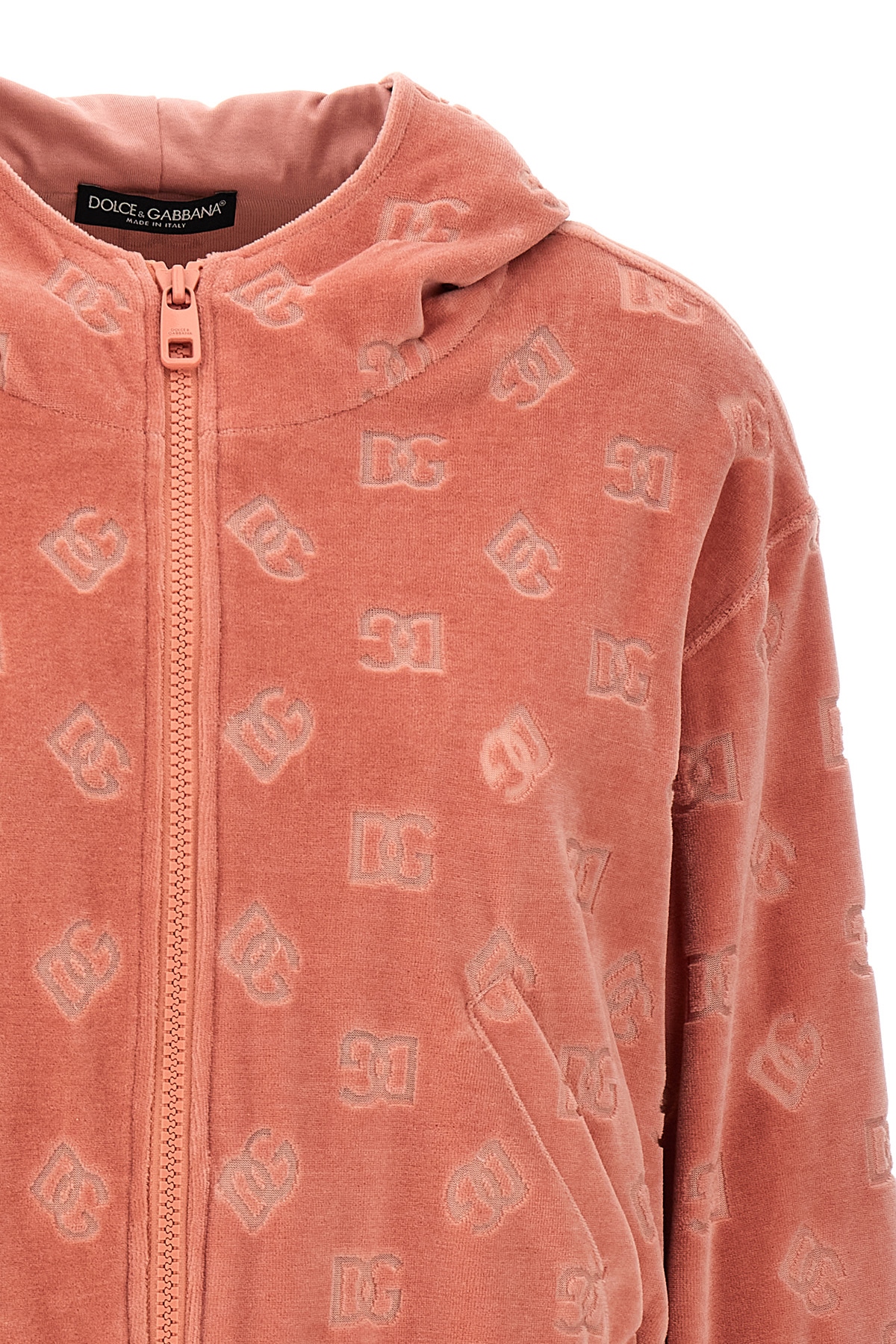Chenille hoodie with all-over DG jacquard logo, zip closure, long sleeves with elastic cuffs, pockets, elastic hem.