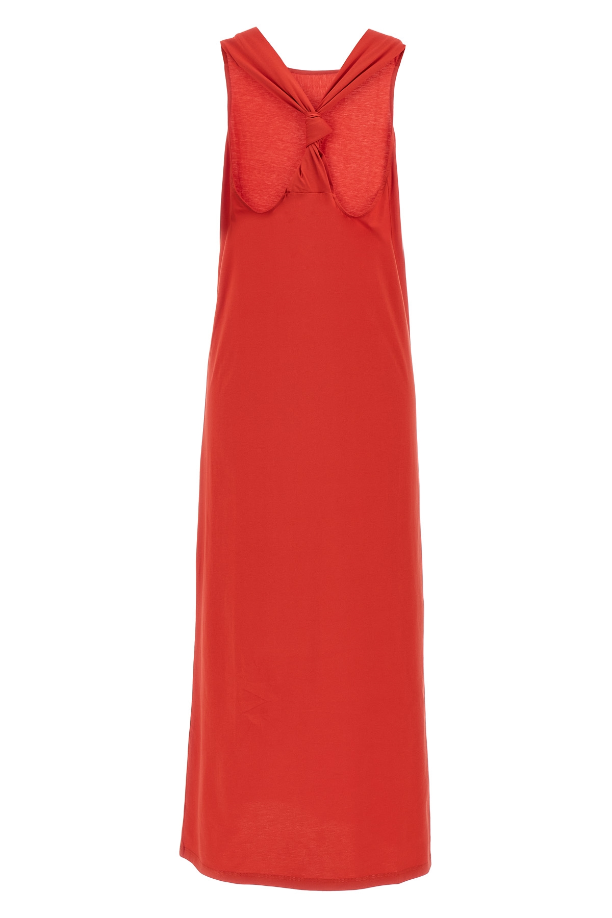 'Rayna' sleeveless cotton midi dress with round neckline, weave with back knot detail, side split.