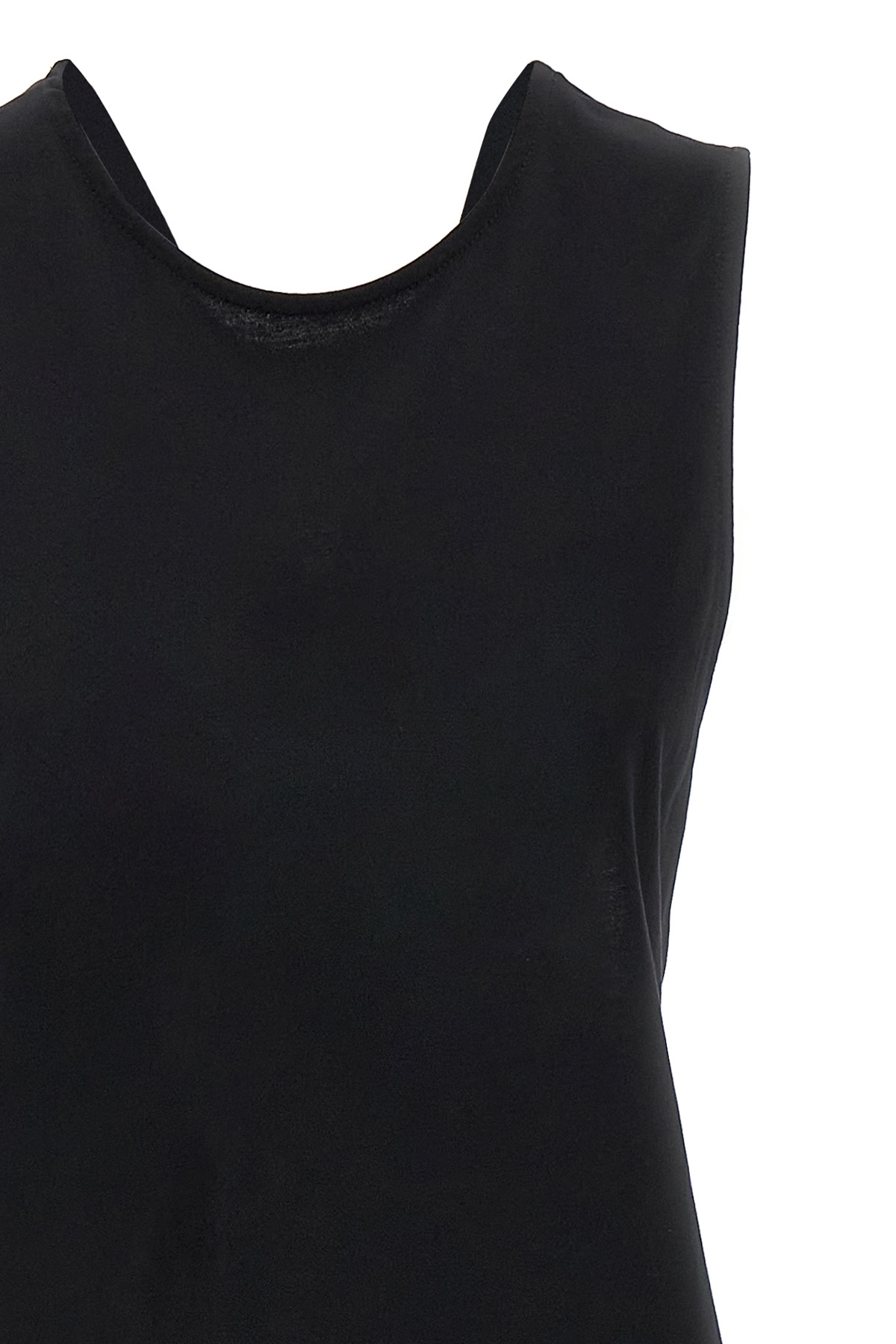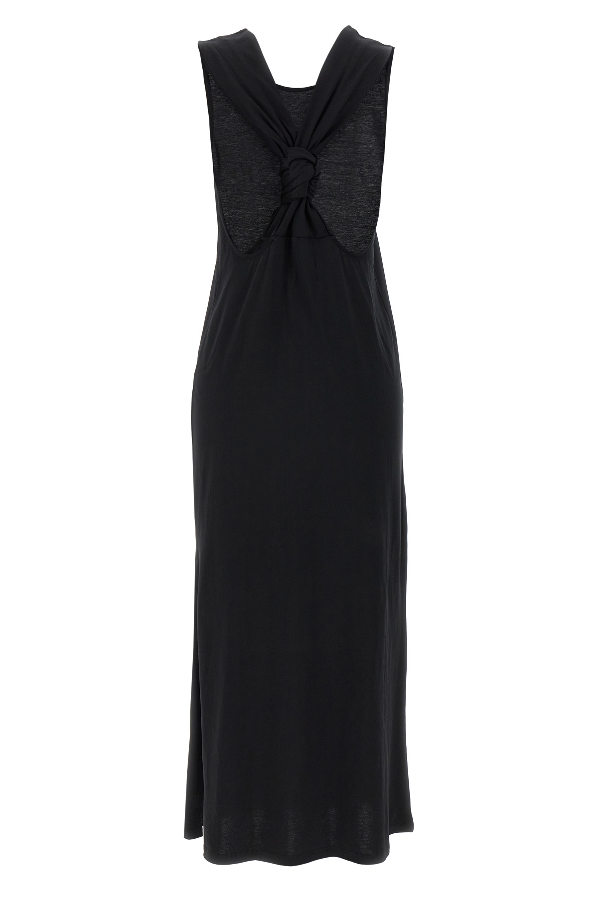 'Rayna' sleeveless cotton midi dress with round neckline, weave with back knot detail, side split.