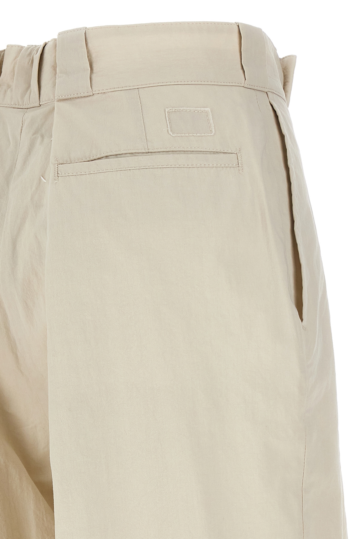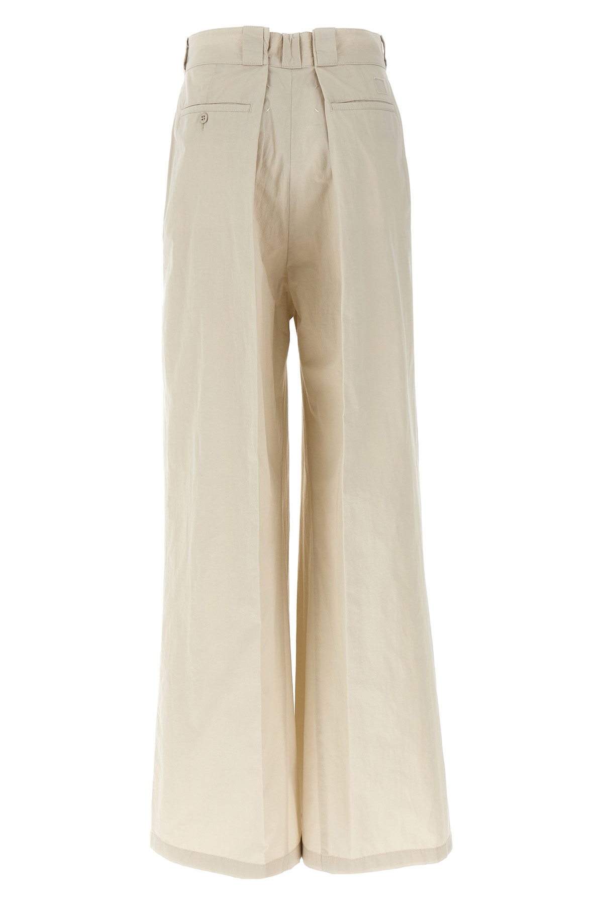 Cotton blend pants, wide leg, zip, hook and button closure, pockets.