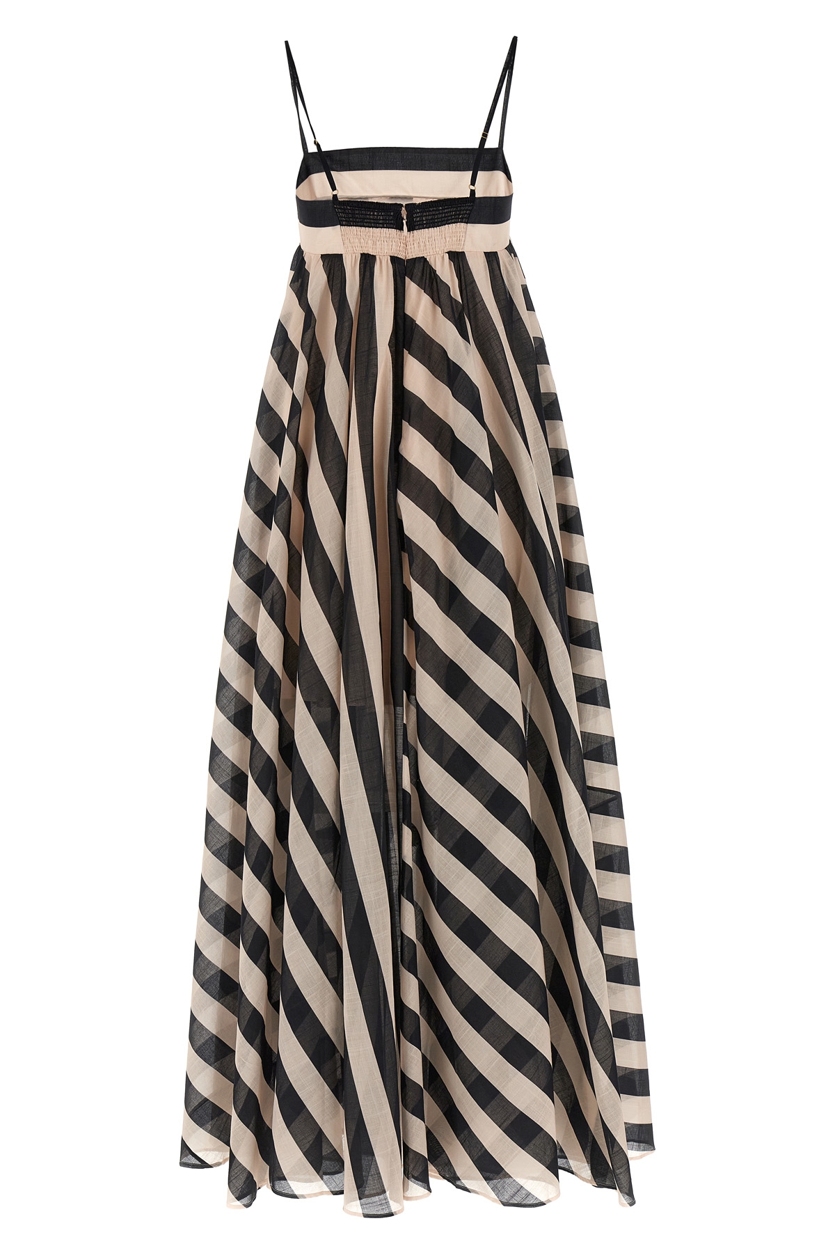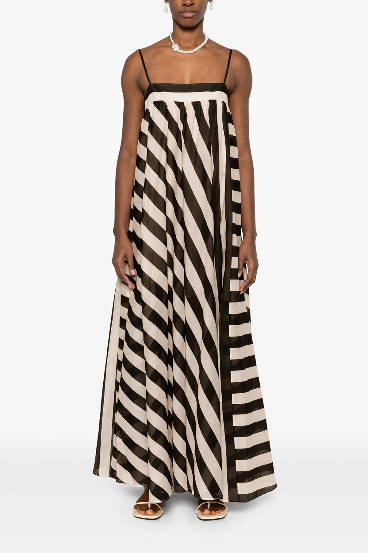 Long 'Maxine' maxi striped cotton dress, sleeveless with thin adjustable straps, smock stitch with back zip closure, petticoat.