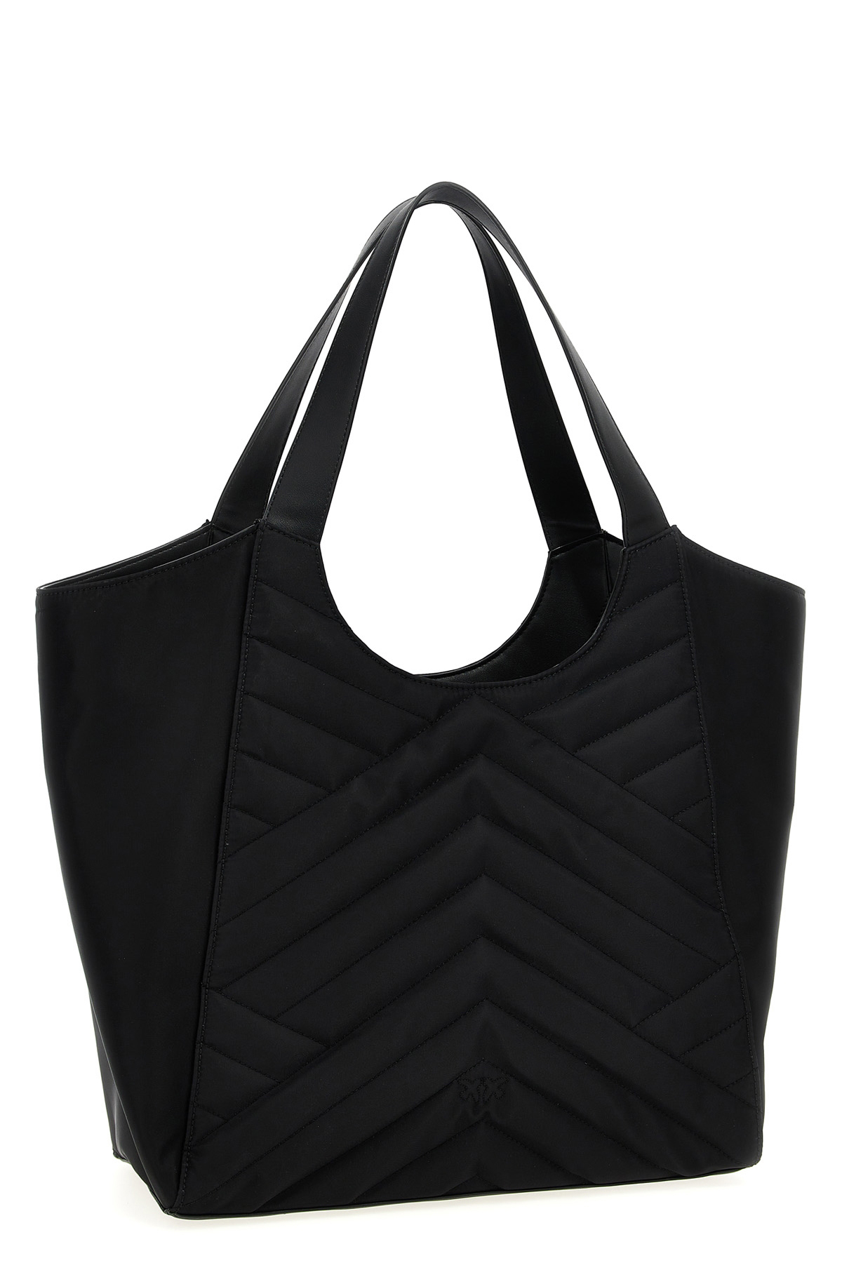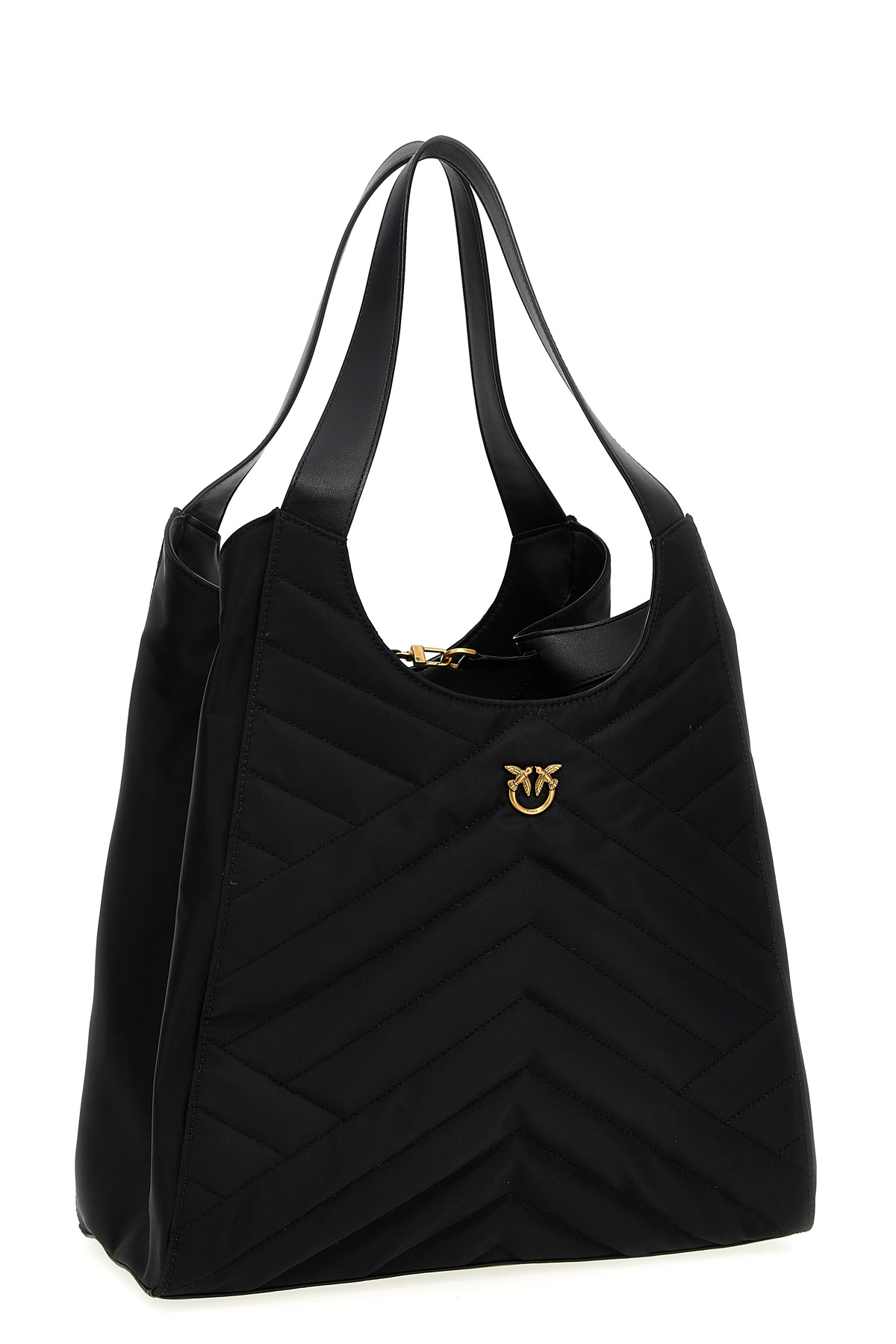 'Puzzle' shopping bag in quilted synthetic fabric, front metal logo, magnetic closure, double fixed handle. SUSTAINABLE: This product is made with recycled nylon.