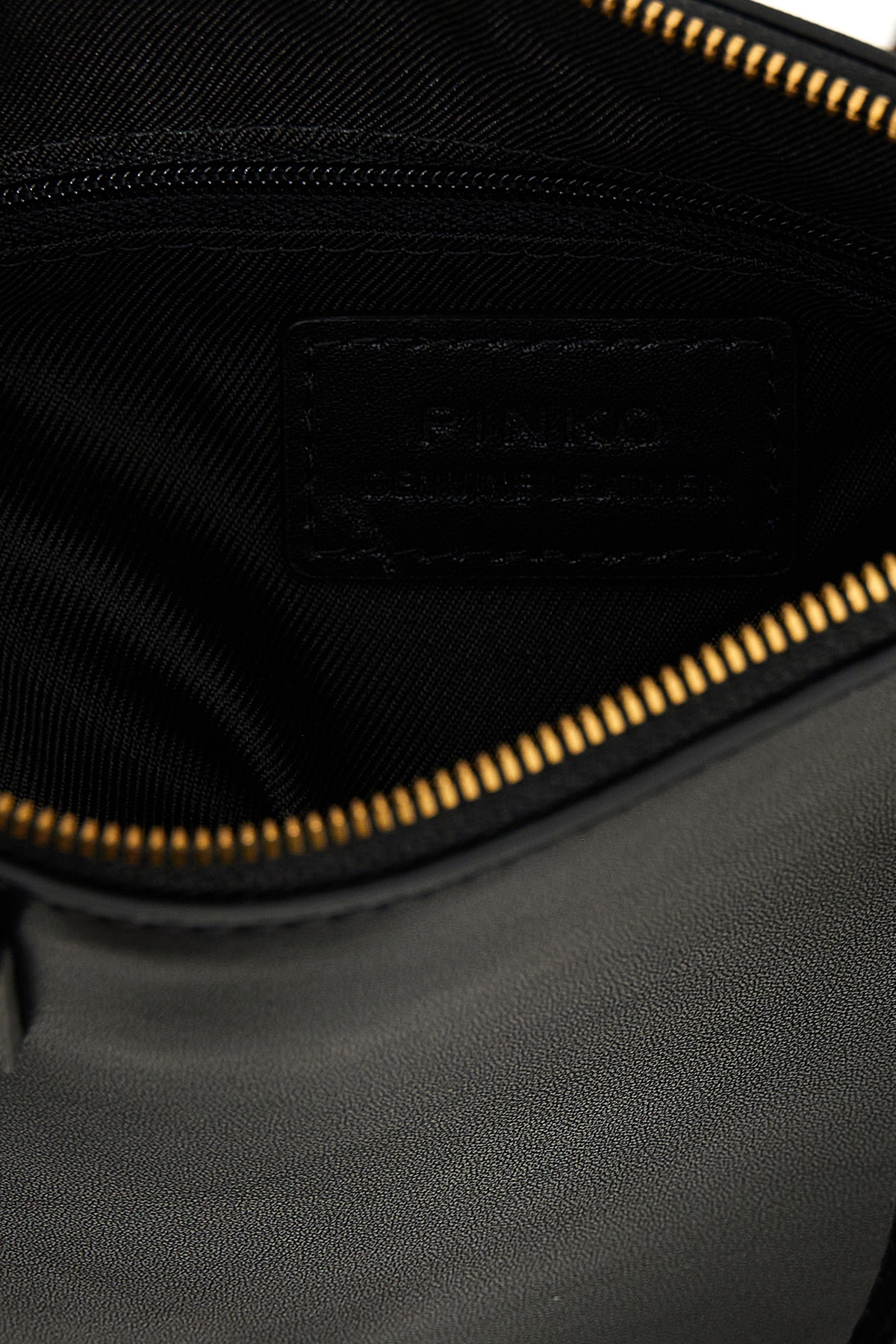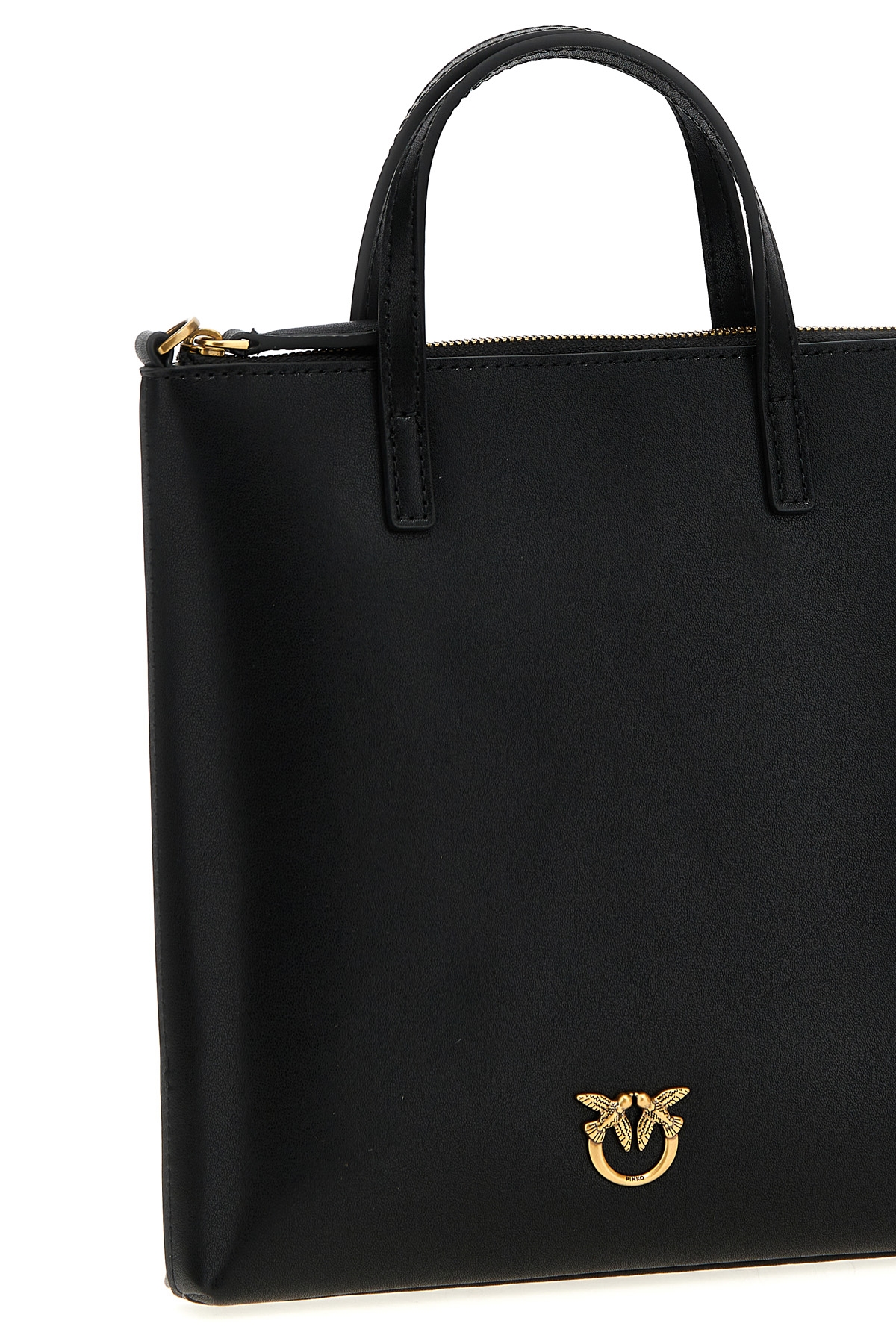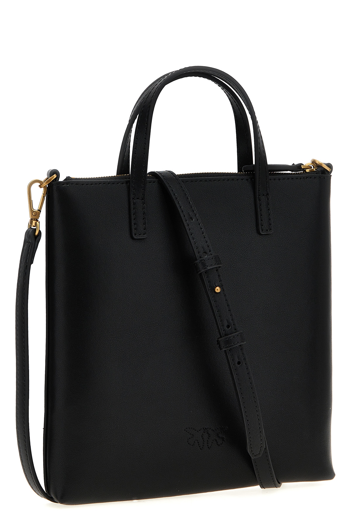 Smooth leather mini shopping bag, front metal logo, double fixed handle, adjustable and removable shoulder strap.