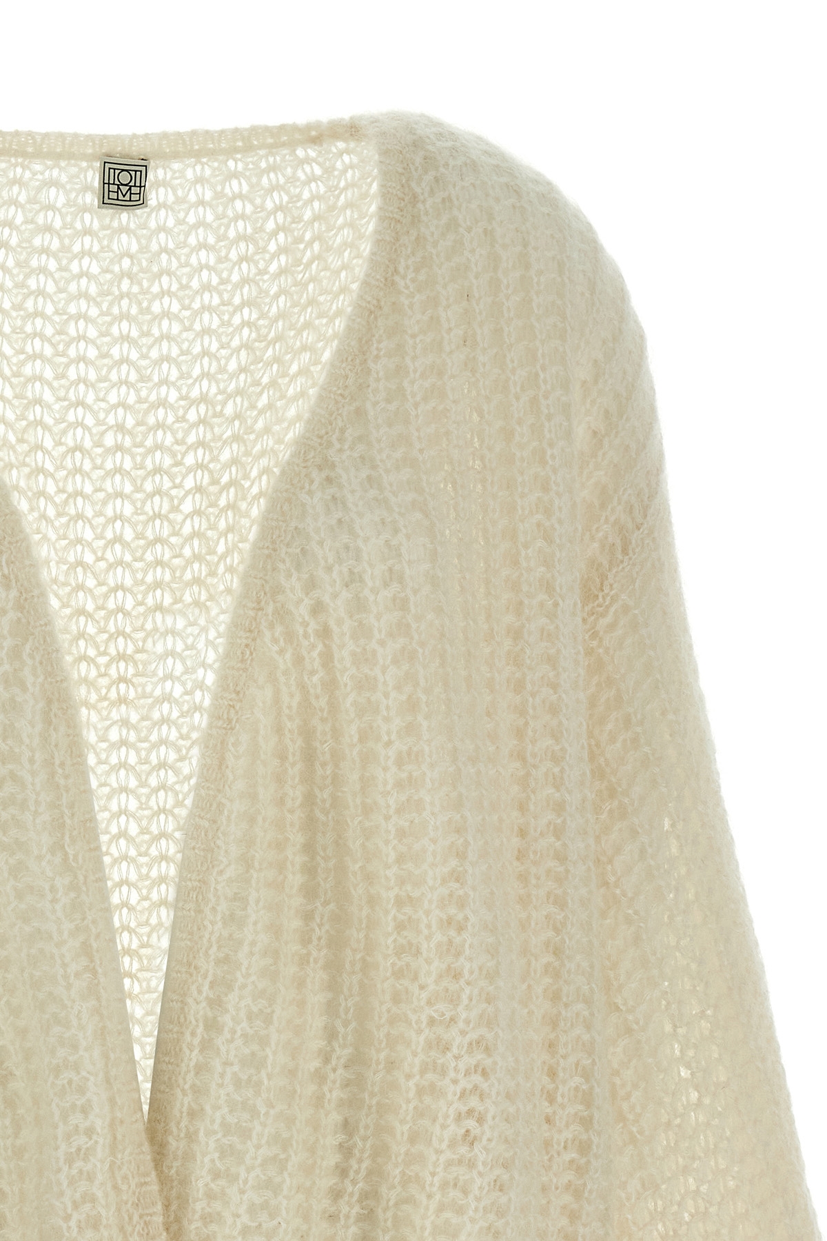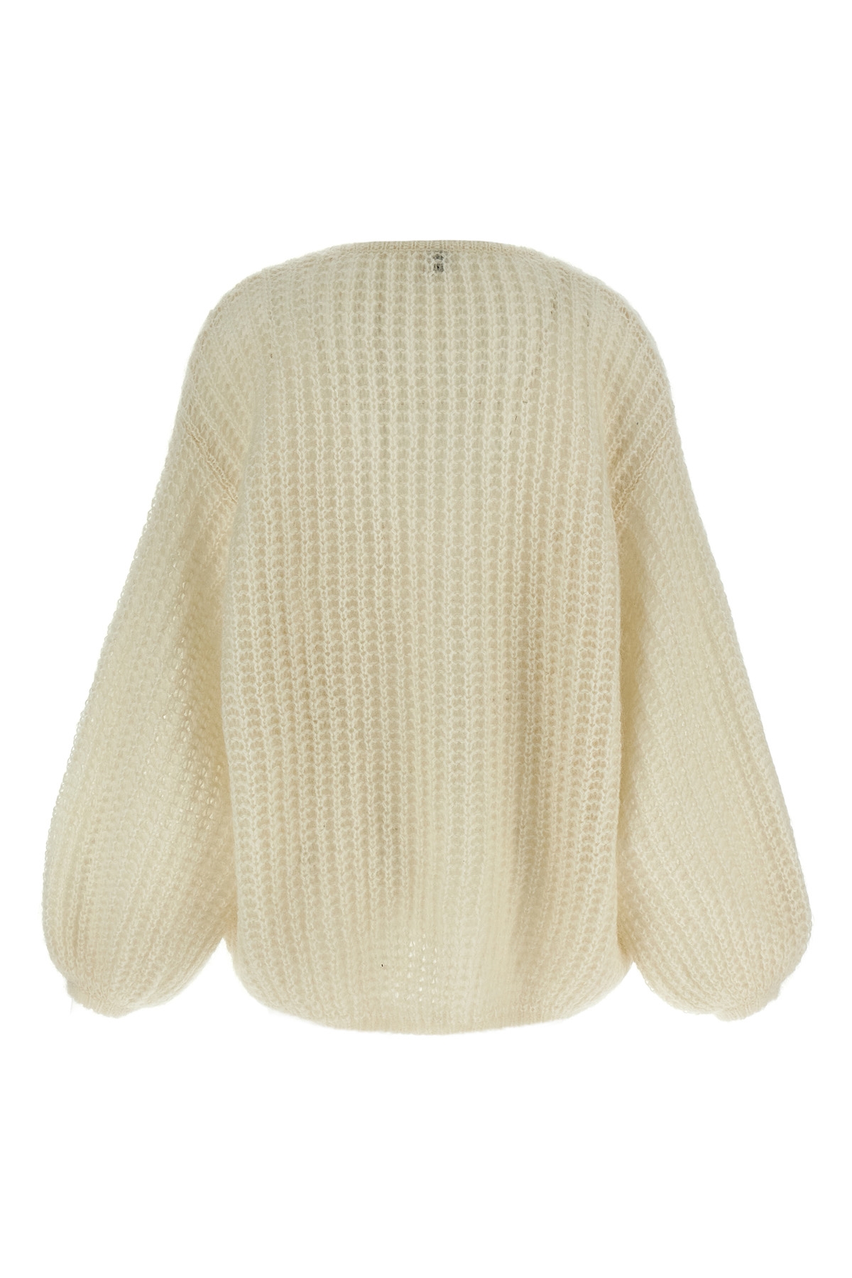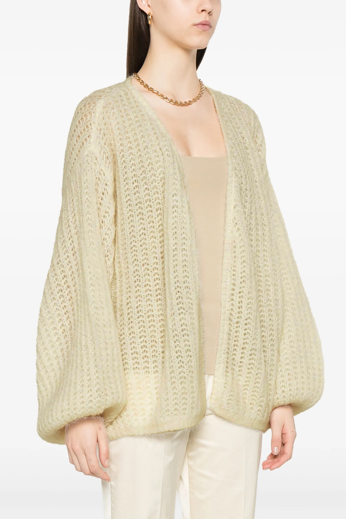 Puffed' cardigan in mohair wool blend knitted with openwork and long balloon sleeves with dropped shoulder and cuffs.