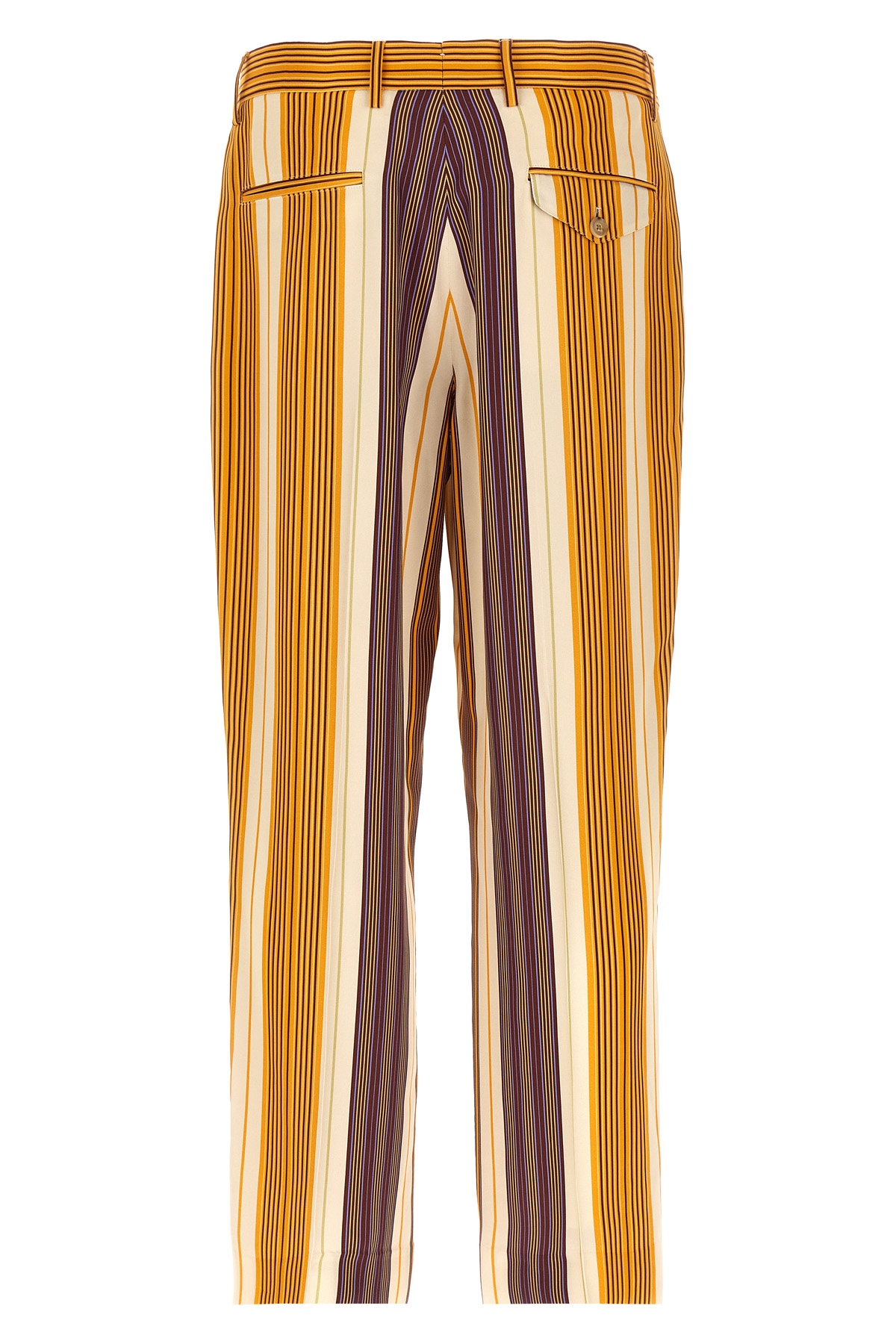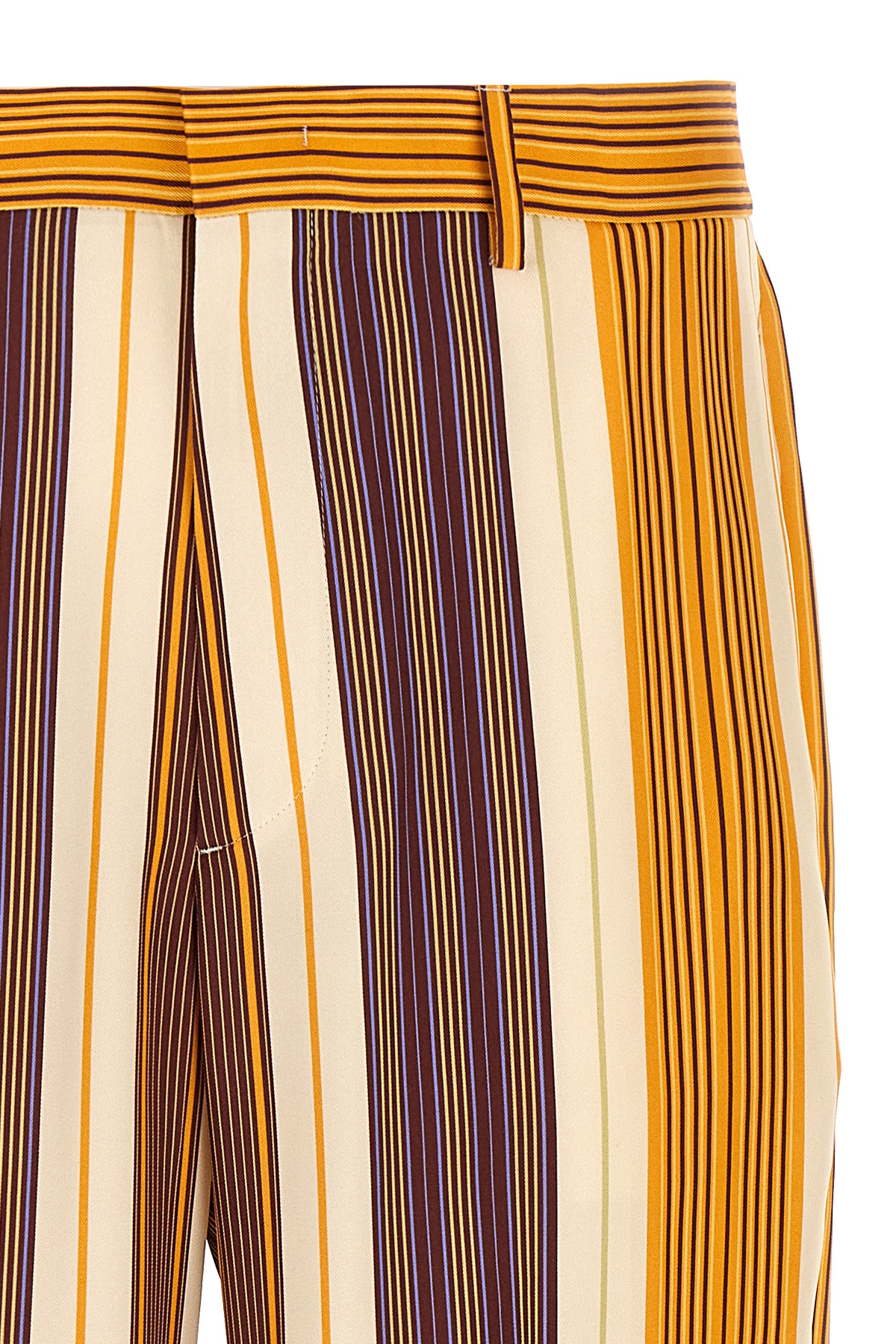 Striped viscose trousers, wide and straight leg, hook and button zip closure, pockets.