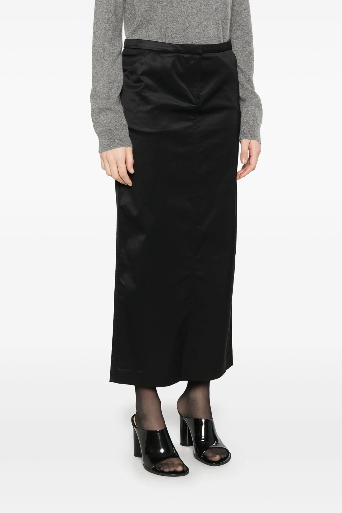 'Straight' skirt in cotton and viscose blend, pencil longuette model, back split, hook and button zip closure, pockets.