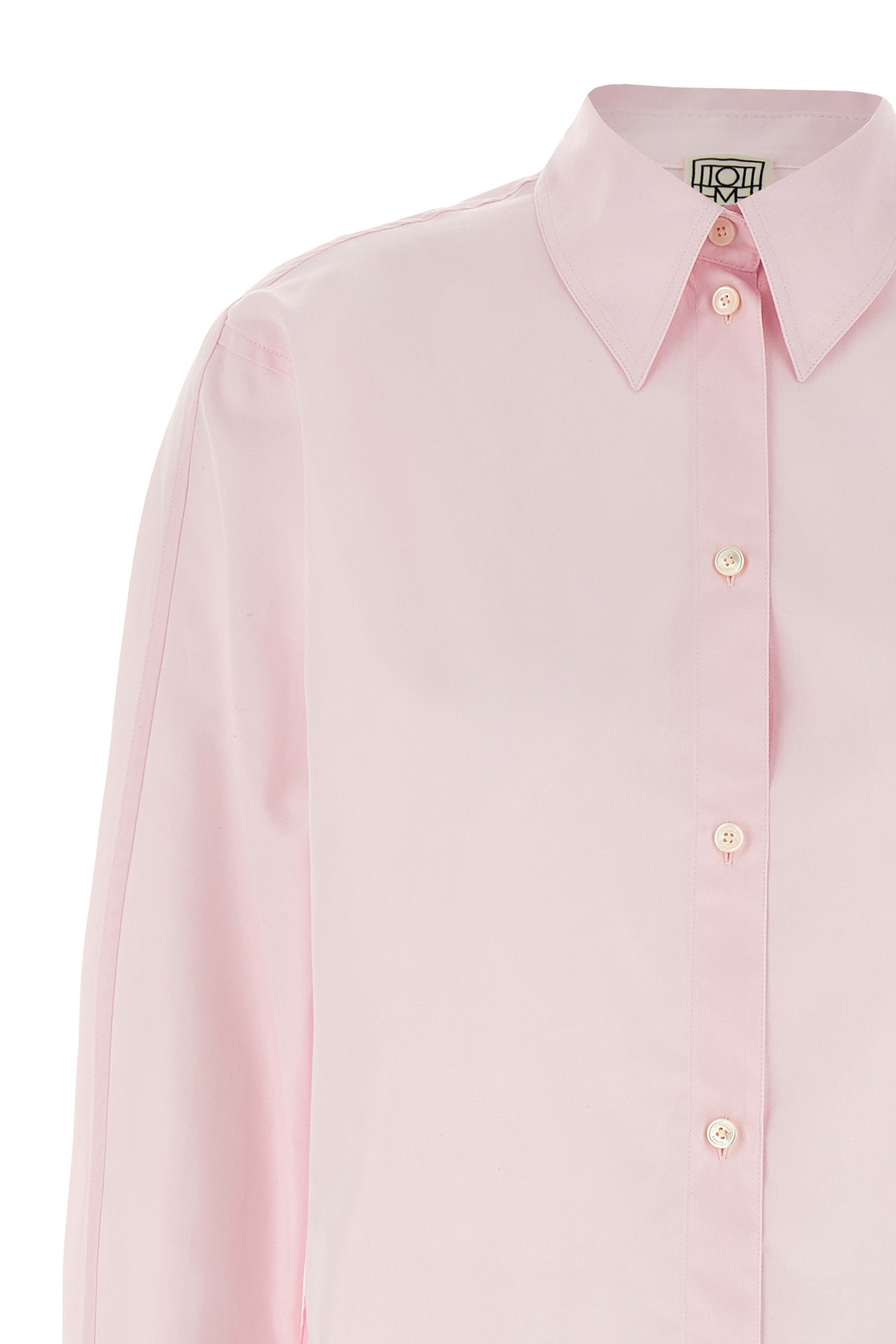 Cotton poplin shirt with button closure, long cuffed sleeves.