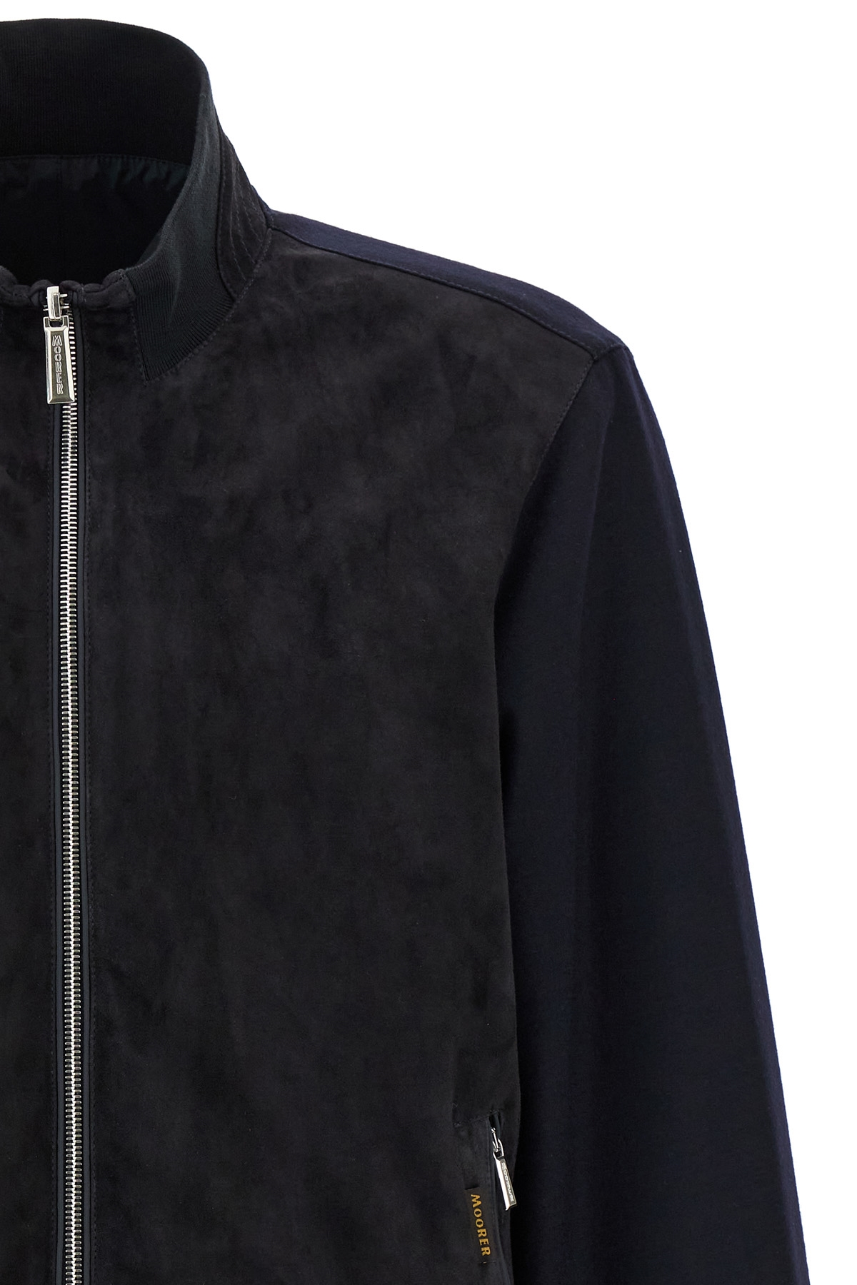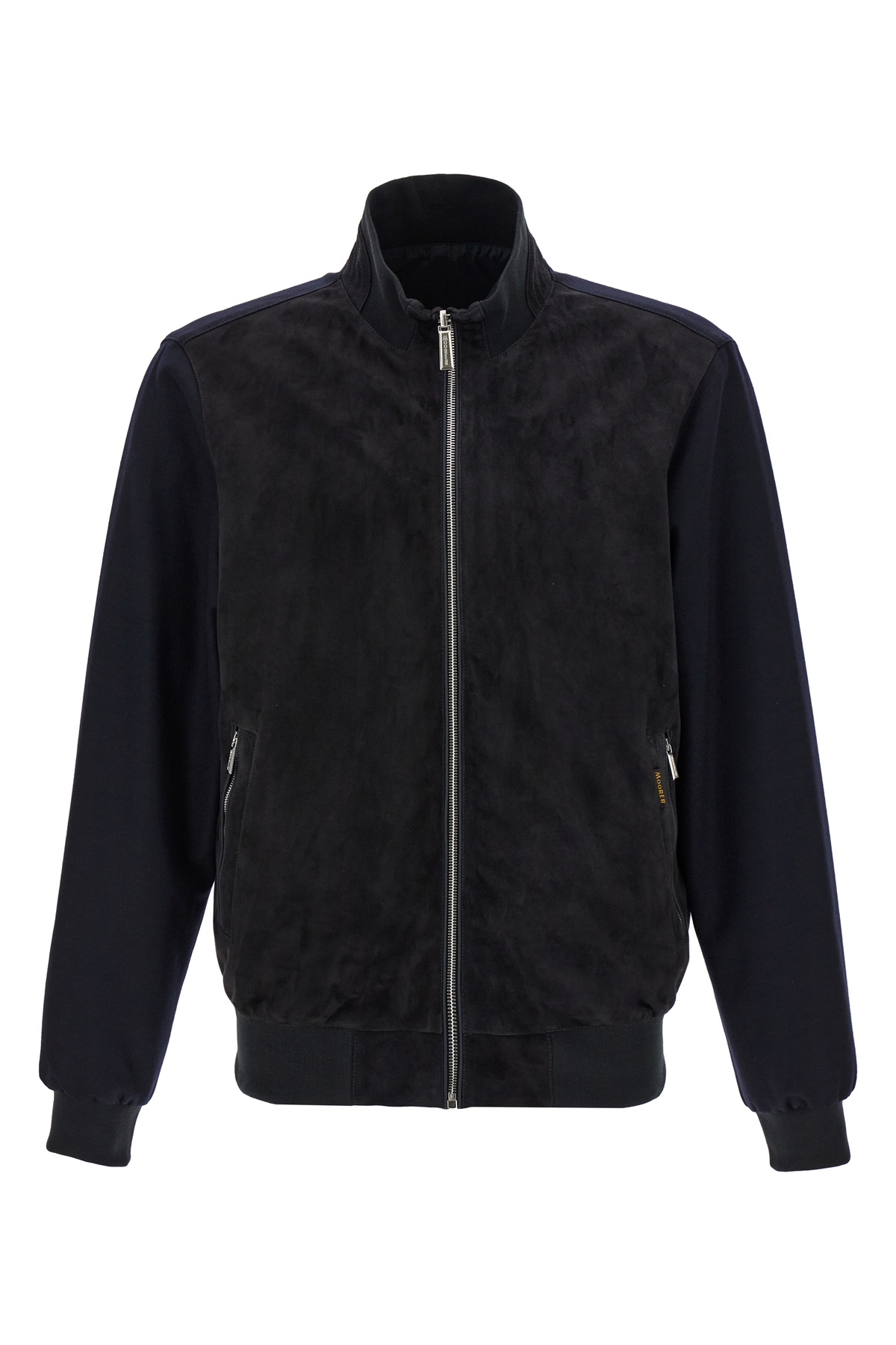 'Axten' reversible bomber jacket in virgin wool mixed virgin wool and suede knit, zip closure, long cuffed sleeves, high neck, pockets.