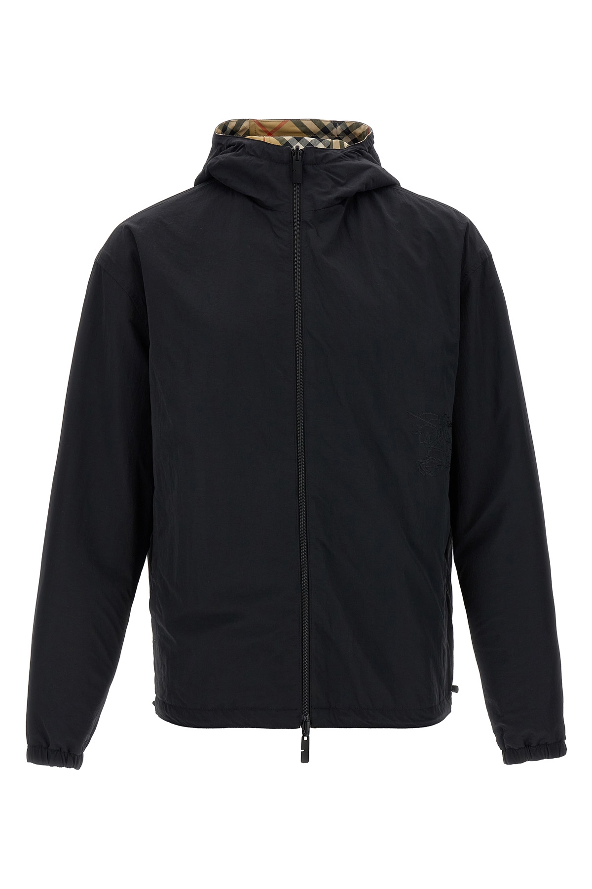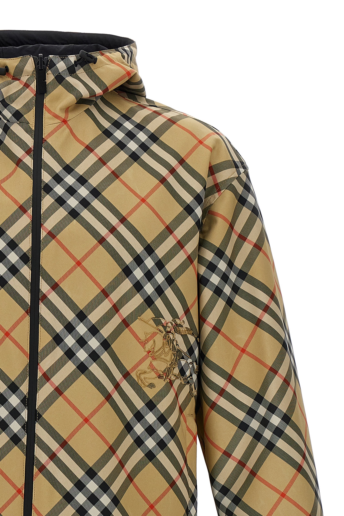 Burberry Check water-repellent tech fabric jacket, hood, front 'Equestrian Knight Design' patch, hood with adjustable drawstring, zip closure, pockets, long sleeves with elastic cuffs, drawstring on the hem.