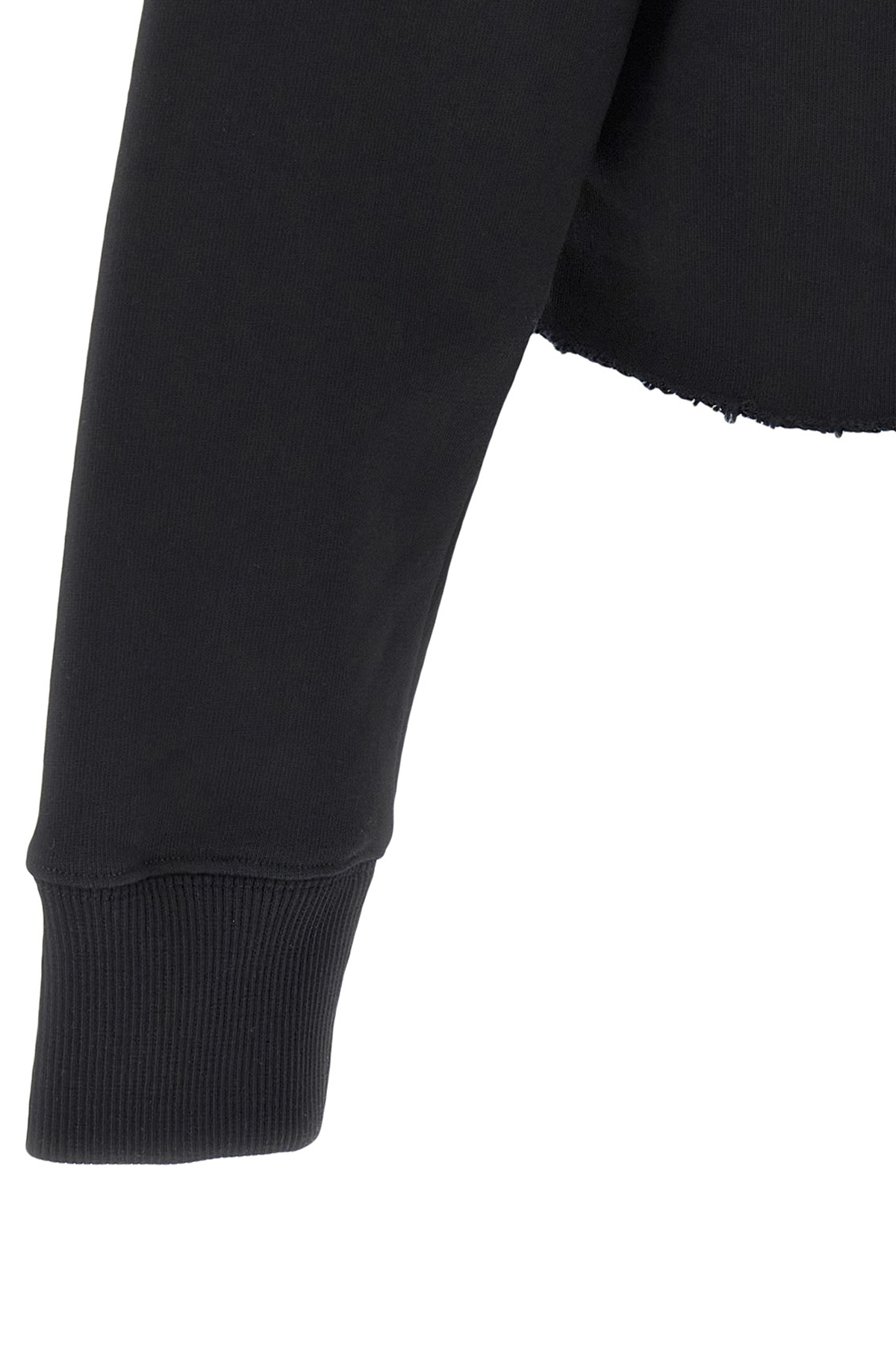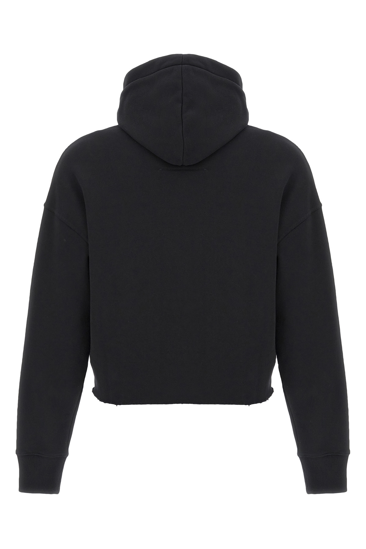 Brushed cotton hoodie, crop style with logo print and raw cut hem.