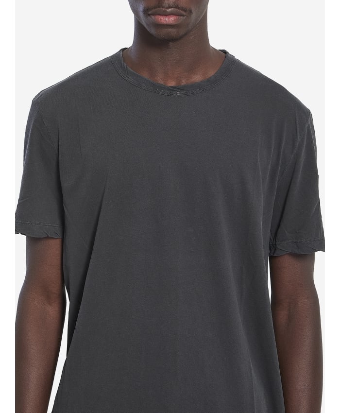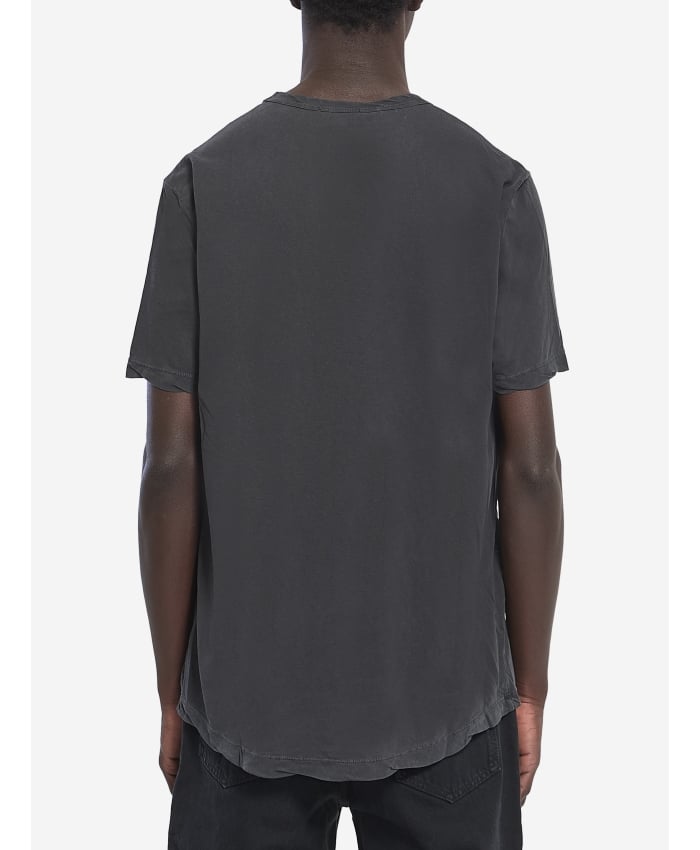 Short-sleeved crewneck t-shirt in coal grey cotton. Ribbed collar. Regular fit. The model is 186cm tall and wears size US 03.