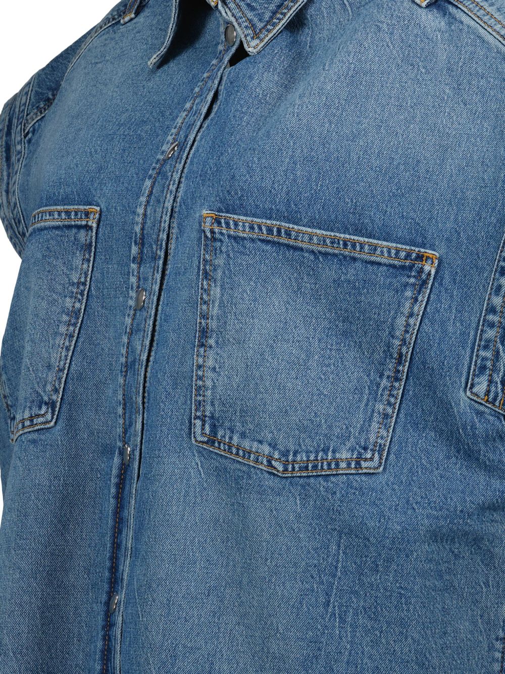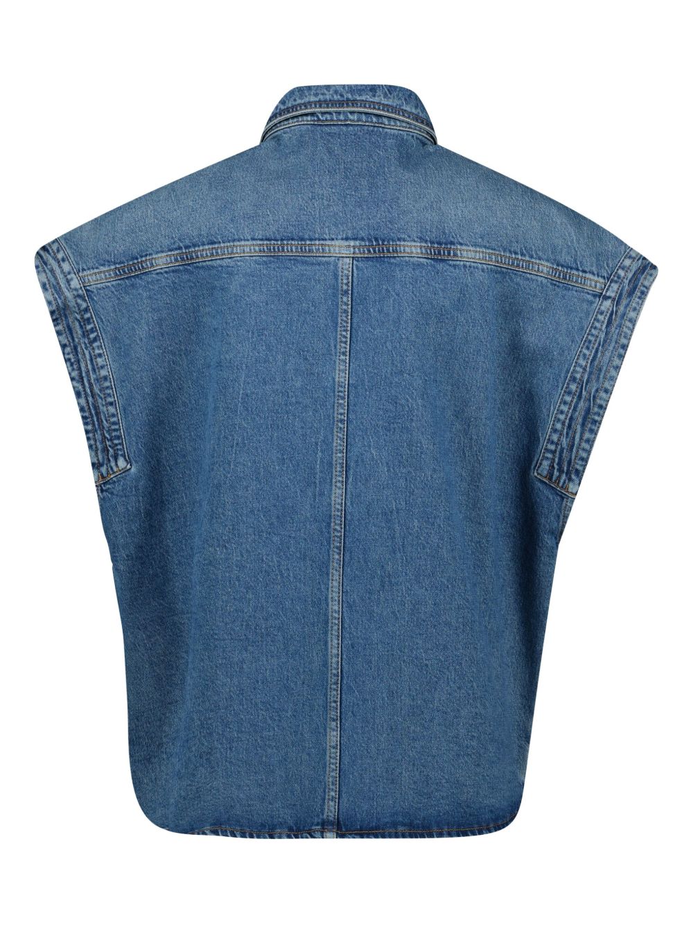 blue front press-stud fastening two chest patch pockets cap sleeves