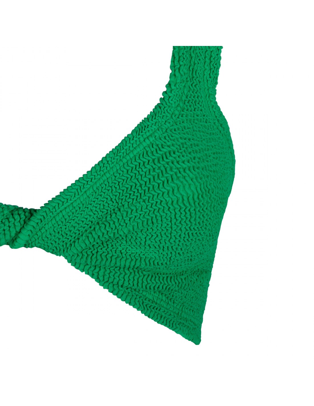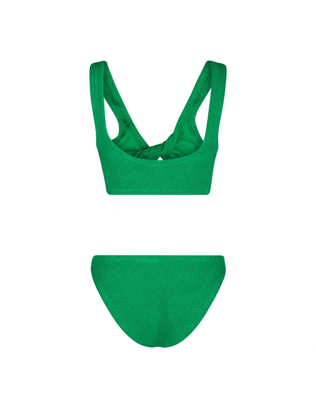 Emerald green Original Crinkle™ fabric Juno bikini set from Hunza G featuring bra with twist detailing, briefs that you can high or low on the hip.
