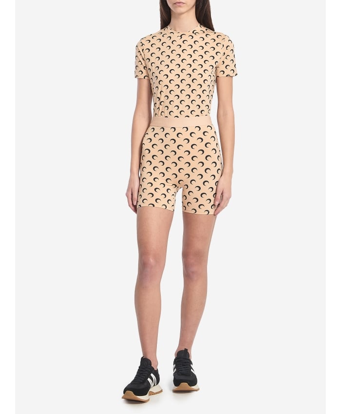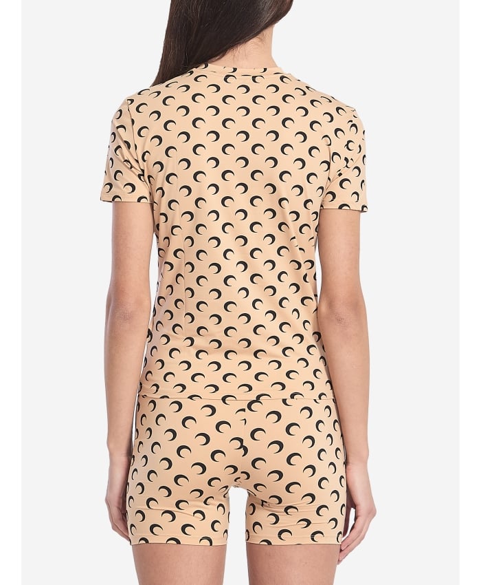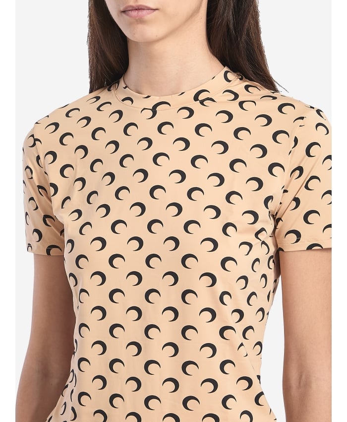 Short-sleeve crewneck top in nude and black jersey with an all-over Moon print and a second-skin effect. Fitted silhouette. Protective pouch