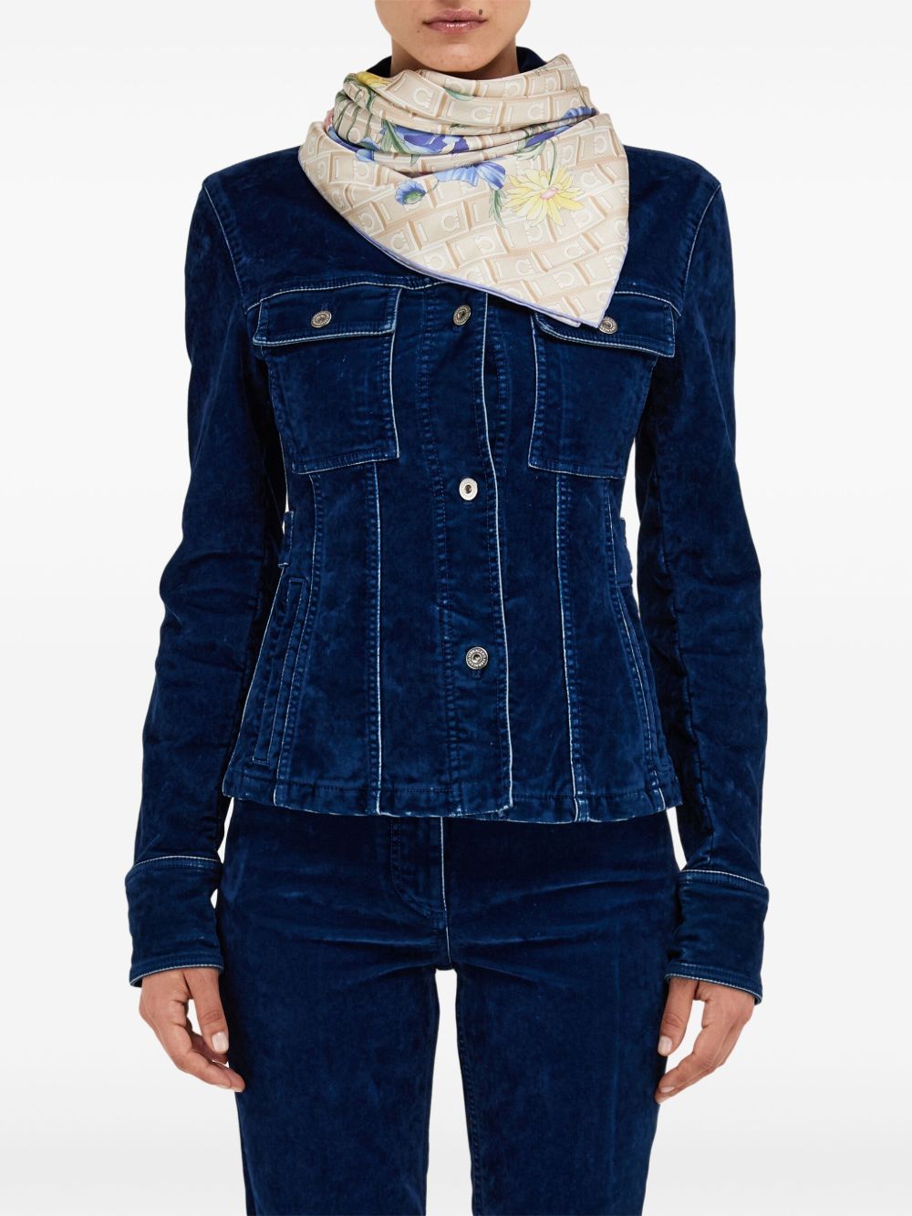 oxford blue silk Bouquet print finished edge printed logo square shape