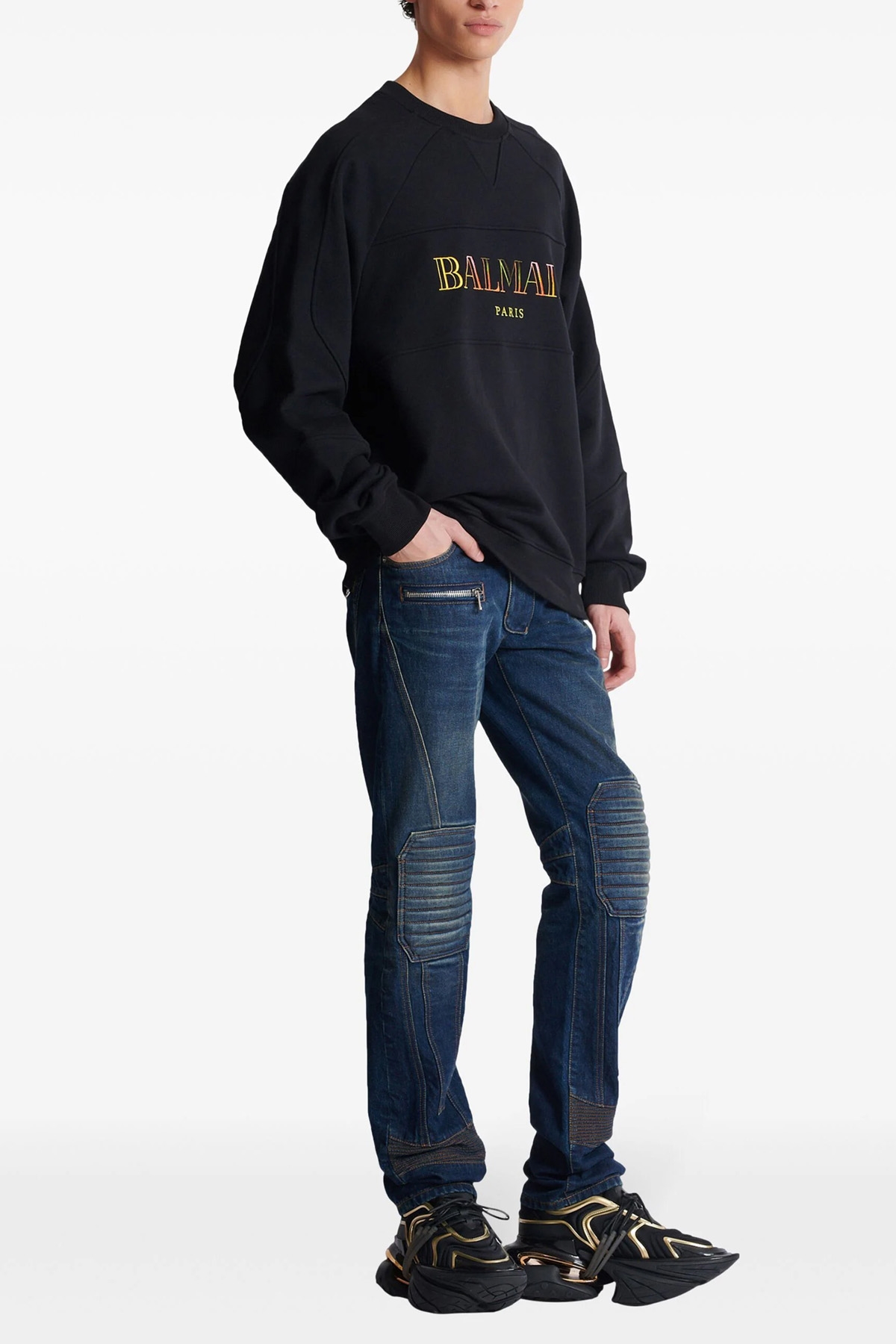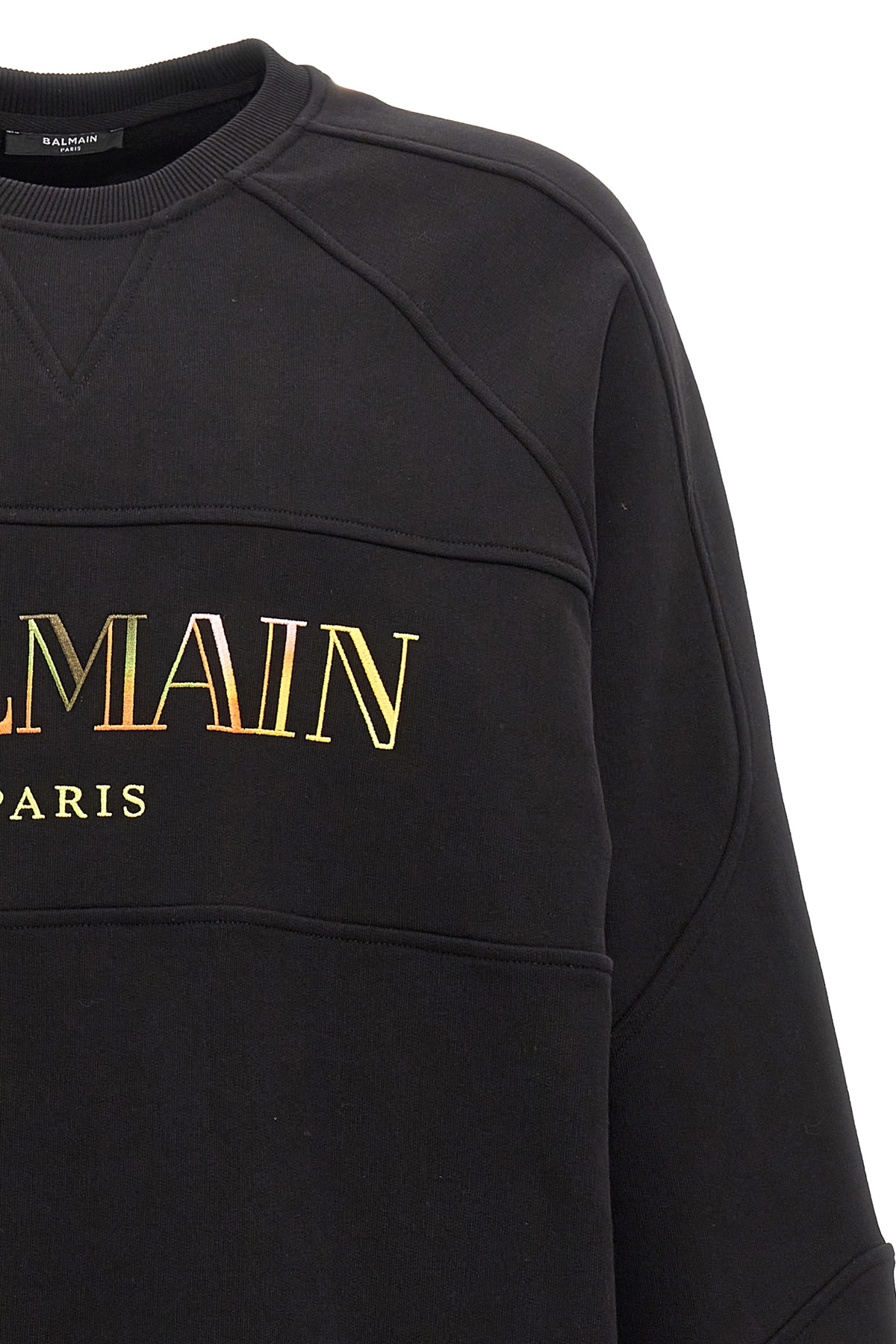 'Balmain Vintage' cotton sweatshirt with front logo embroidery, crew neck, long cuffed sleeves.
