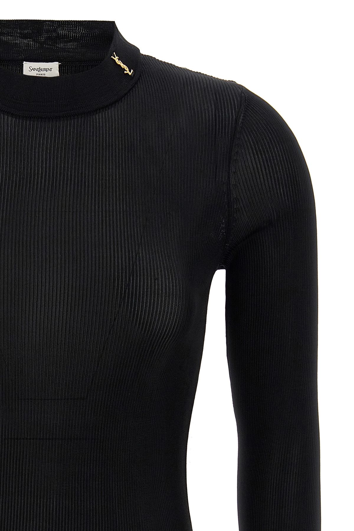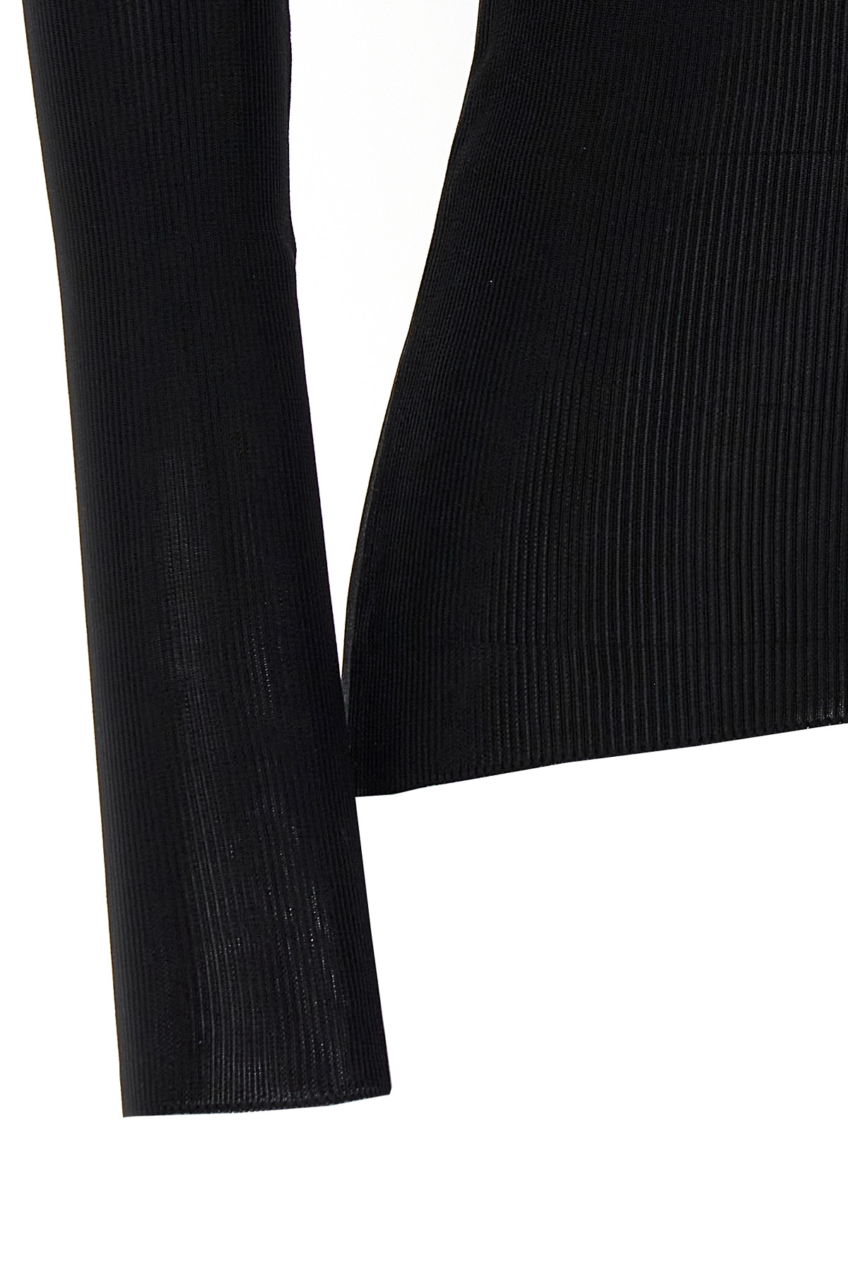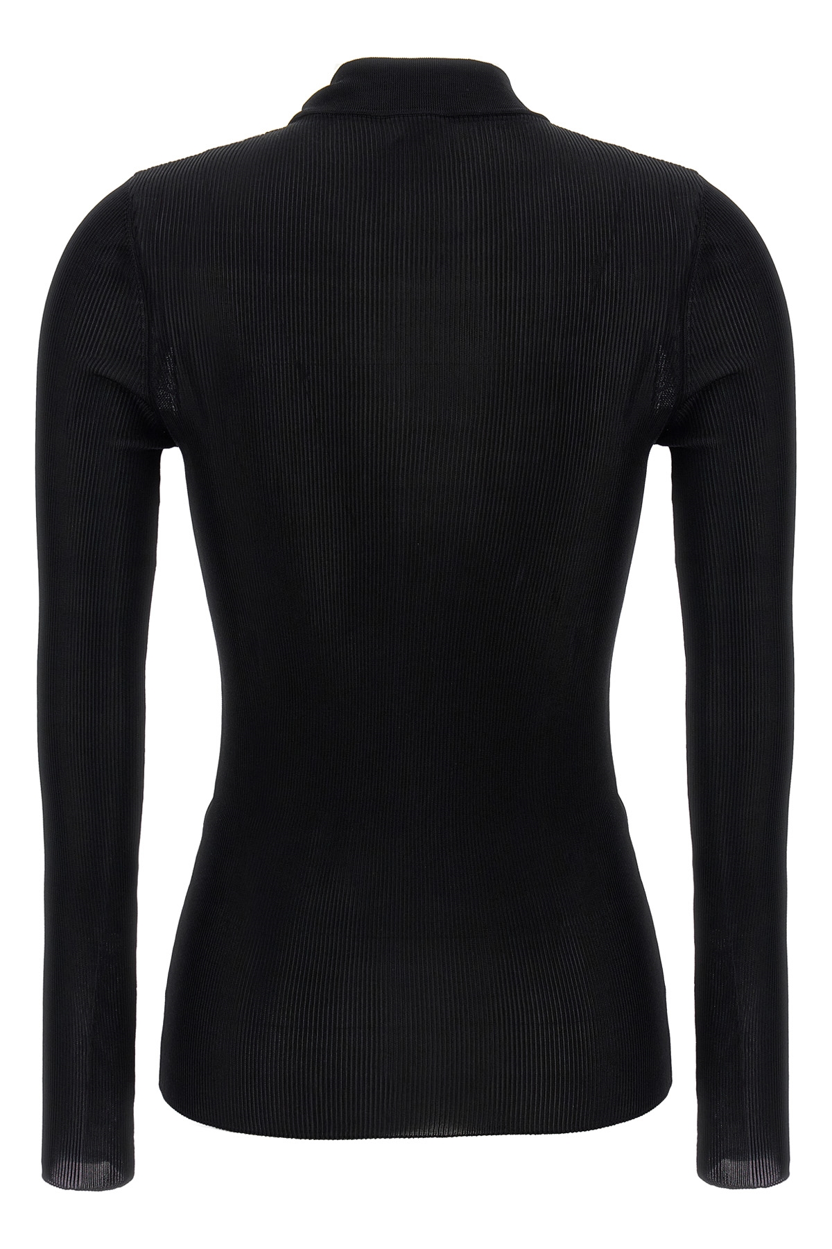Ribbed stretch silk top, with a high collar and front 'Cassandre' metal logo, long sleeves.me logo.