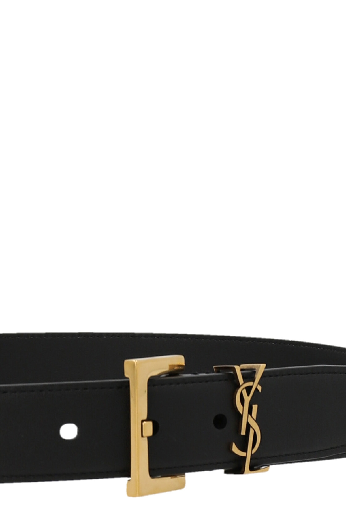 'Cassandre' leather belt with metal buckle and logo charm.